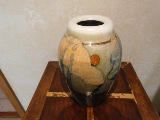 Artist Signed Handcrafted  Drip Glaze Pottery Vase 9"