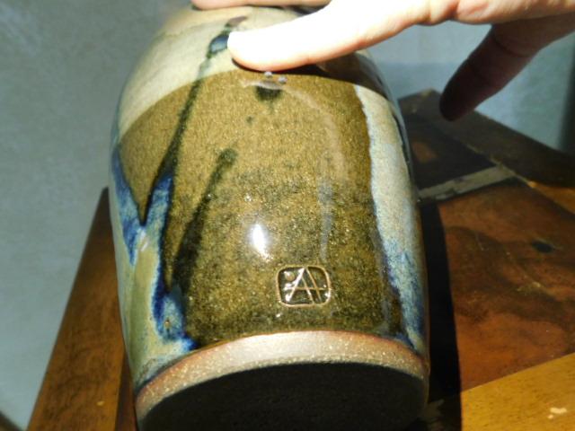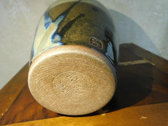 Artist Signed Handcrafted Drip Glaze Pottery Vase 9"