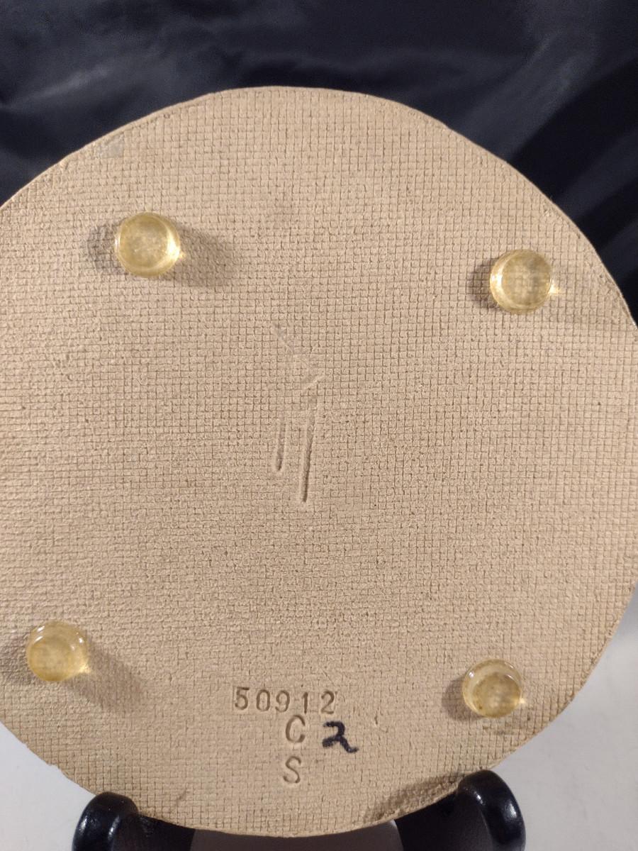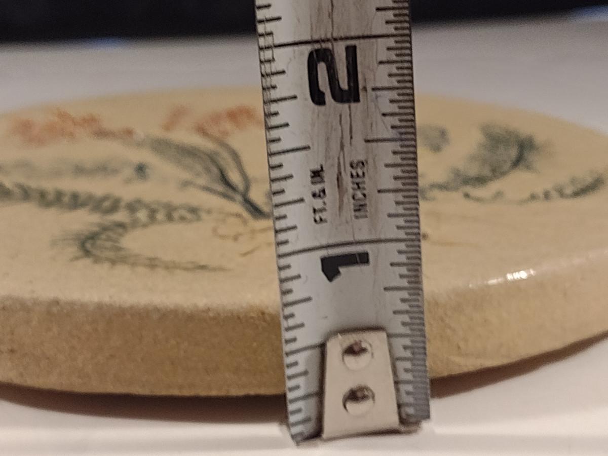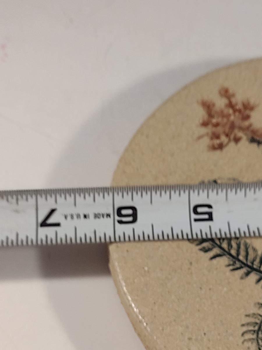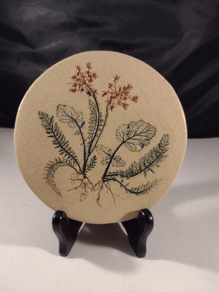 Artist Signed Handmade Pottery Trivet with Botanical Design- Approx 6" in Diameter