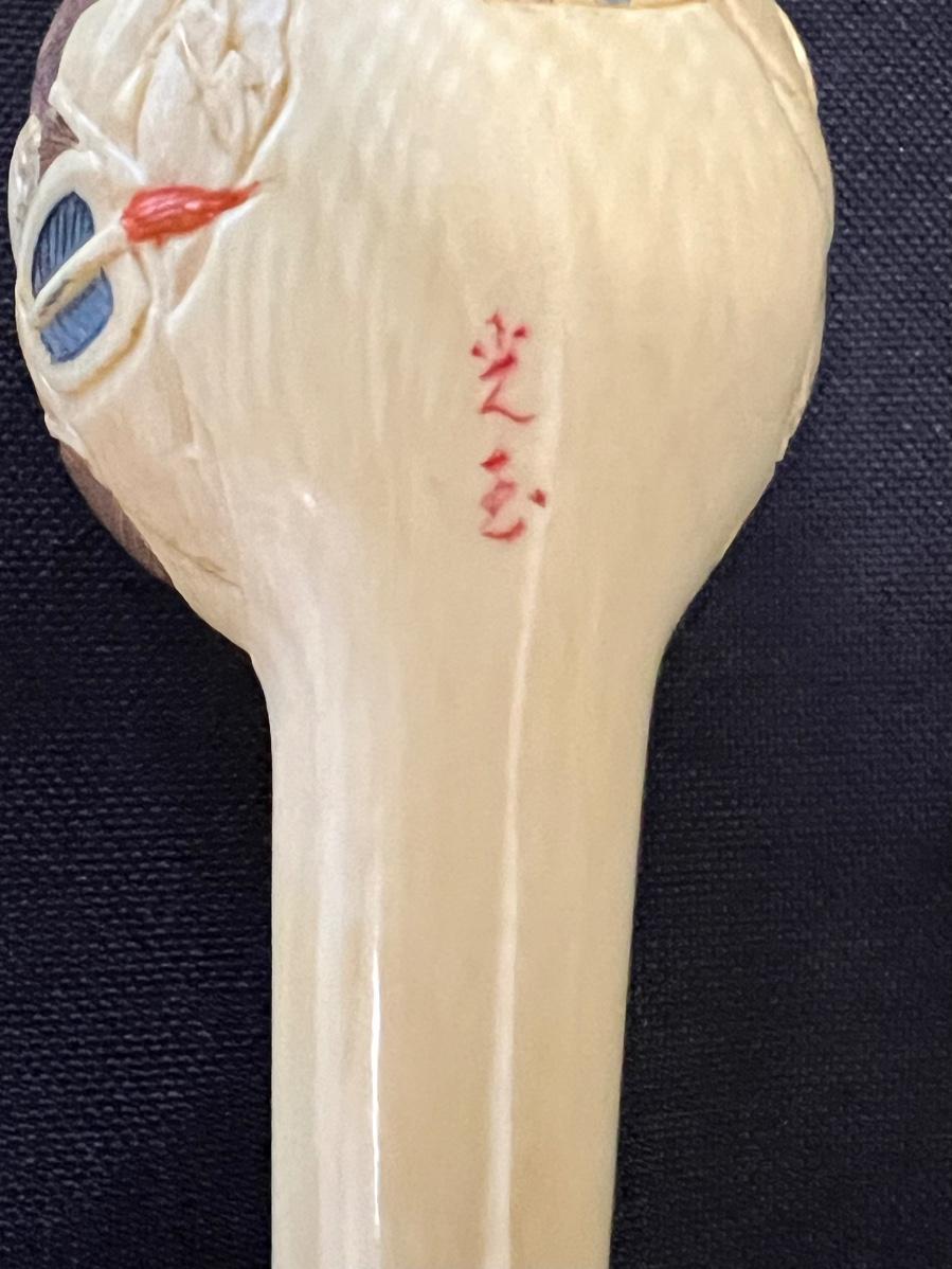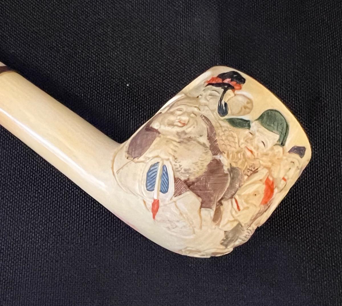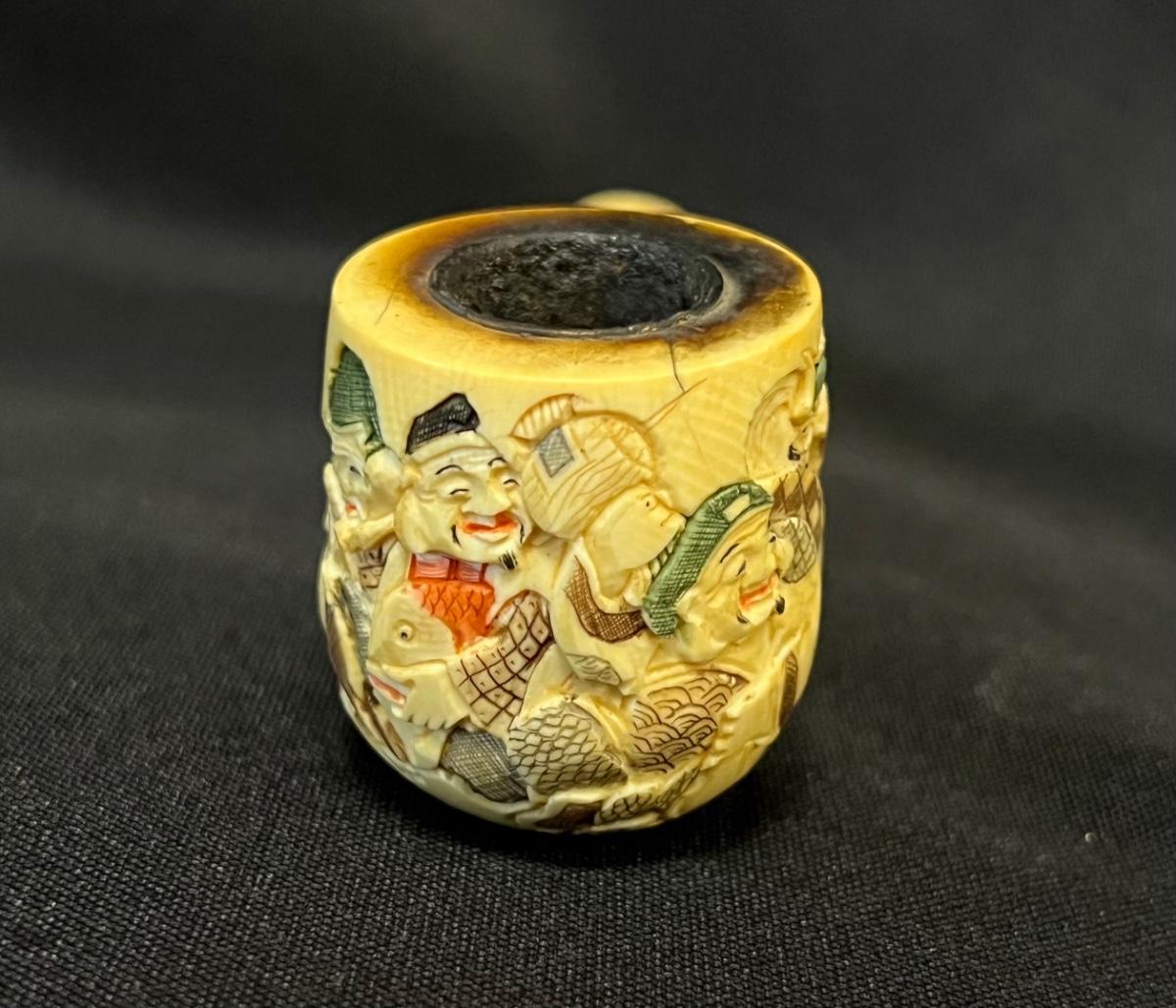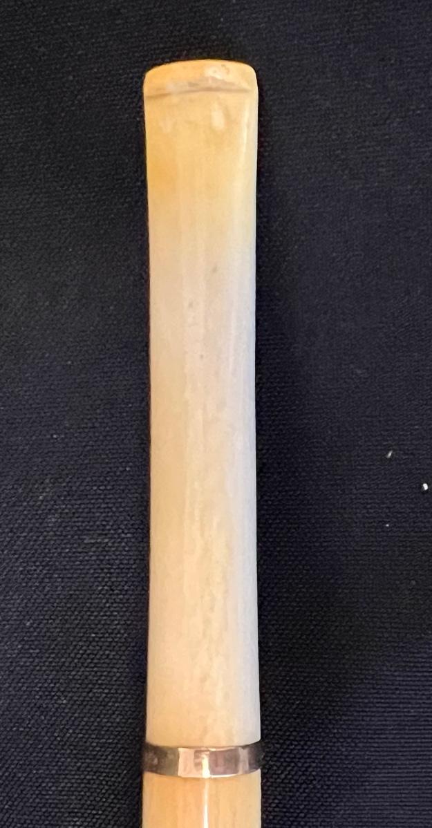 Artist Signed Painted Ivory Pipe with 14K Gold Band
