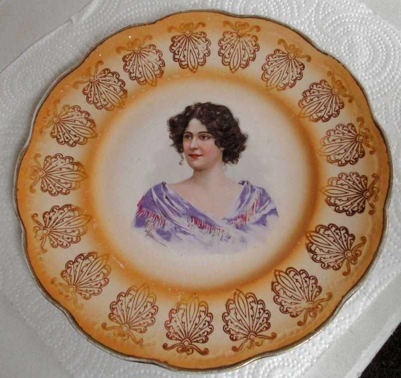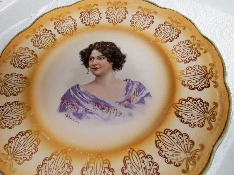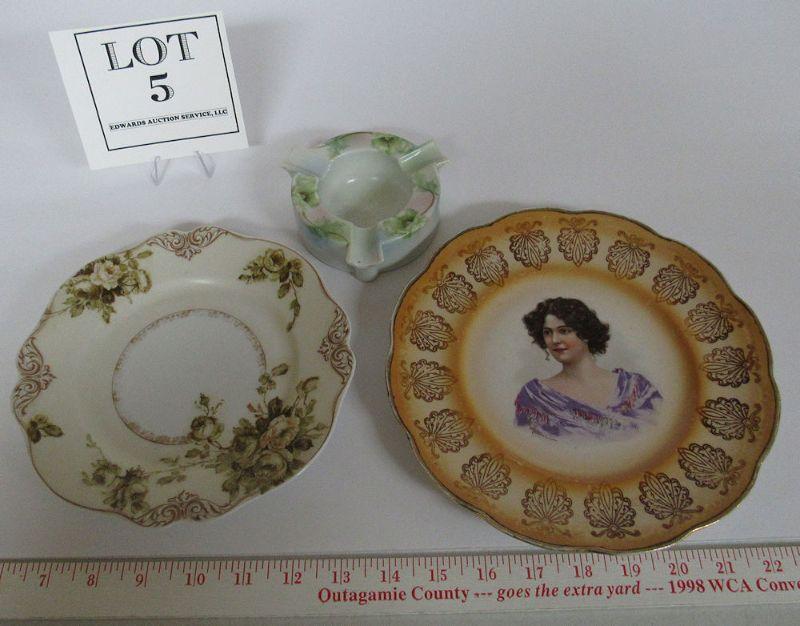 Artist Signed Portrait Plate, SIlesia Old Ivory Plate, RS Germany Ashtray