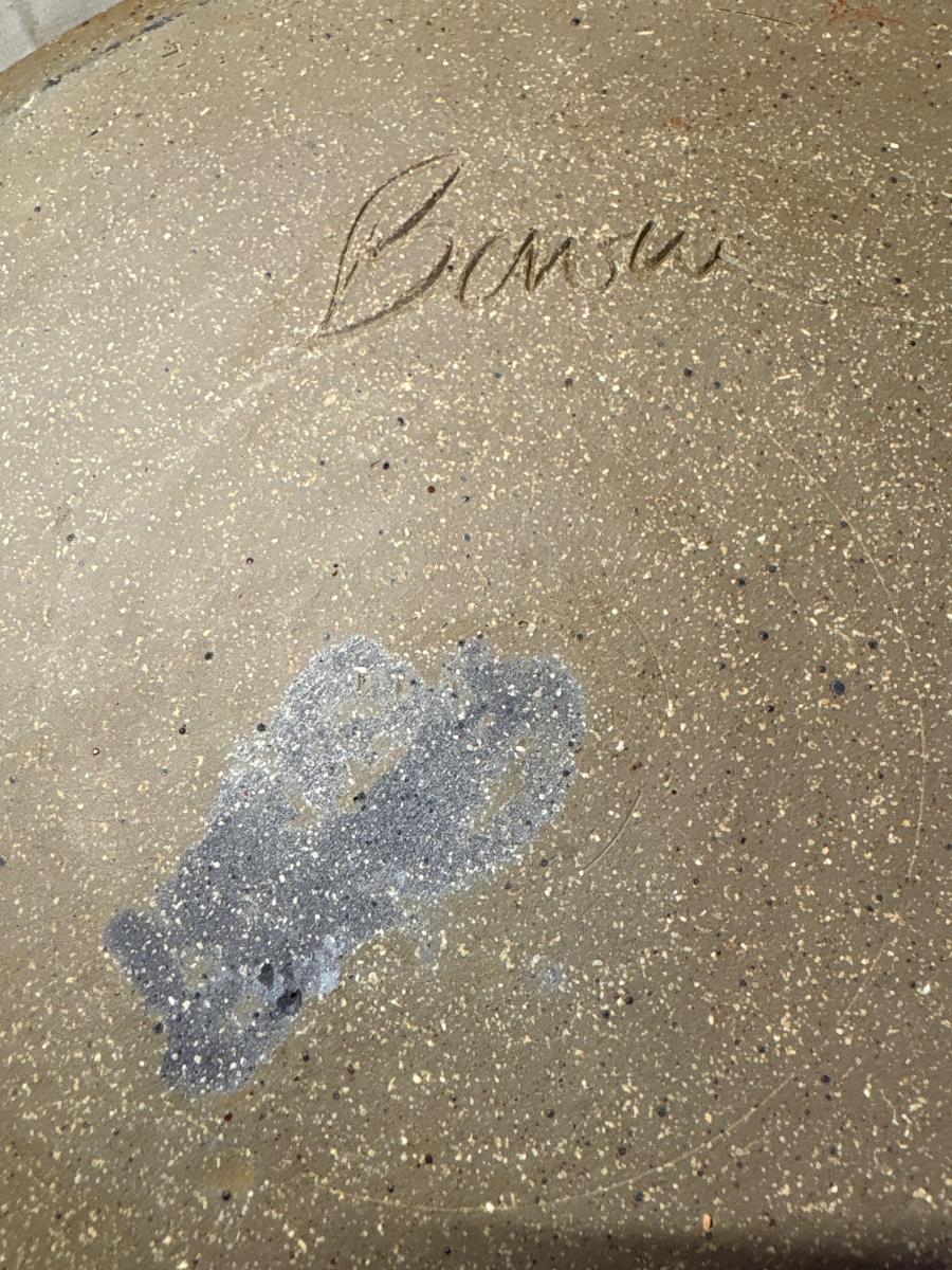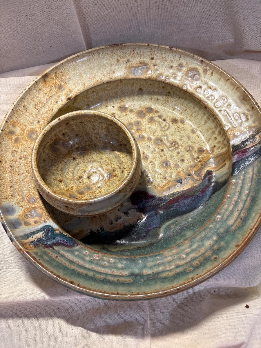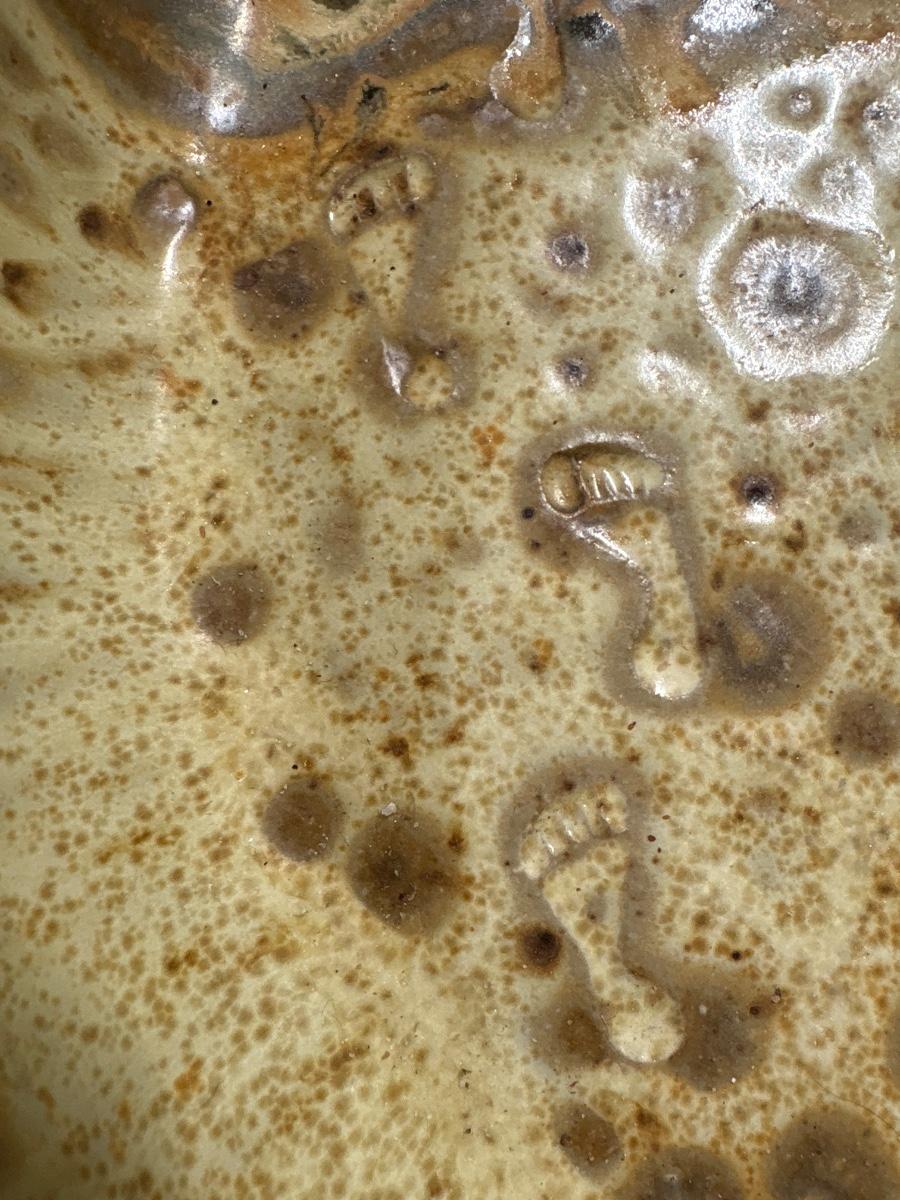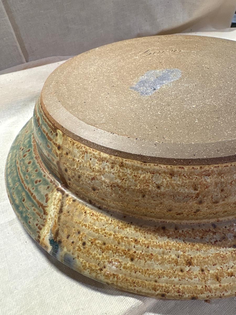 Great glaze and texture on this artis signed pottery. Measures 11.5 across rim. Notice the little footprints in the “sand”!