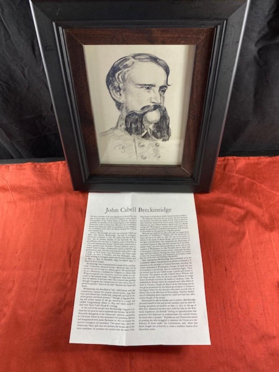 This auction lot is for an Original Sketched Portrait of John Cabell Breckenridge. Breckenridge was a Kentucky Confederate Officer. Nicely framed and authentically signed by the artist, D. Shourds. The overall picture measures about 12-inches by 10-inches.