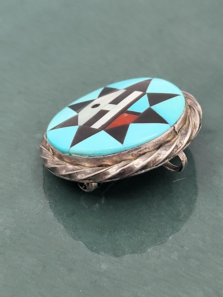 Artist Signed Native American Zuni Stone Inlay Pin or Pendant