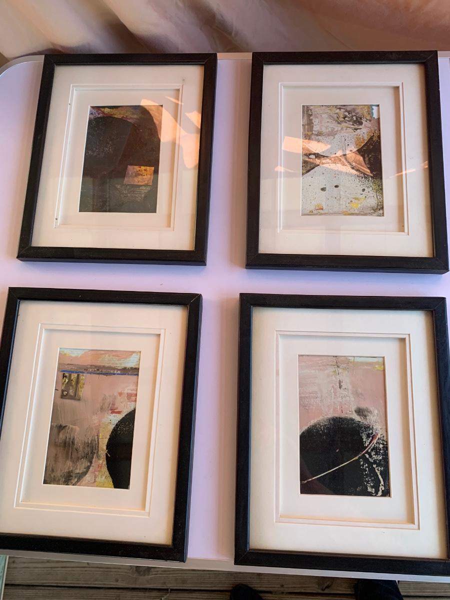 Artist Toby Penney 4 framed & matted surface study mixed media on paper