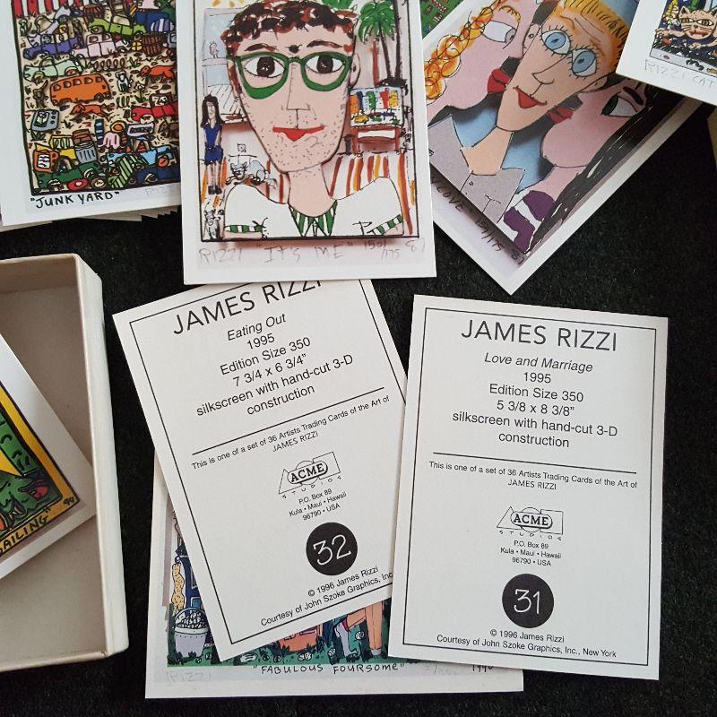 This auction lot is for a boxed set of Artist Trading Cards featuring the Art of James Rizzi. Contains 35 of the original set of 36. Can be used for most an creative endeavor - educational or artistic. In very good condition. Produced by Acme Studios in 1996. James Rizzi (October 5, 1950 ““ December 26, 2011) was an American pop artist who was born and raised in Brooklyn, New York. Known for really fun Pop art.