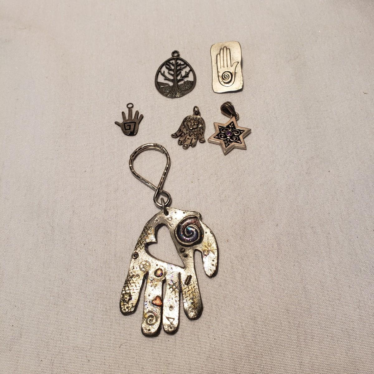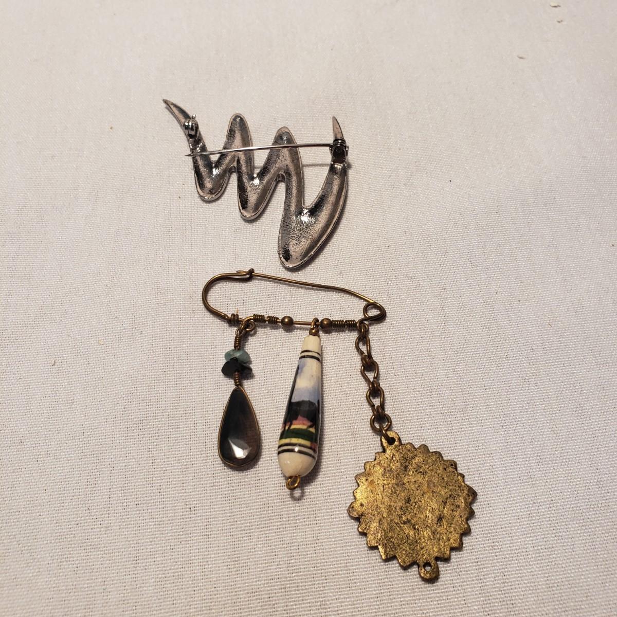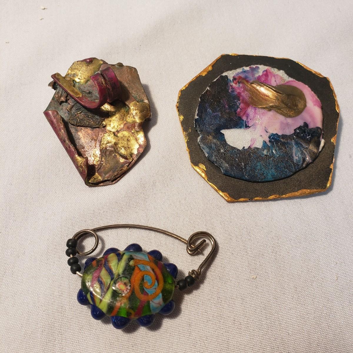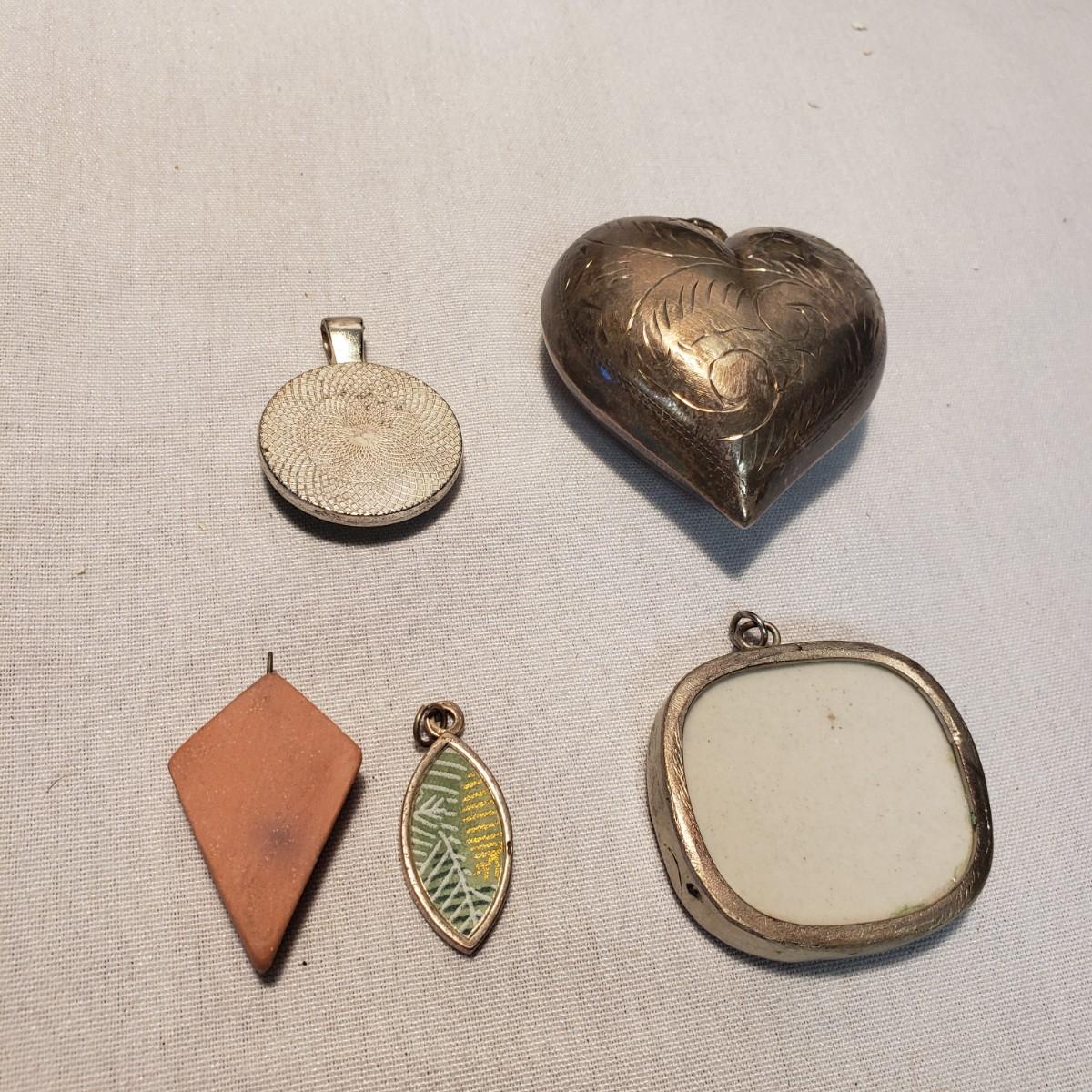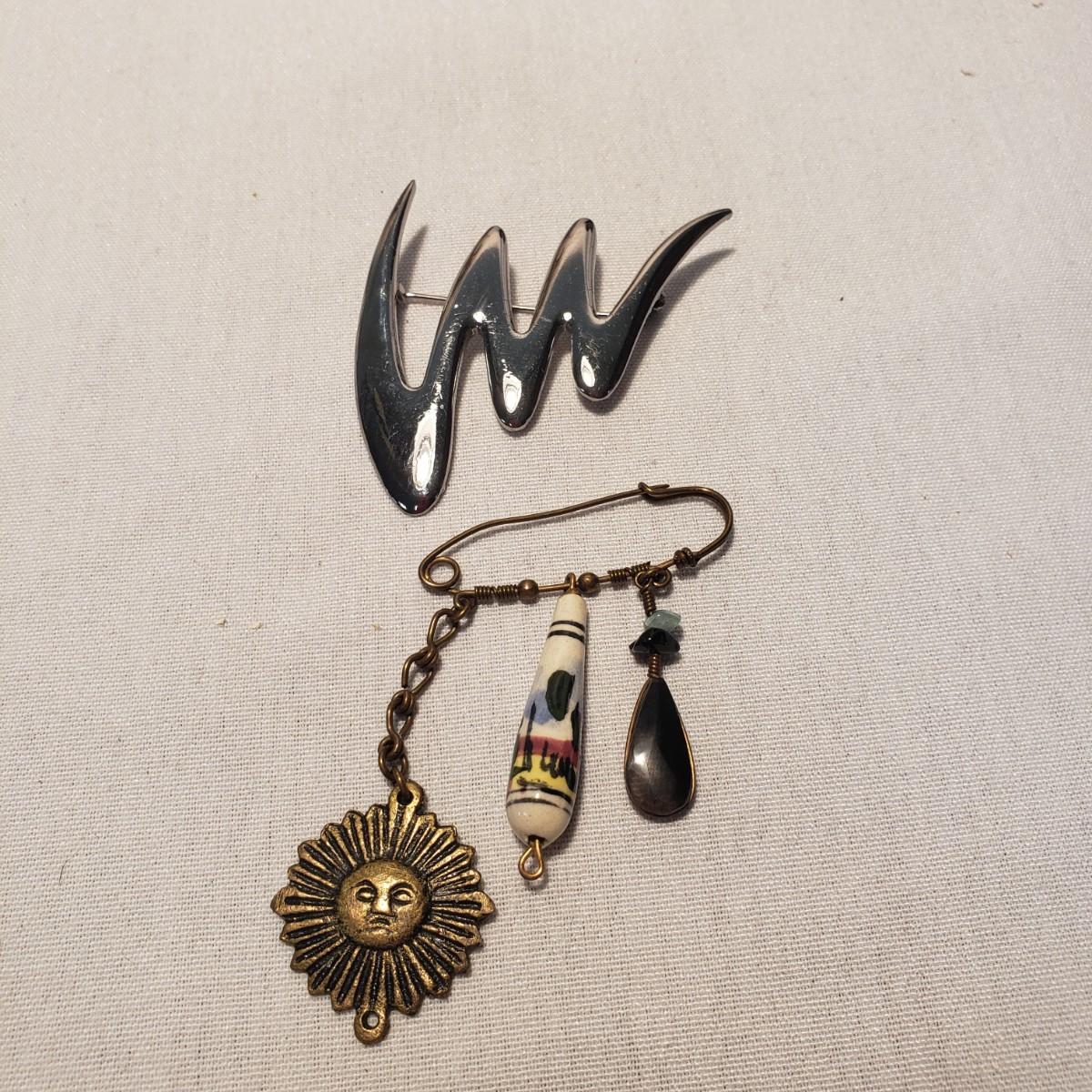 This artisan jewelry lot features pins, pendants and necklaces ready for you to feel fancy! All known markings were photographed. The UU pendant is marked pewter. Some of artists have marked their craftsmanship, see pictures. The necklaces could be used in exchanging out pendants!