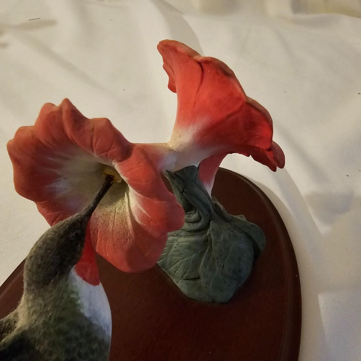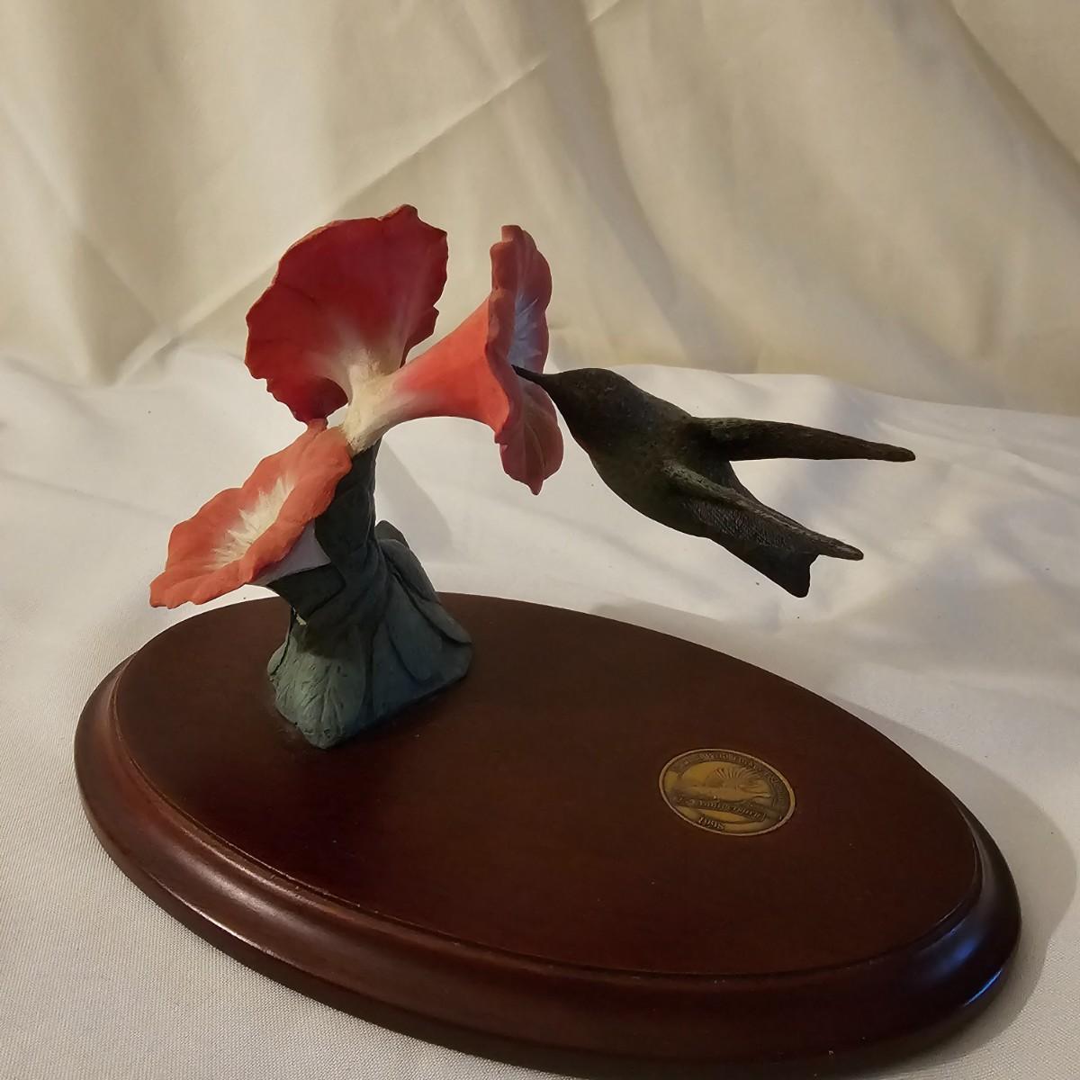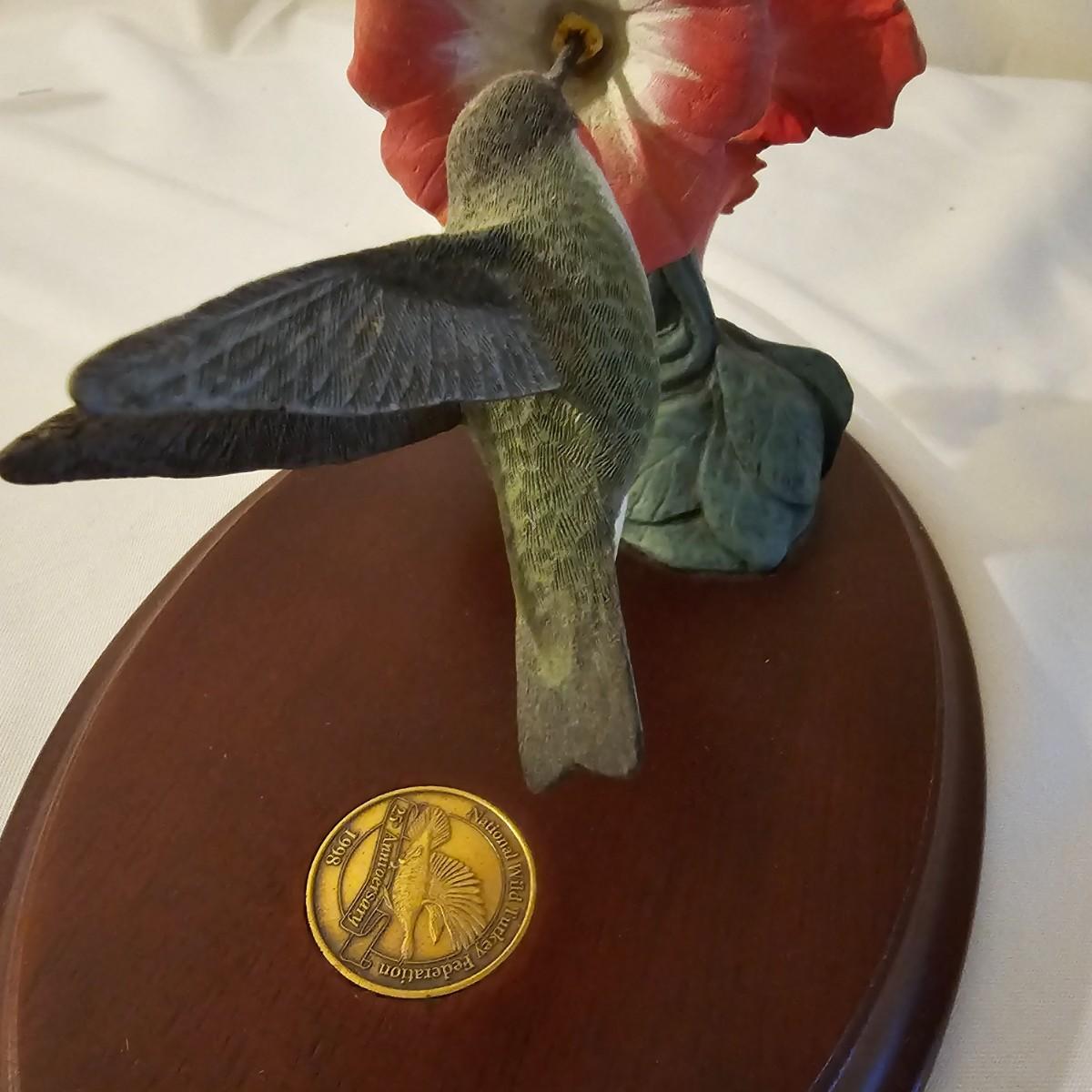 You'll find a lot of three finely detailed figures that include two sets of ballerinas with what appears to be dresden lace and a hummingbird commemorative plaque. The lovely ladies have ruffled skirts and finely painted features. They appear to have Muller Volkstedt marks. The smaller round base piece 5" D x 5"H. The oval item is 7" x 5" x 5"H. The hummingbird is a 25th anniversary National Wild Turkey Foundation issue, measures 9.5" x 6" x 6"H. See photos for details. Shipping available.