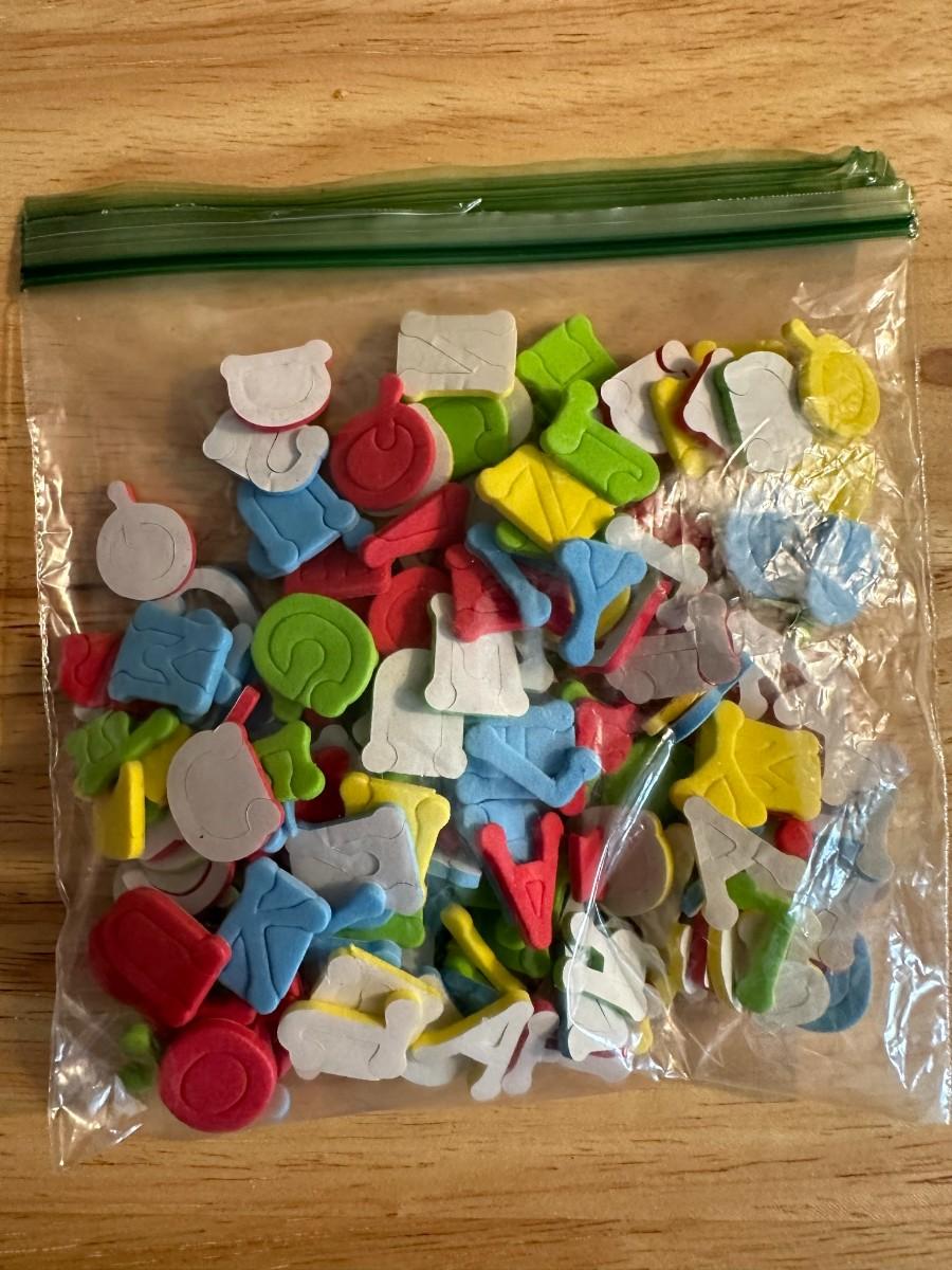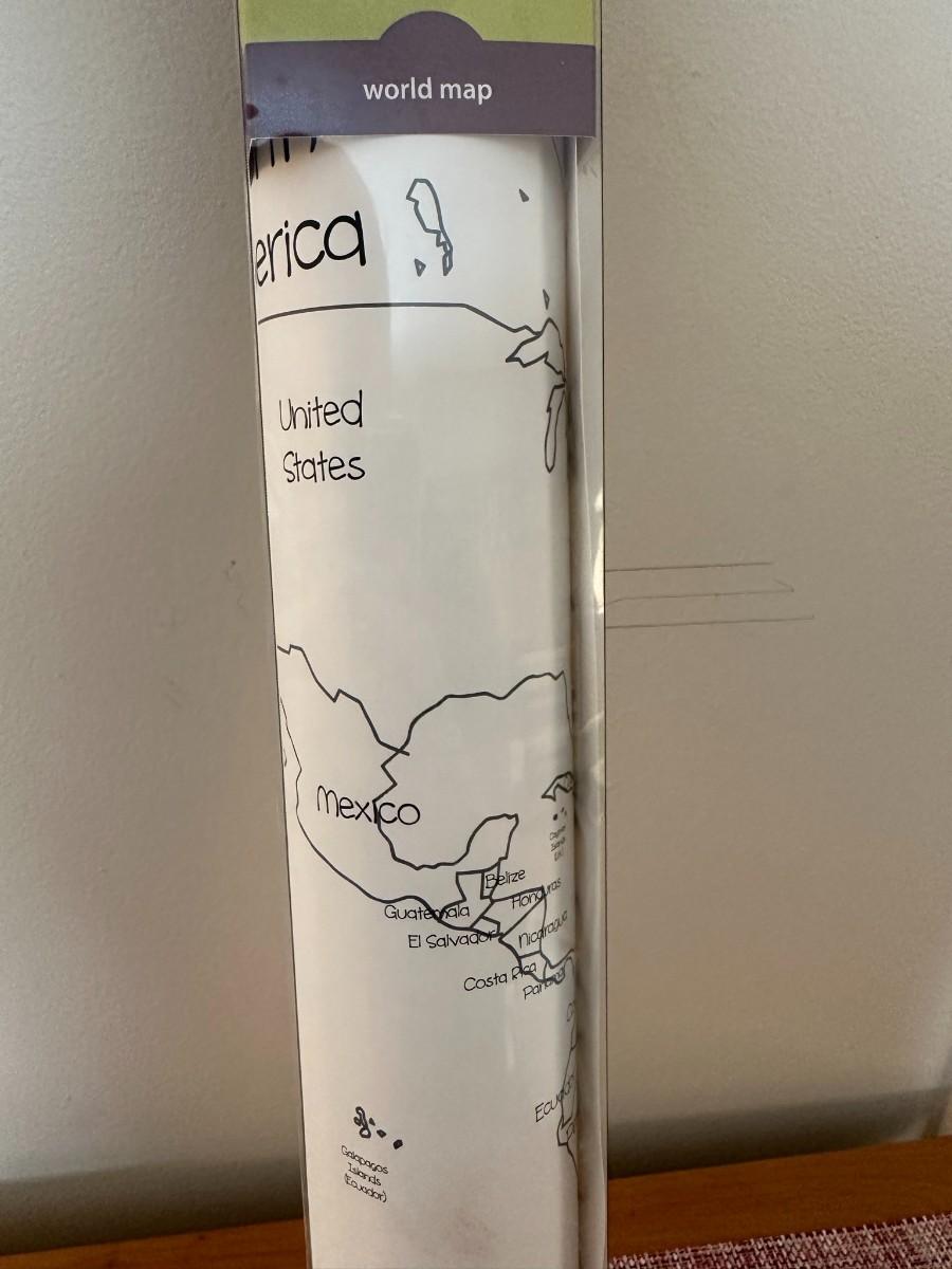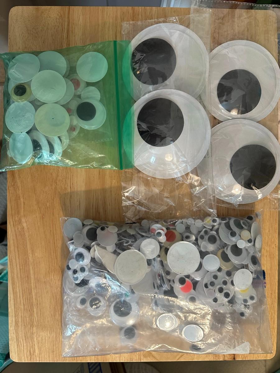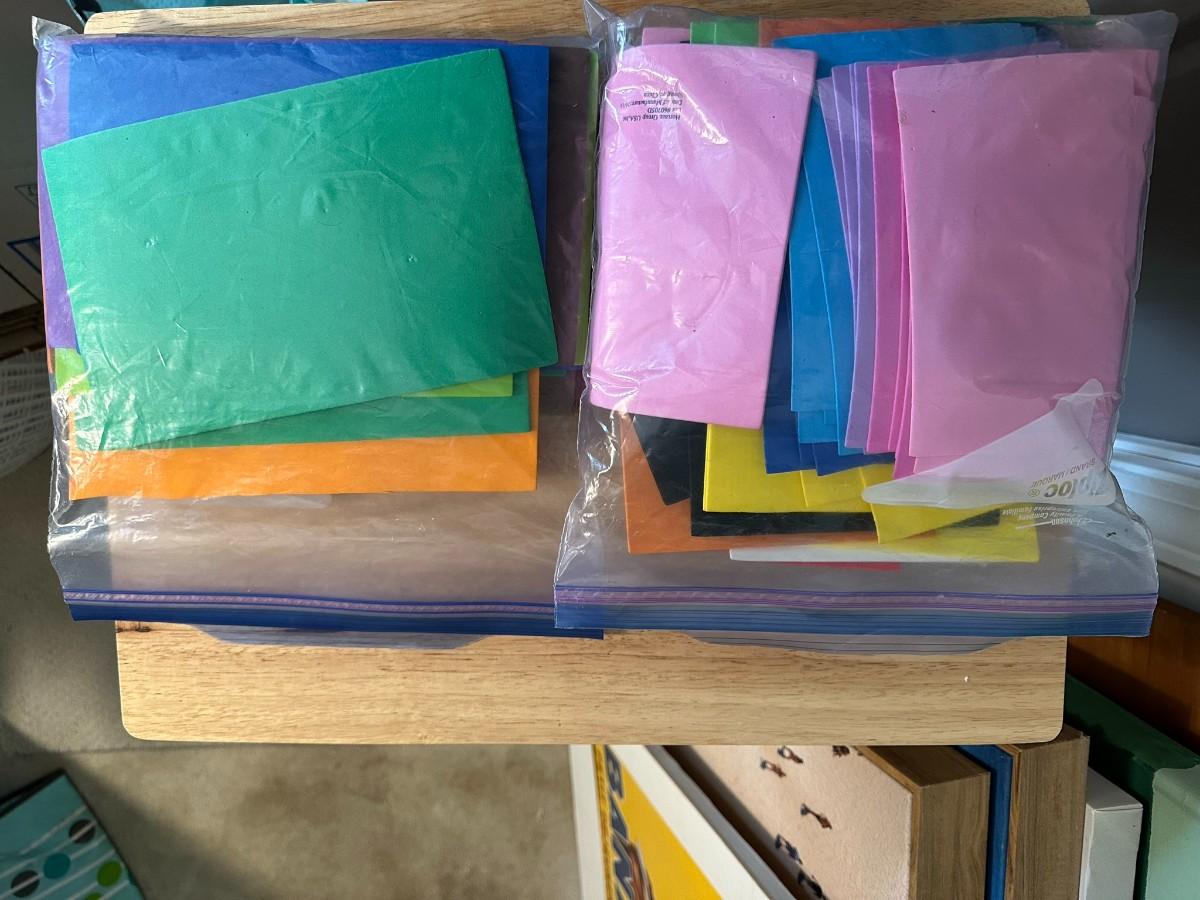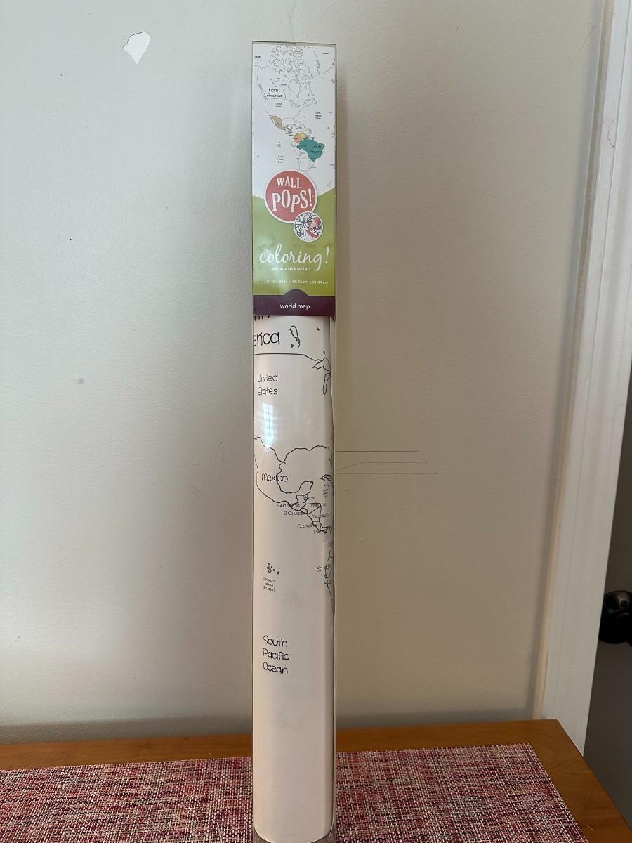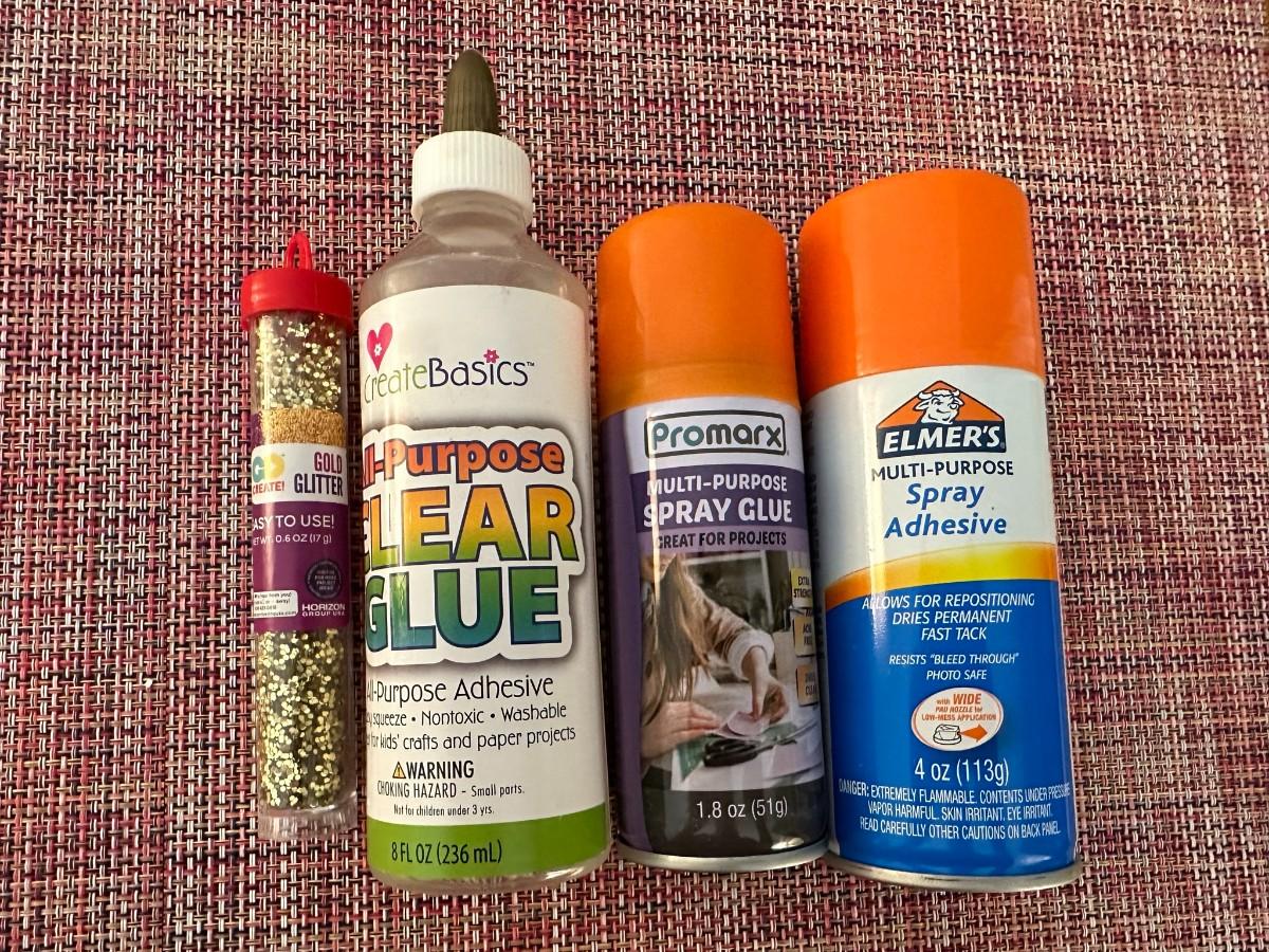 Blue 16x16 tray, Spay adhesive, clear & spray glue, glitter, foam, bag of googly eyes, foam letter, pantone cards, 4"x8" trays, graph paper, wall pops world map coloring peel and stick art
