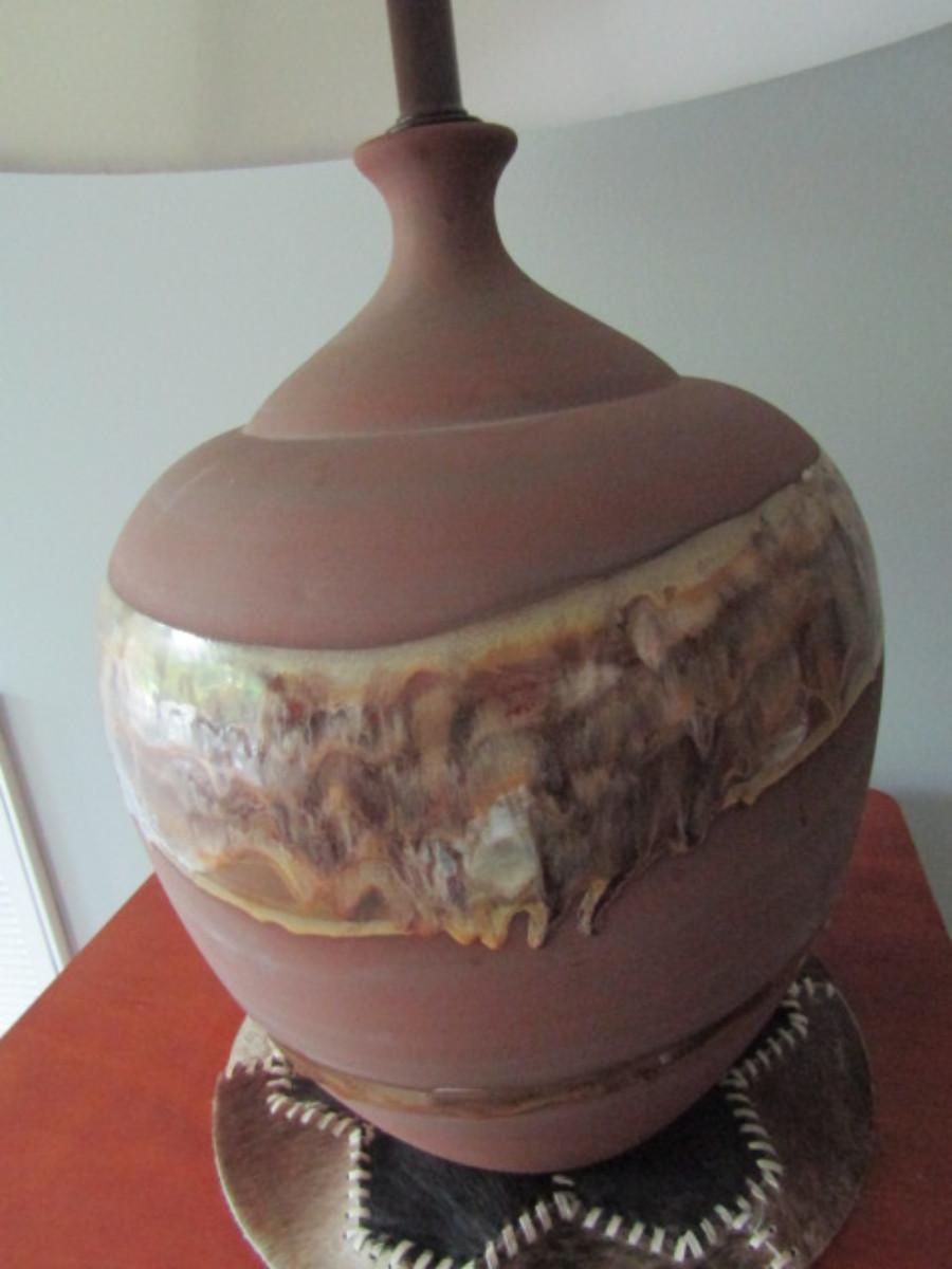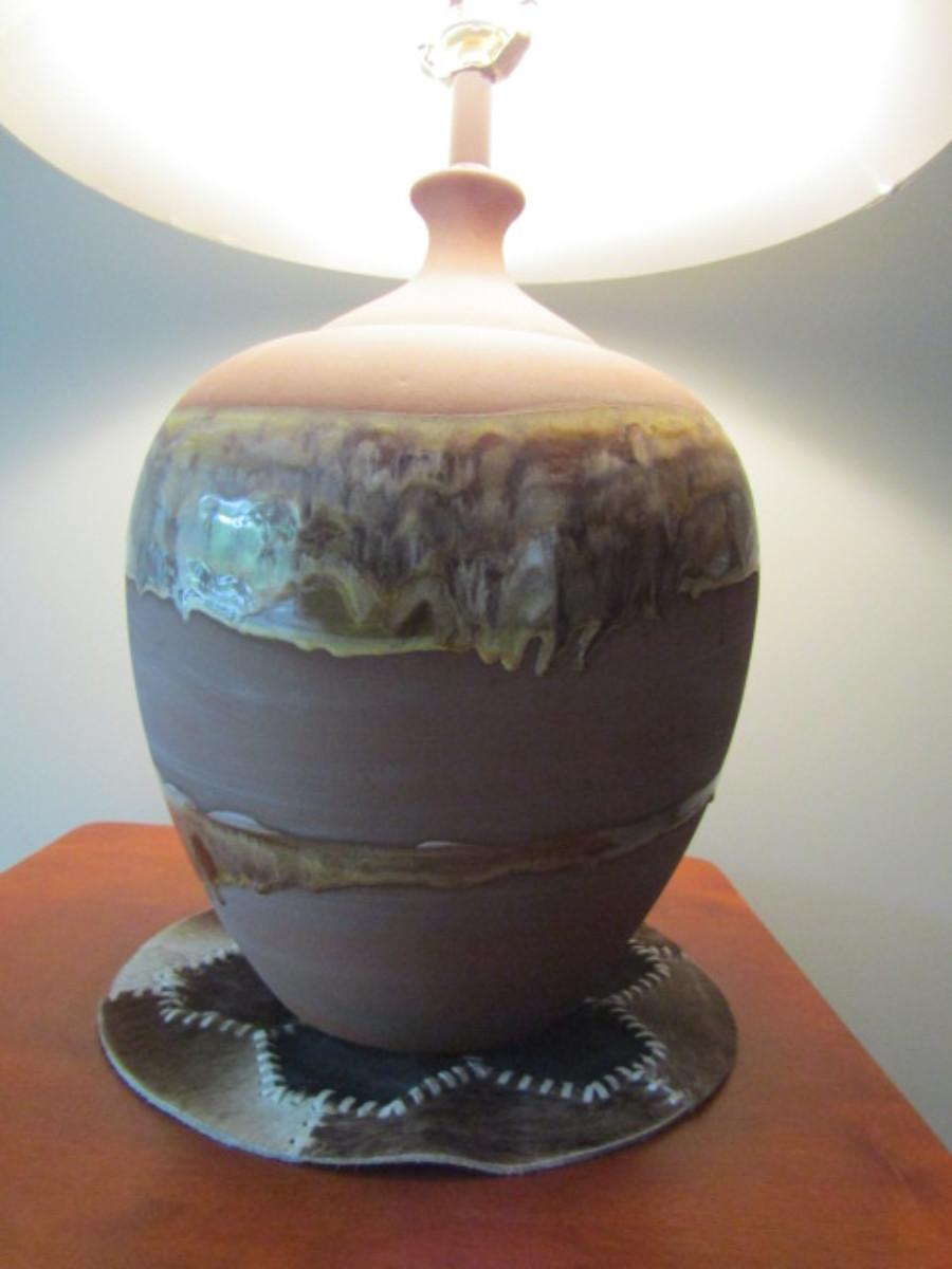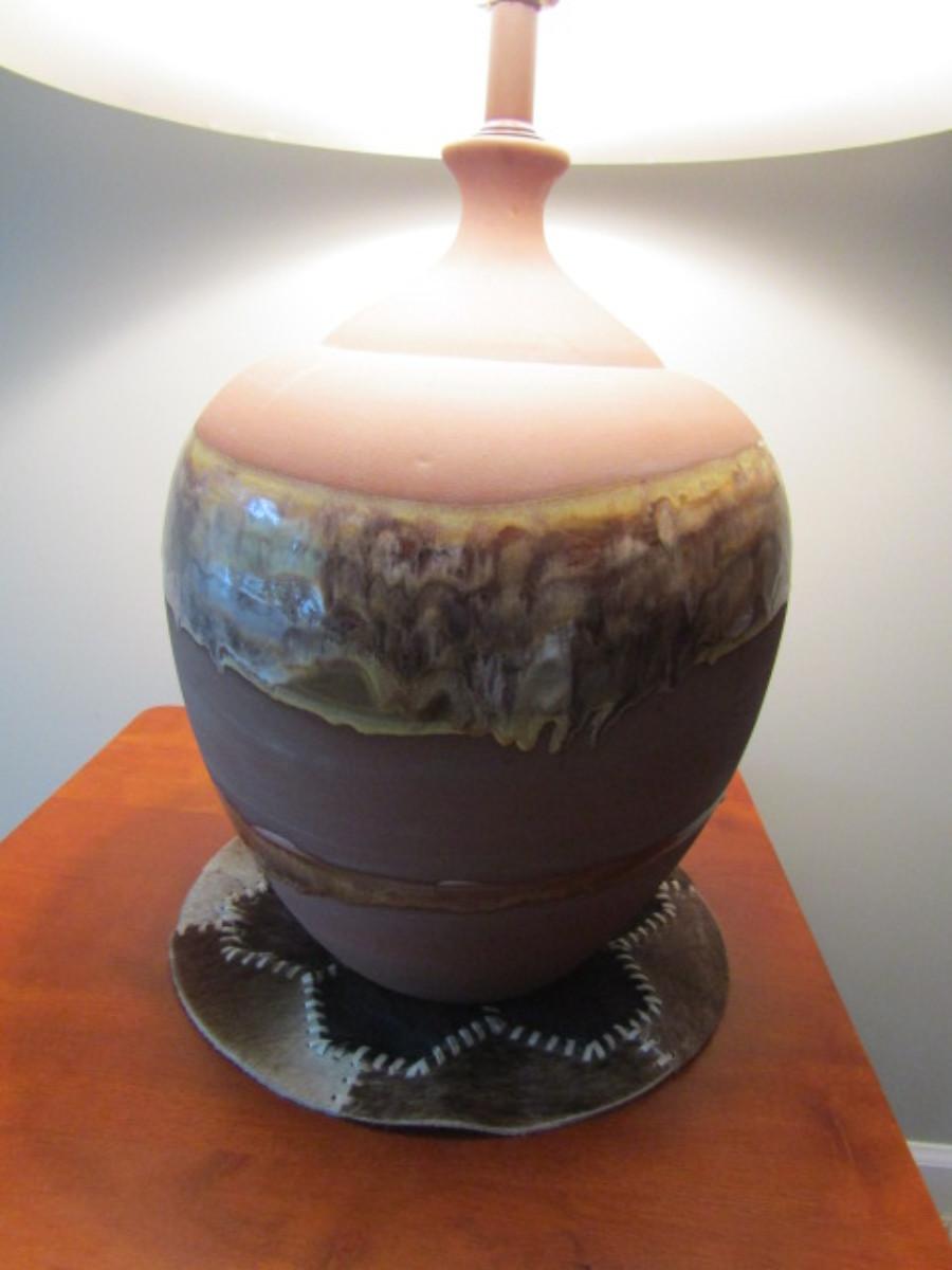 Artistically Glazed Ceramic Table Top/Accent Lamp with Shade. Pictures show lamp sitting on stitched fur doilie- this is not part of the lamp.