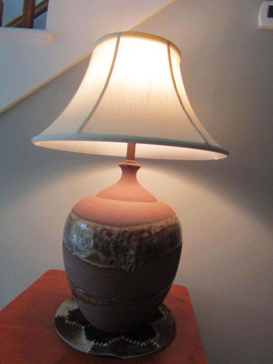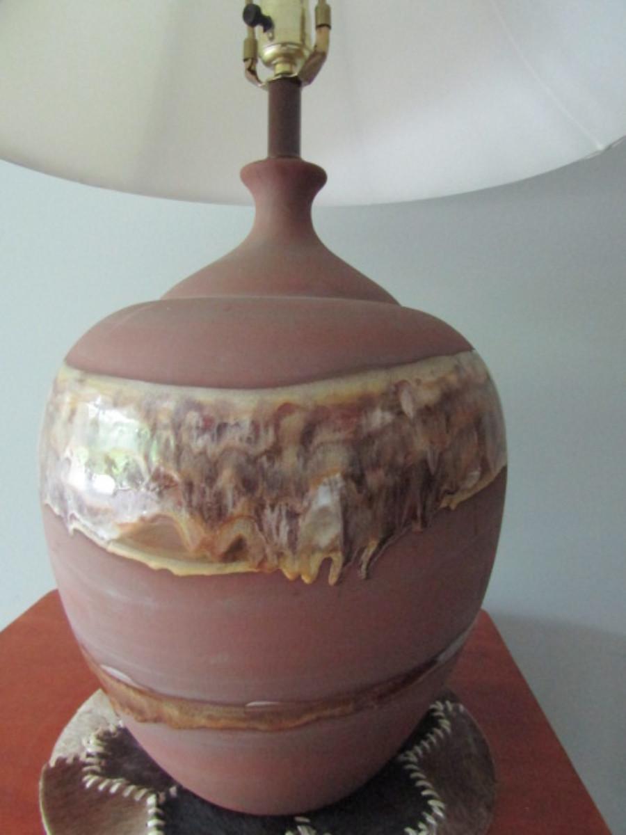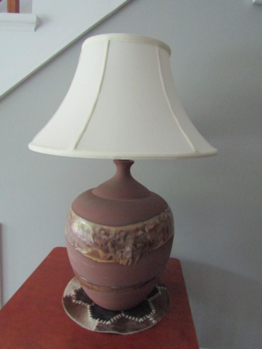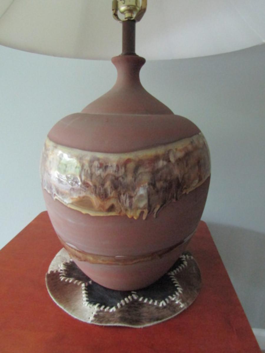 Artistically Glazed Ceramic Table Top/Accent Lamp with Shade. Pictures show lamp sitting on stitched fur doilie- this is not part of the lamp.