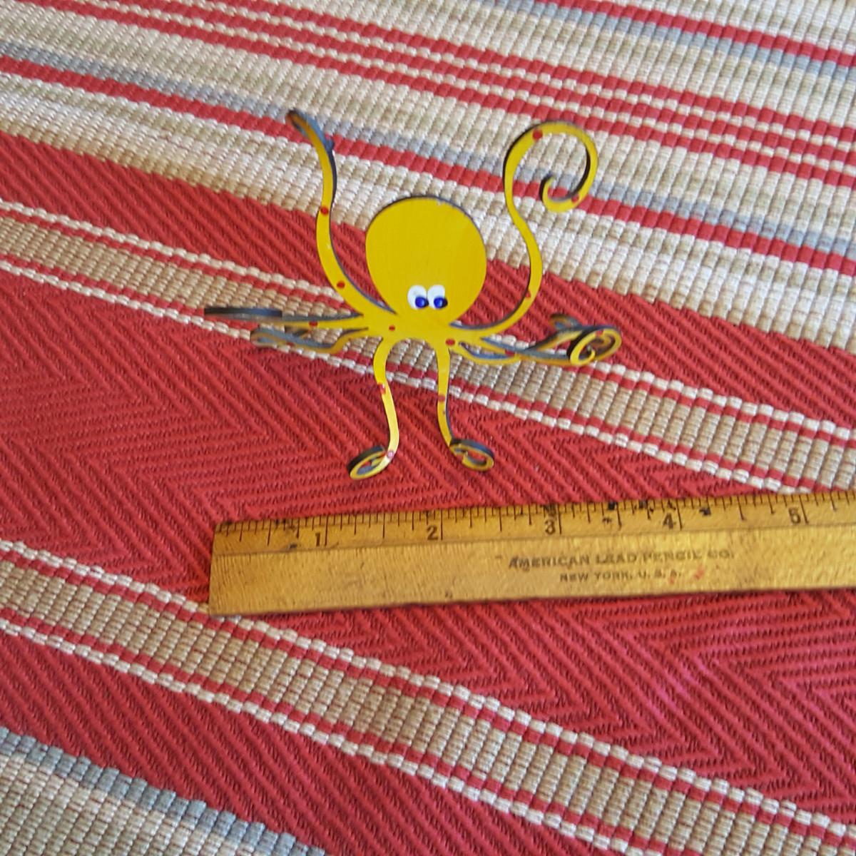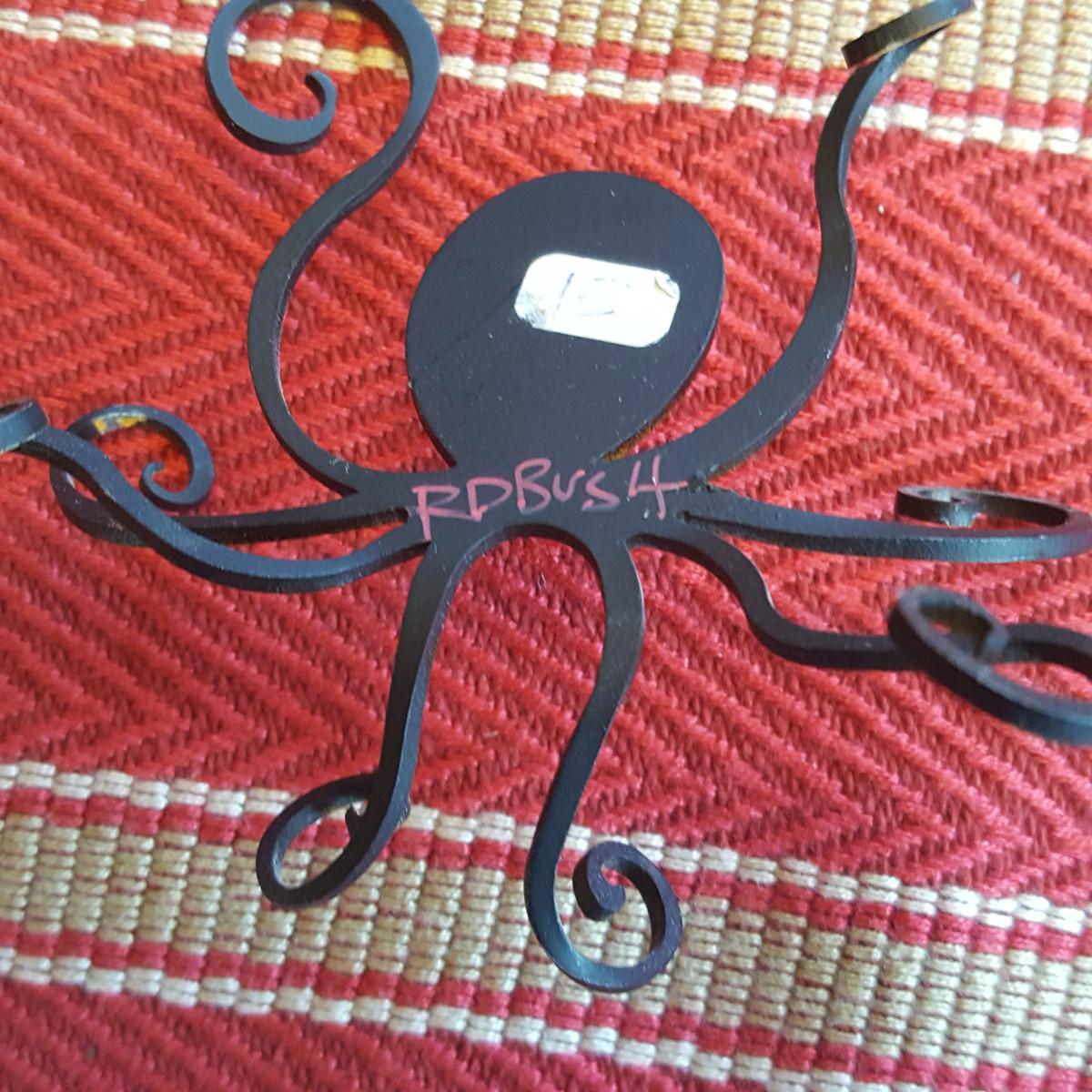 This auction lot is for a unique Artist-Made Octopus Business Card Holder. Holds a standard-sized business card. Signed by R.D. Bush. Very unusual, could be used to hold a photo or other like item. Made from metal of some type, see photo for size.