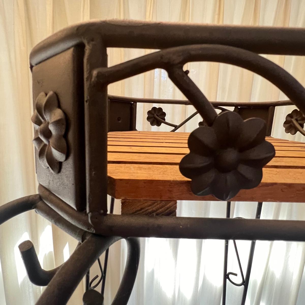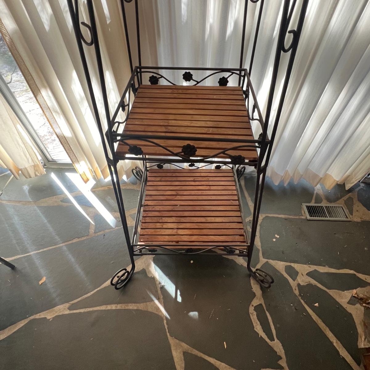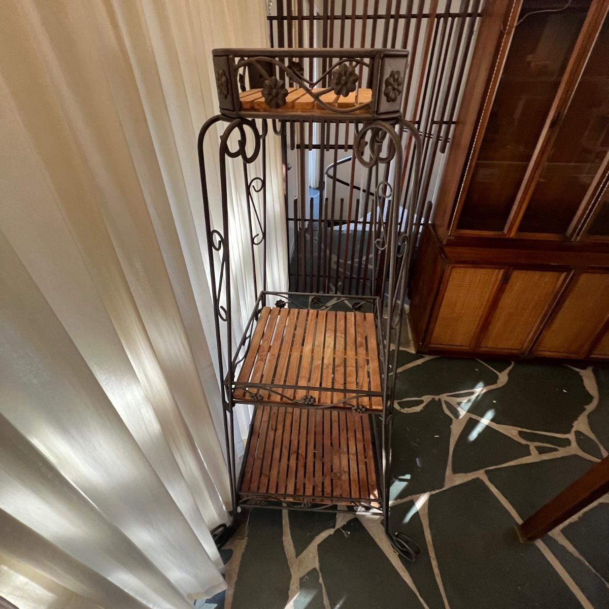 Three Tier Wrought Iron + Teak Open Shelf Etagere (DR-RG)