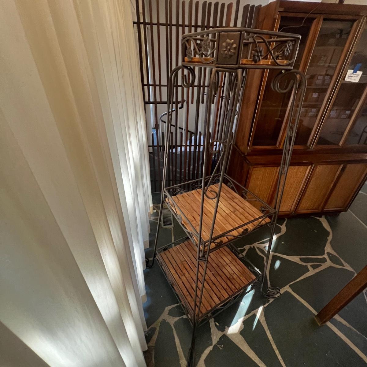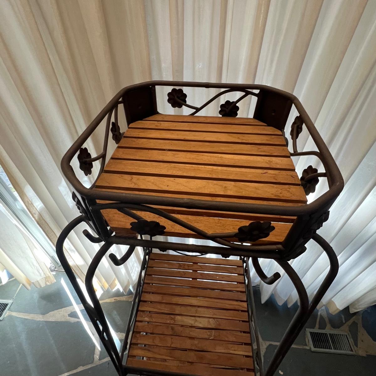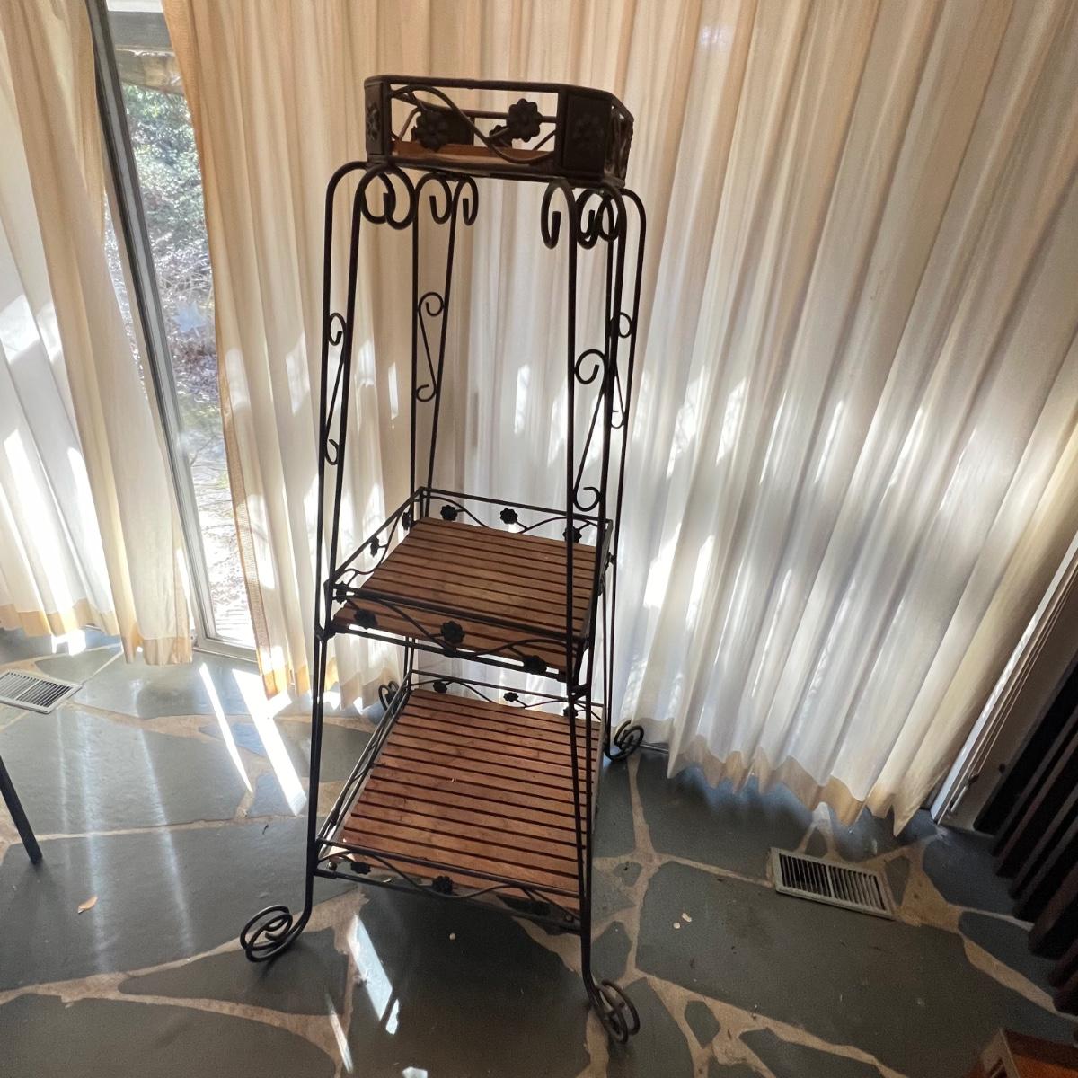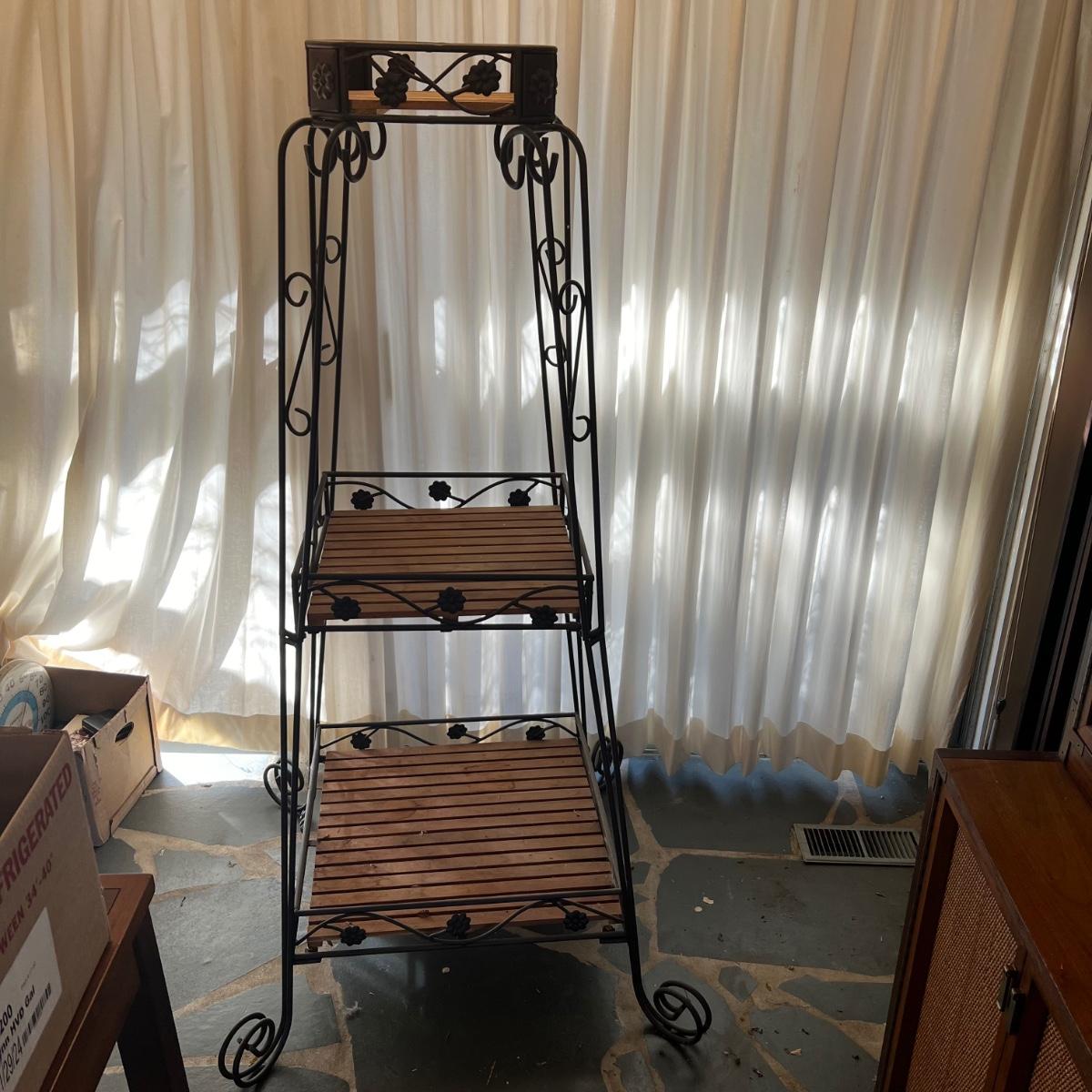 Three Tier Wrought Iron + Teak Open Shelf Etagere (DR-RG)