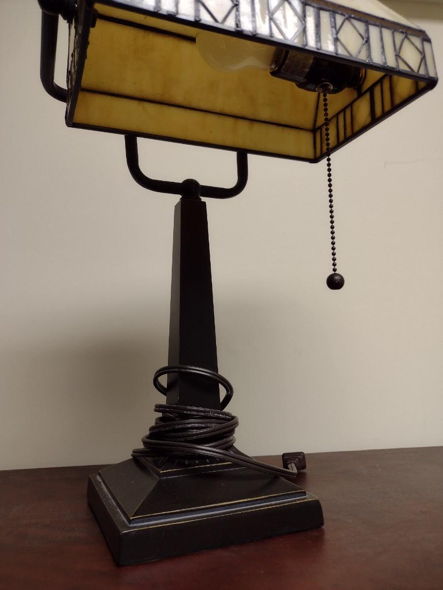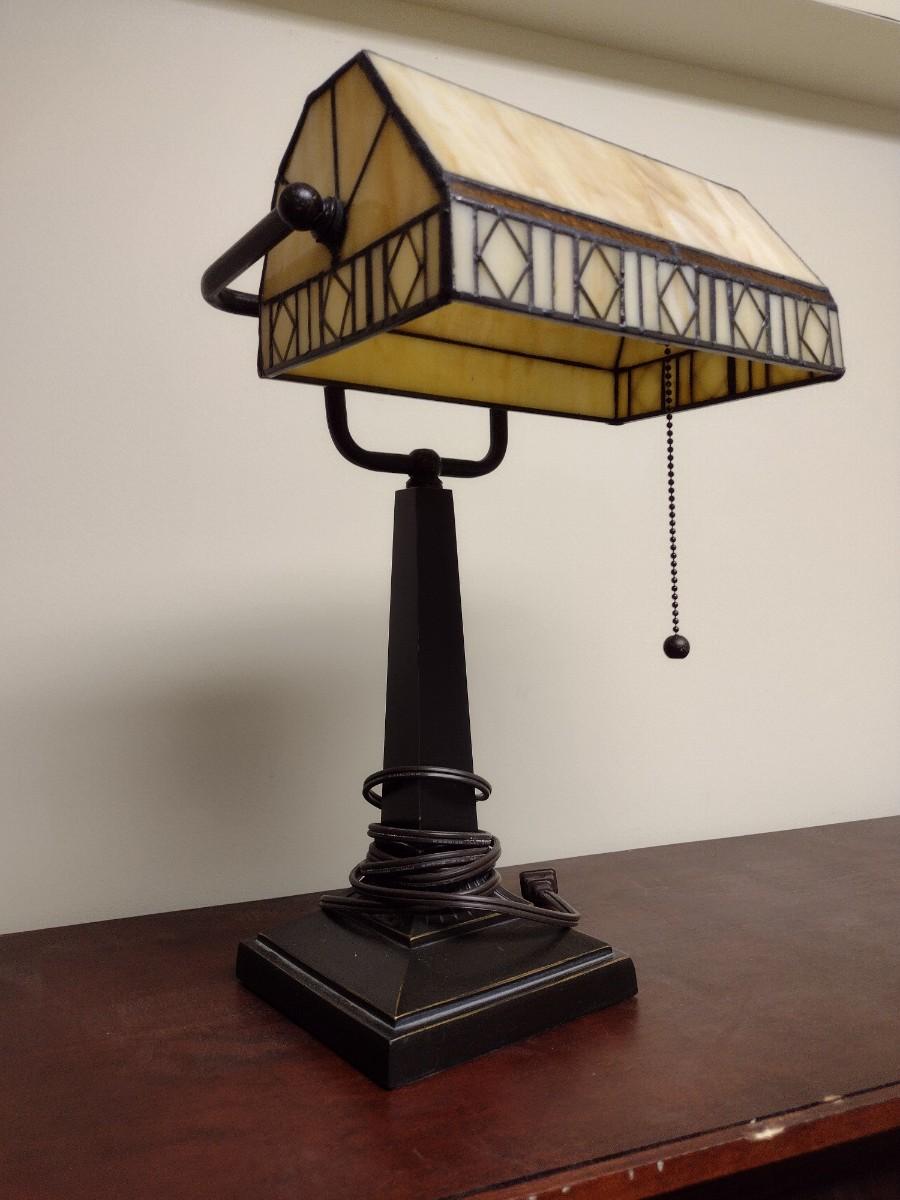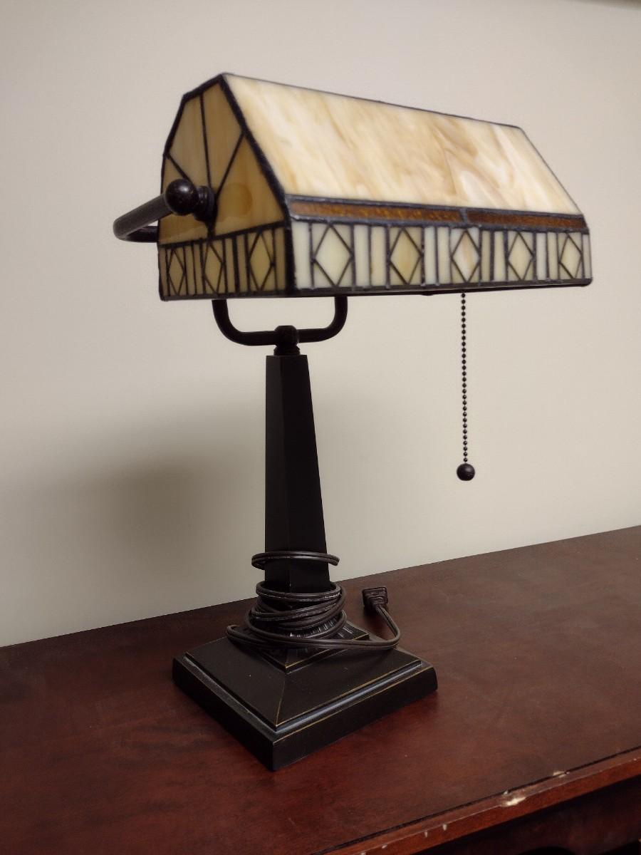 Arts and Crafts Style Stained Glass Banker's Table Lamp