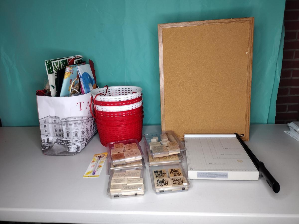 Stamps, paper cutter, baskets, and more! See pictures for details.
