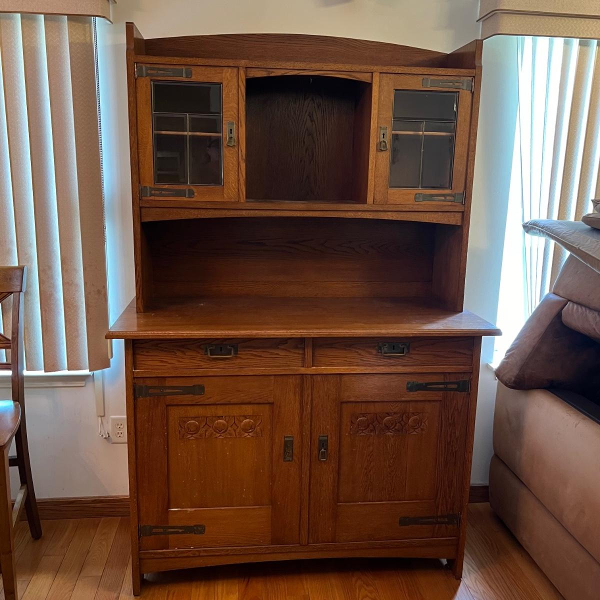 Arts & Crafts Style Hutch W/ Carved Detailing (DR-RG)