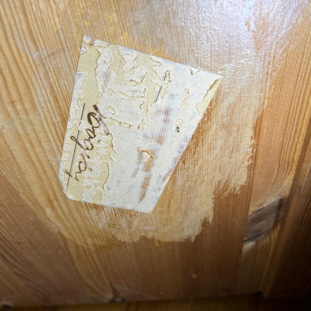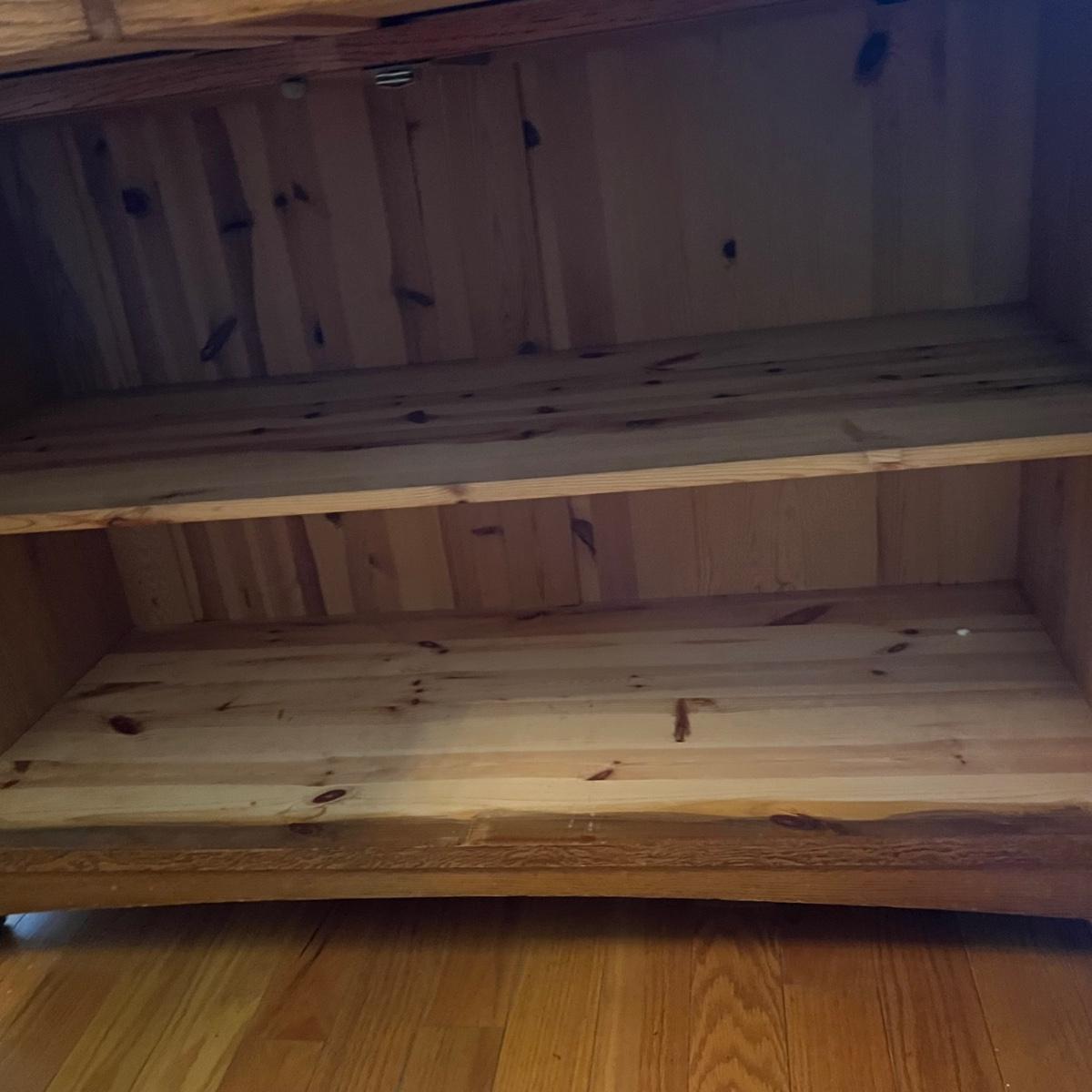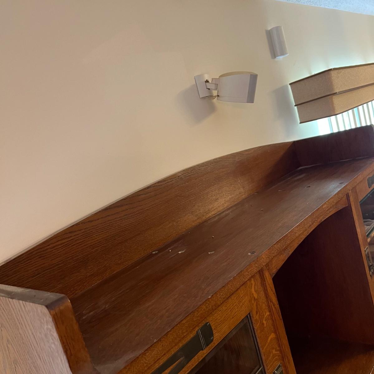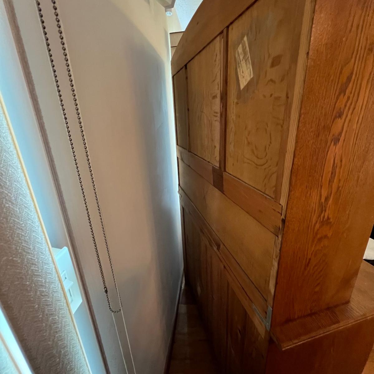 This piece is in two sections. Winning bidder will be responsible for dismantling sections if desired, see images for hardware involved. There is a small watermark shown in an image.