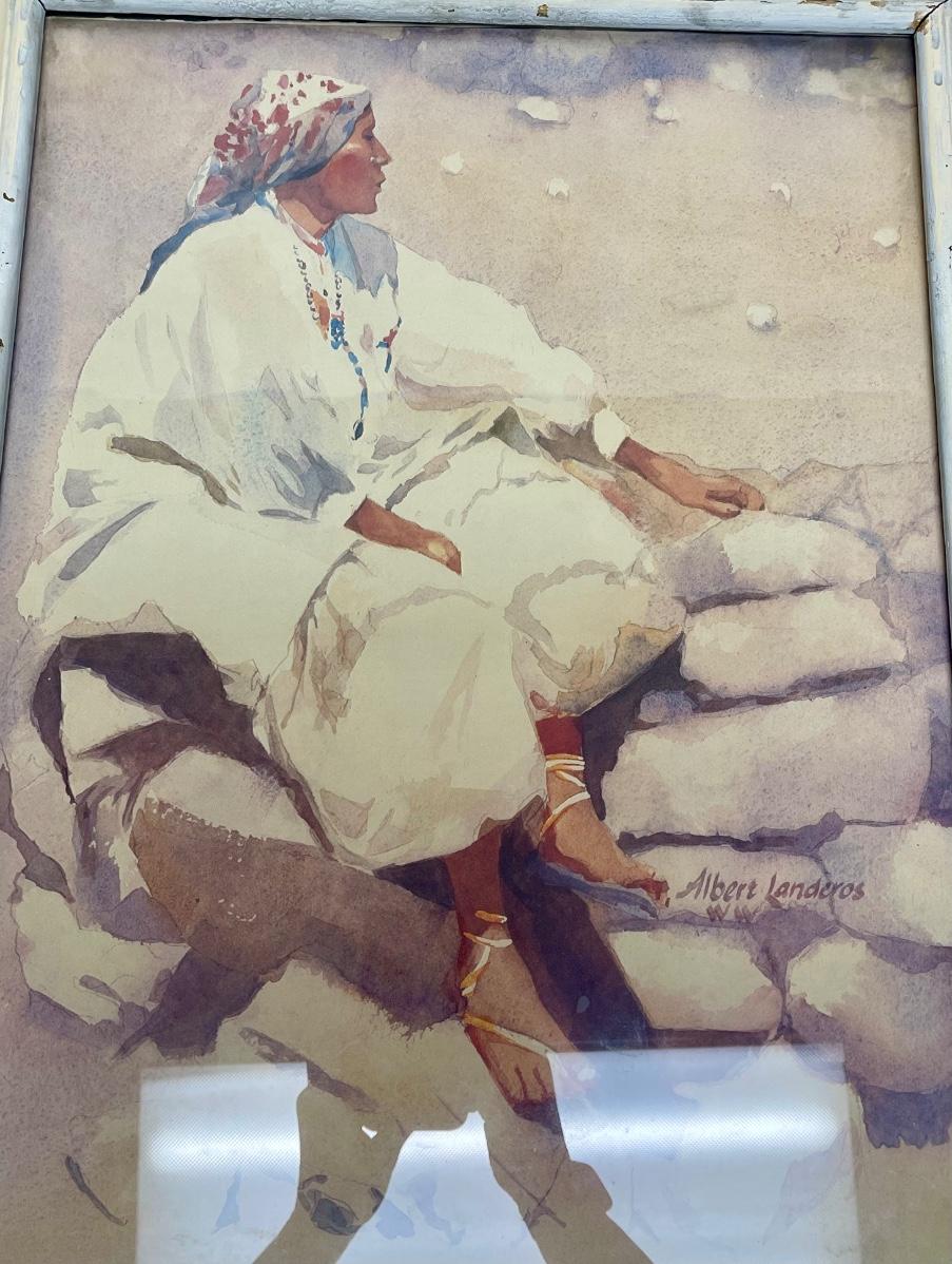 Framed Art: Signed Watercolor Lithograph "Aquila" by Albert Landeros.