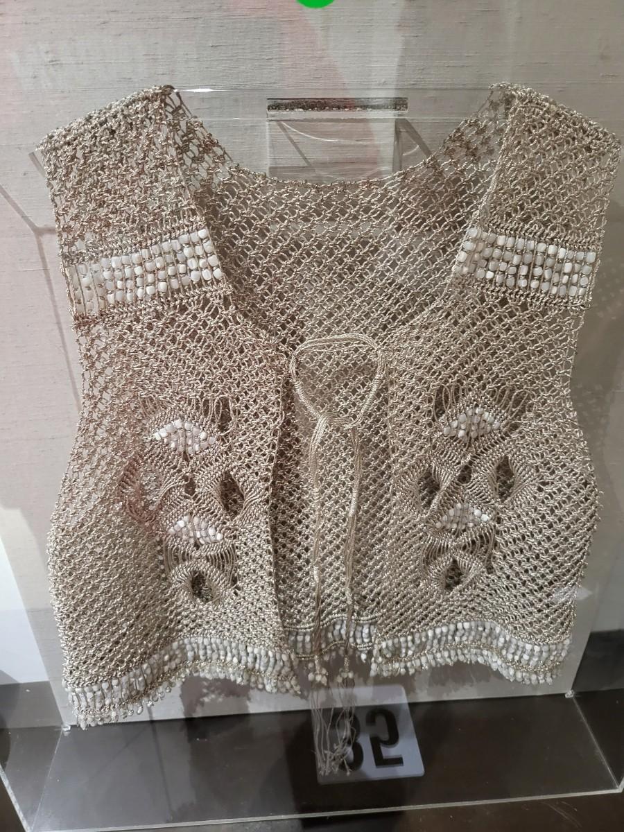 Antique Eastern Vest Hand Crocheted W/ Silver Thread behind Plexiglass Lot