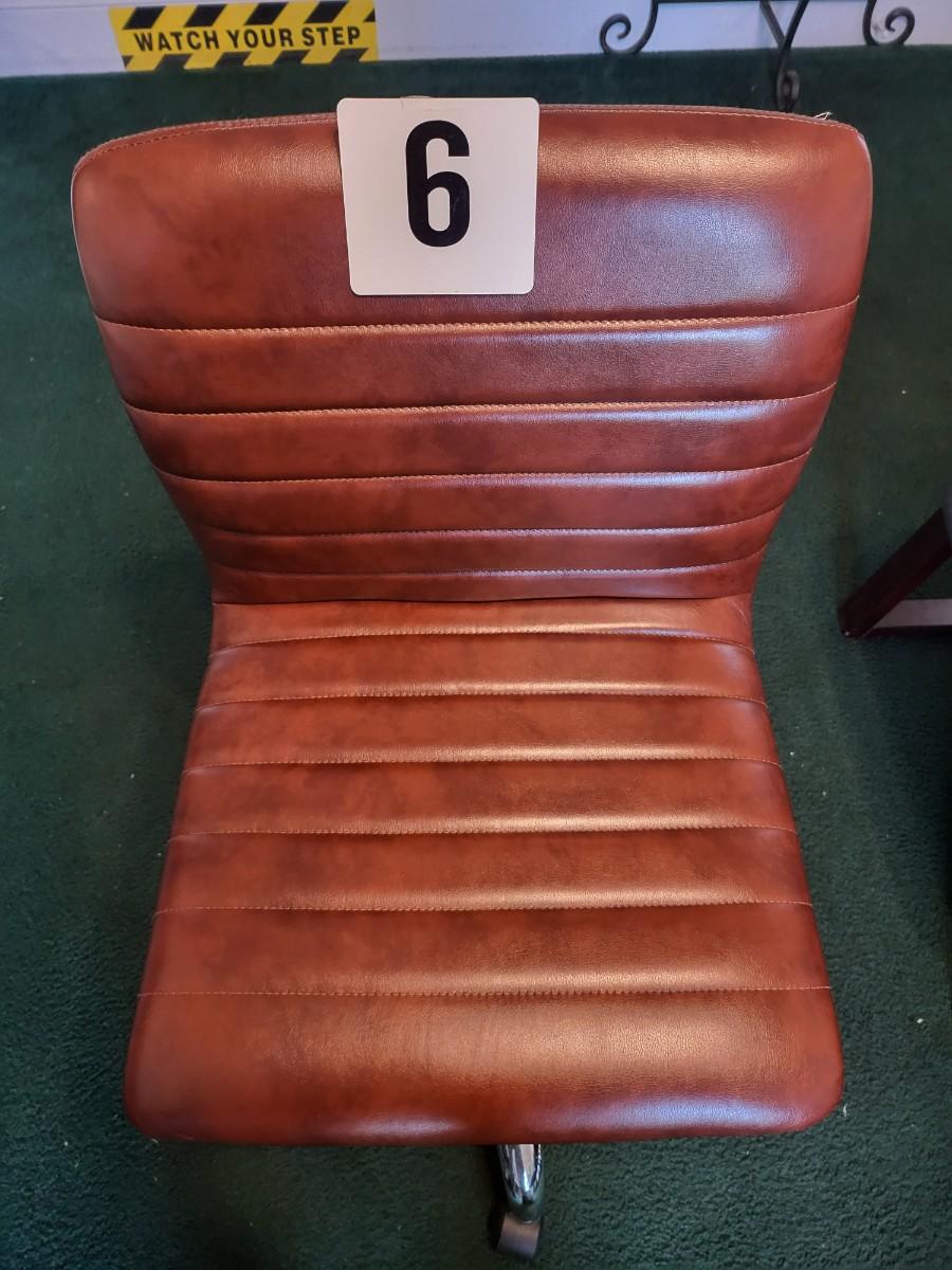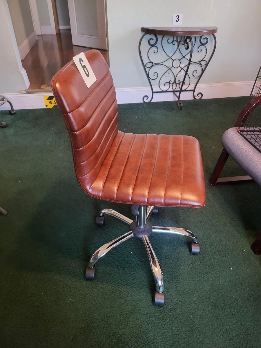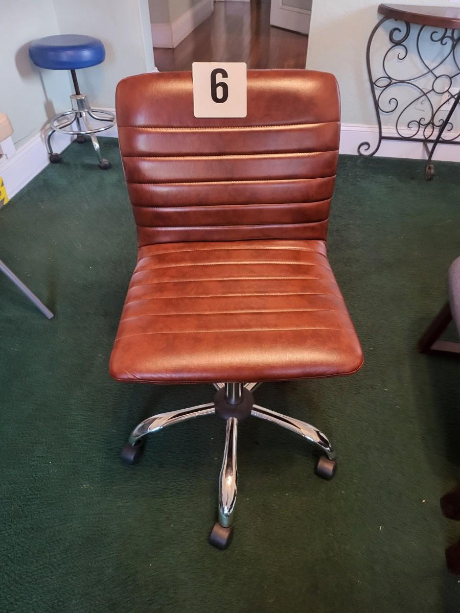 Alan Office Task Chair with Brown Vinyl, Chrome Frame, Armless, Ribbed and Low Back Design, Adjustable