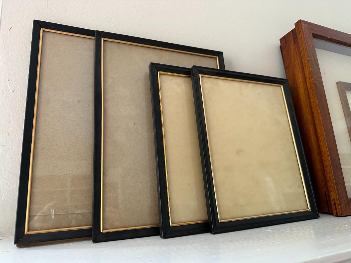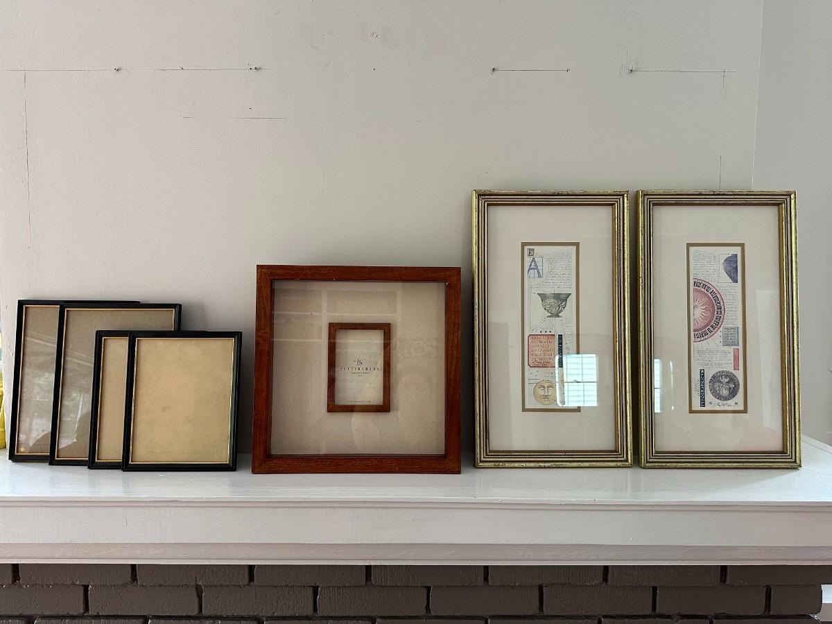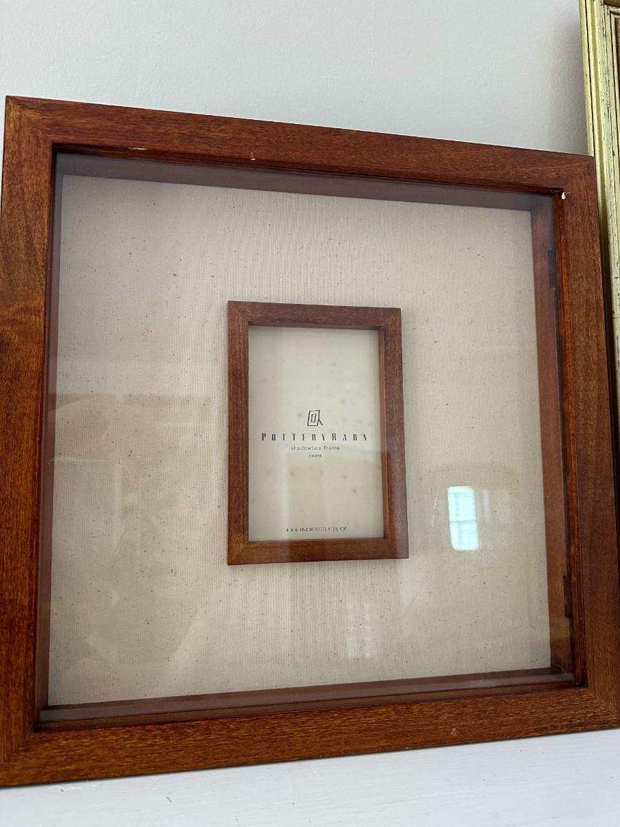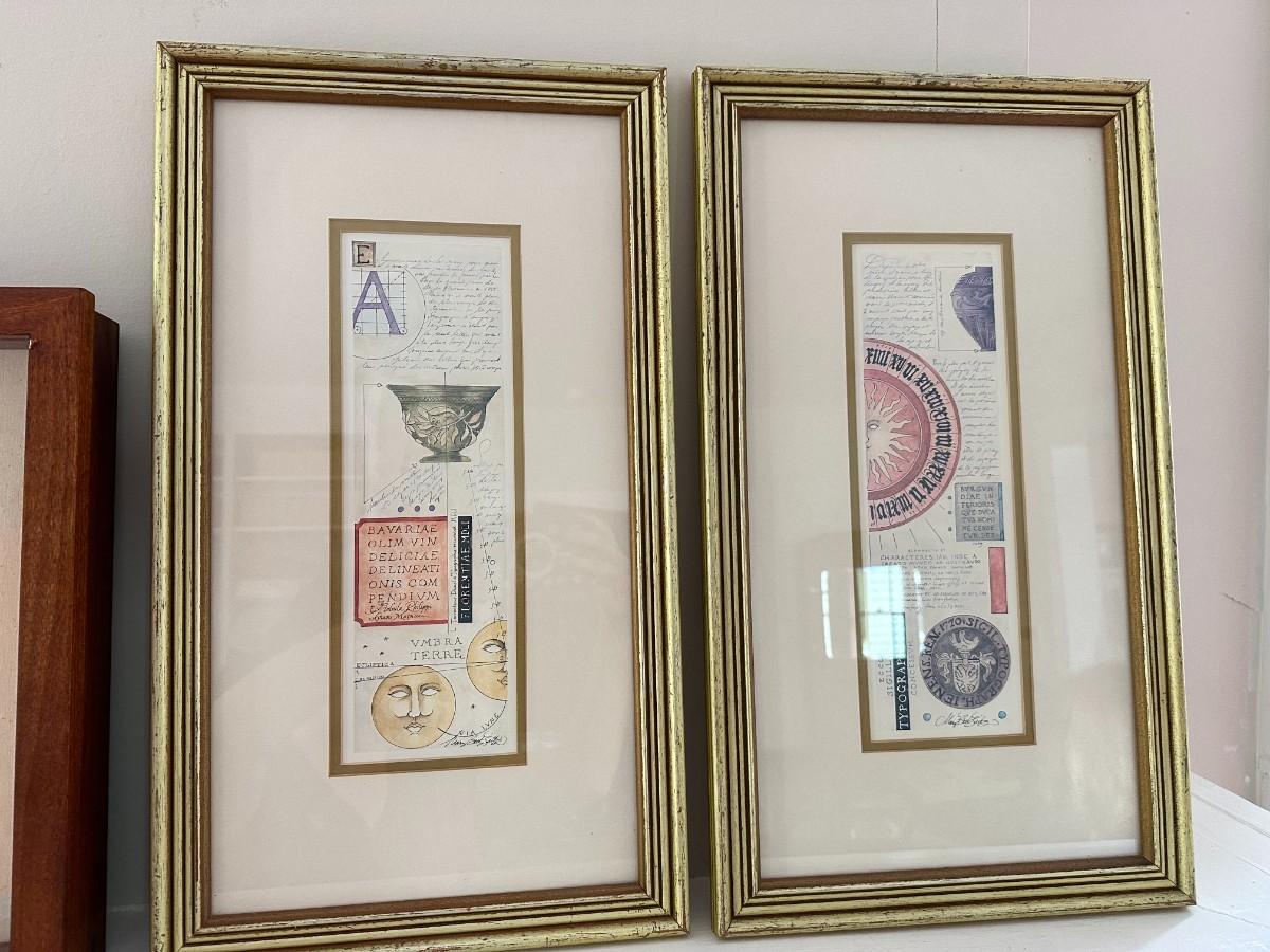 Set of 2 Framed Matted Art 12"w 21"h each. Pottern Barn Shadowbox Frame, 2 Black Frames 2 are 7" x 9" opening, 2 are 8" x 11" opening.