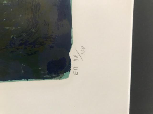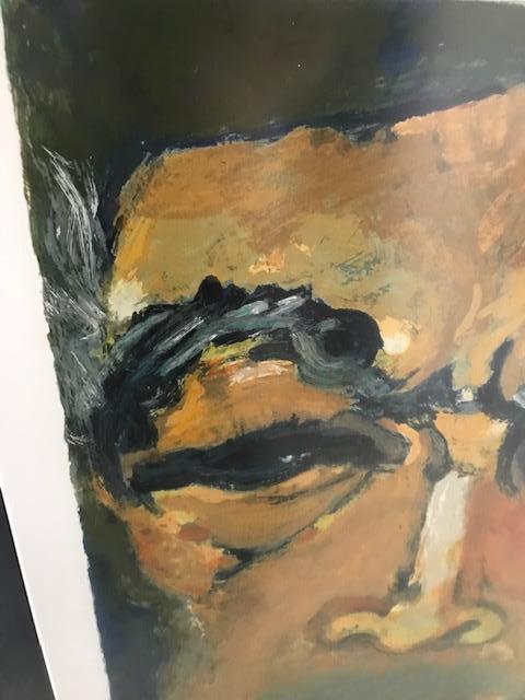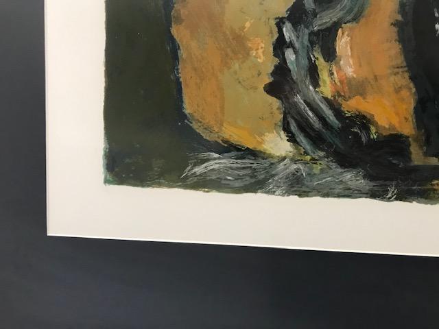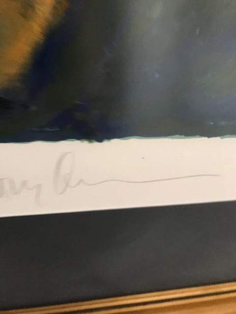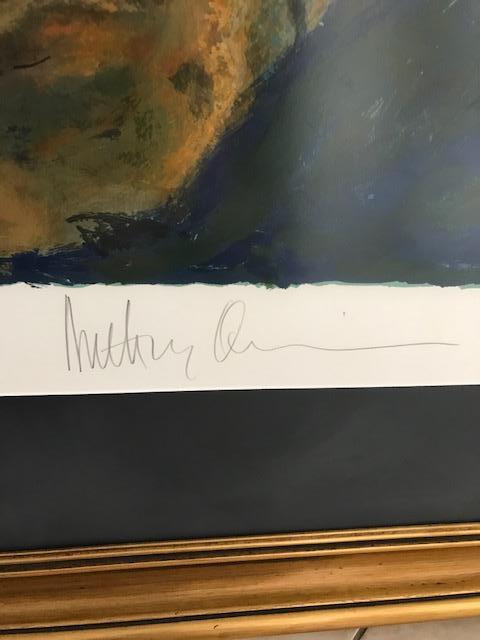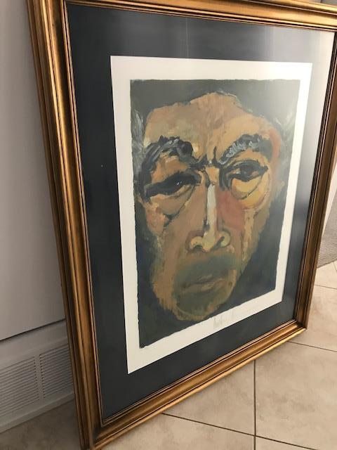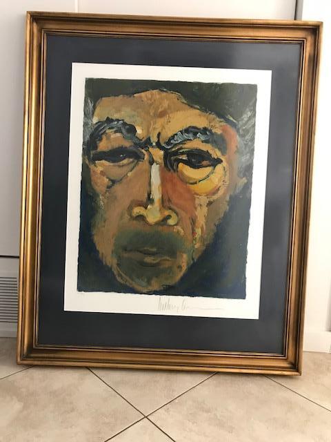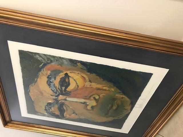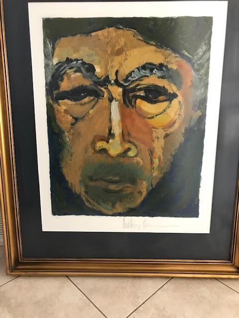 Artwork by Oscar winning Actor Anthony Quinn. Numbered #48/100. Signed Lithograph. Measures about 39.5” W X 48”H. Custom framed in gold hued frame. Stunning timeless piece.