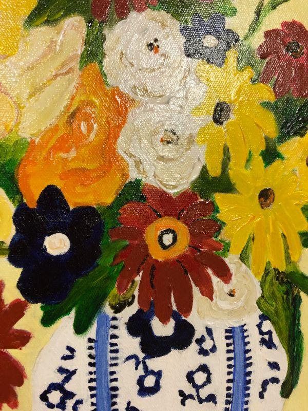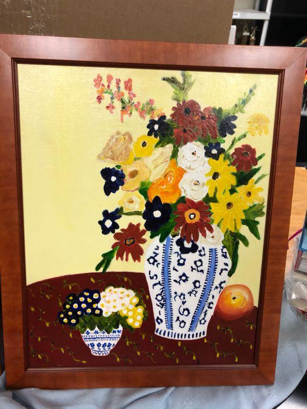 Artwork Set of 2 Colorful Delft Blue Flower Vase painting Still Life framed to match