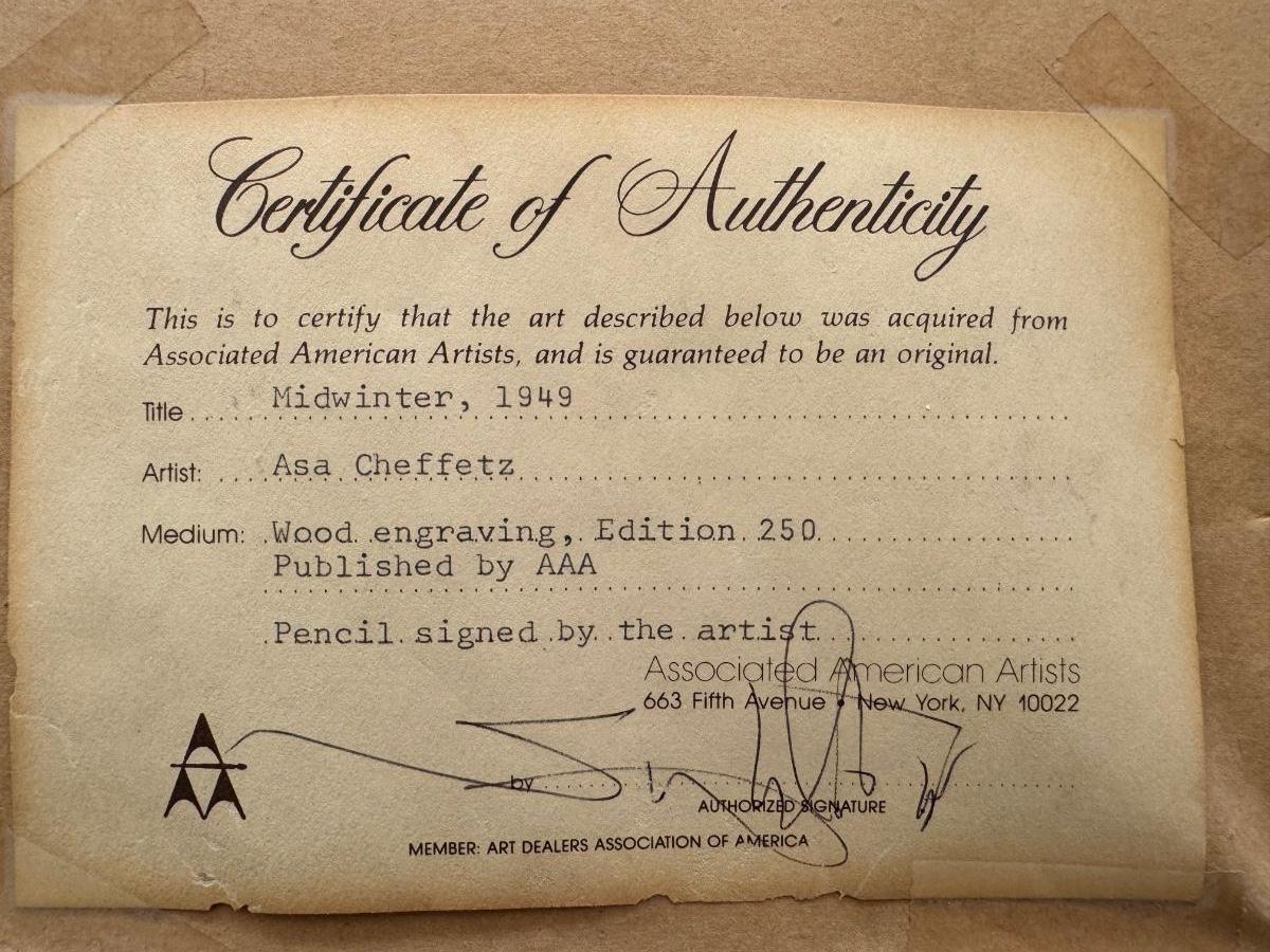 Asa Cheffetz, Midwinter, 1949, wood engraving, framed, signed, edition 250