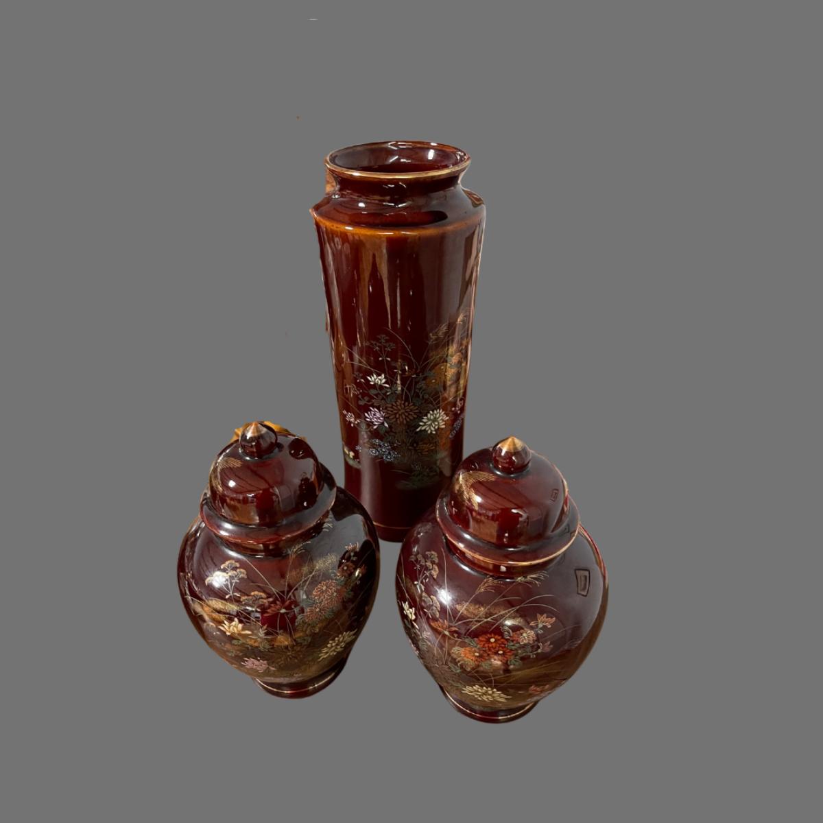 Asahi Japan Flower Vase and Two Matching Urns with Lids