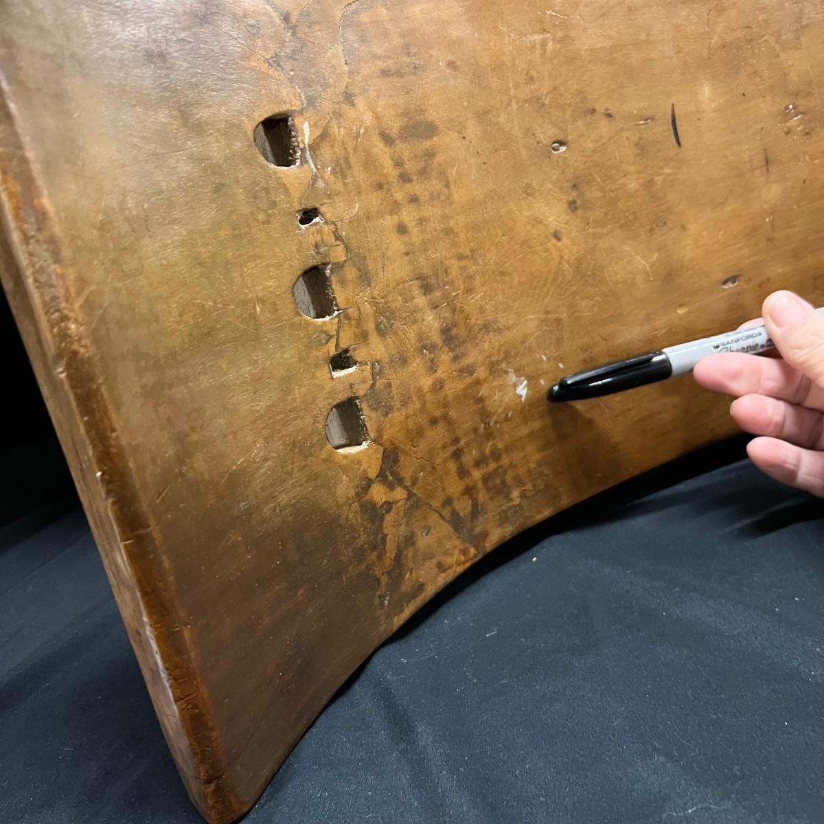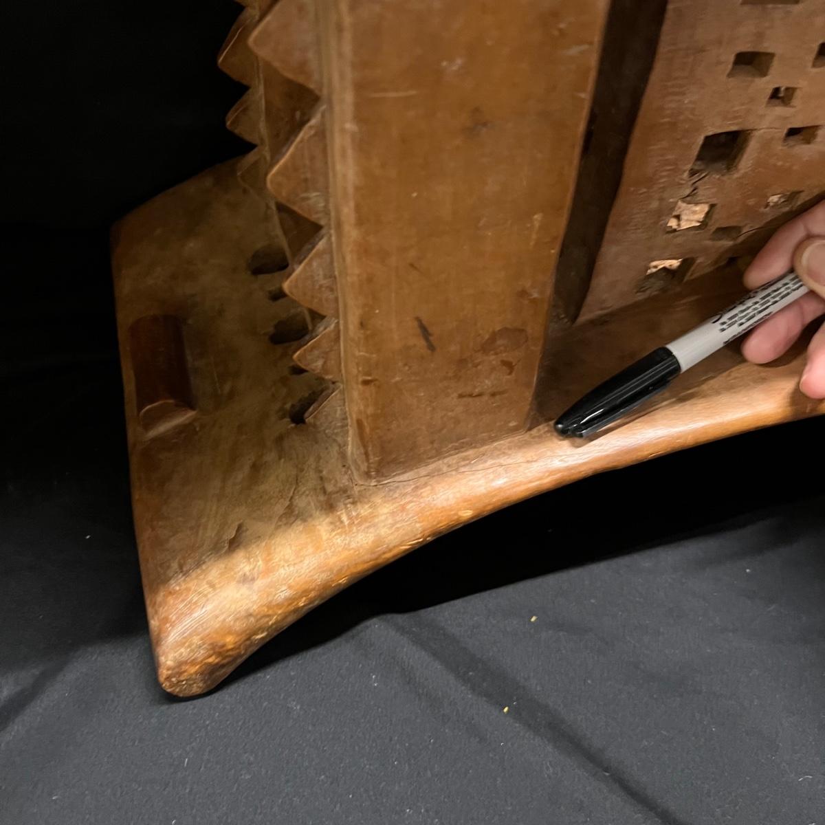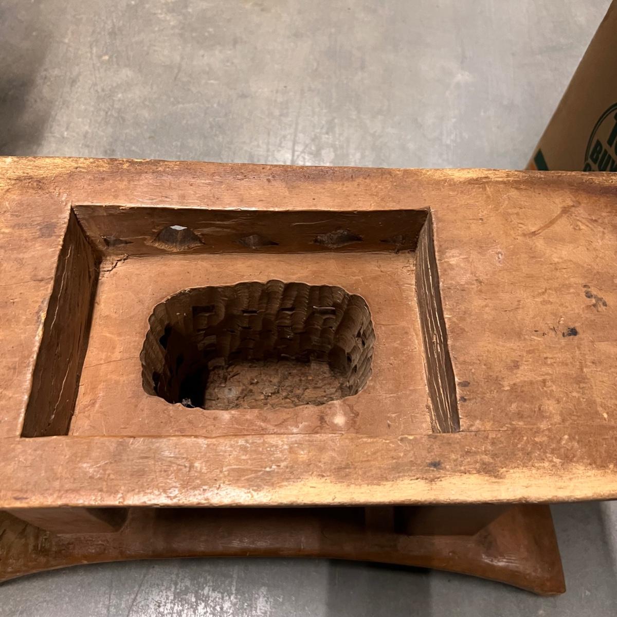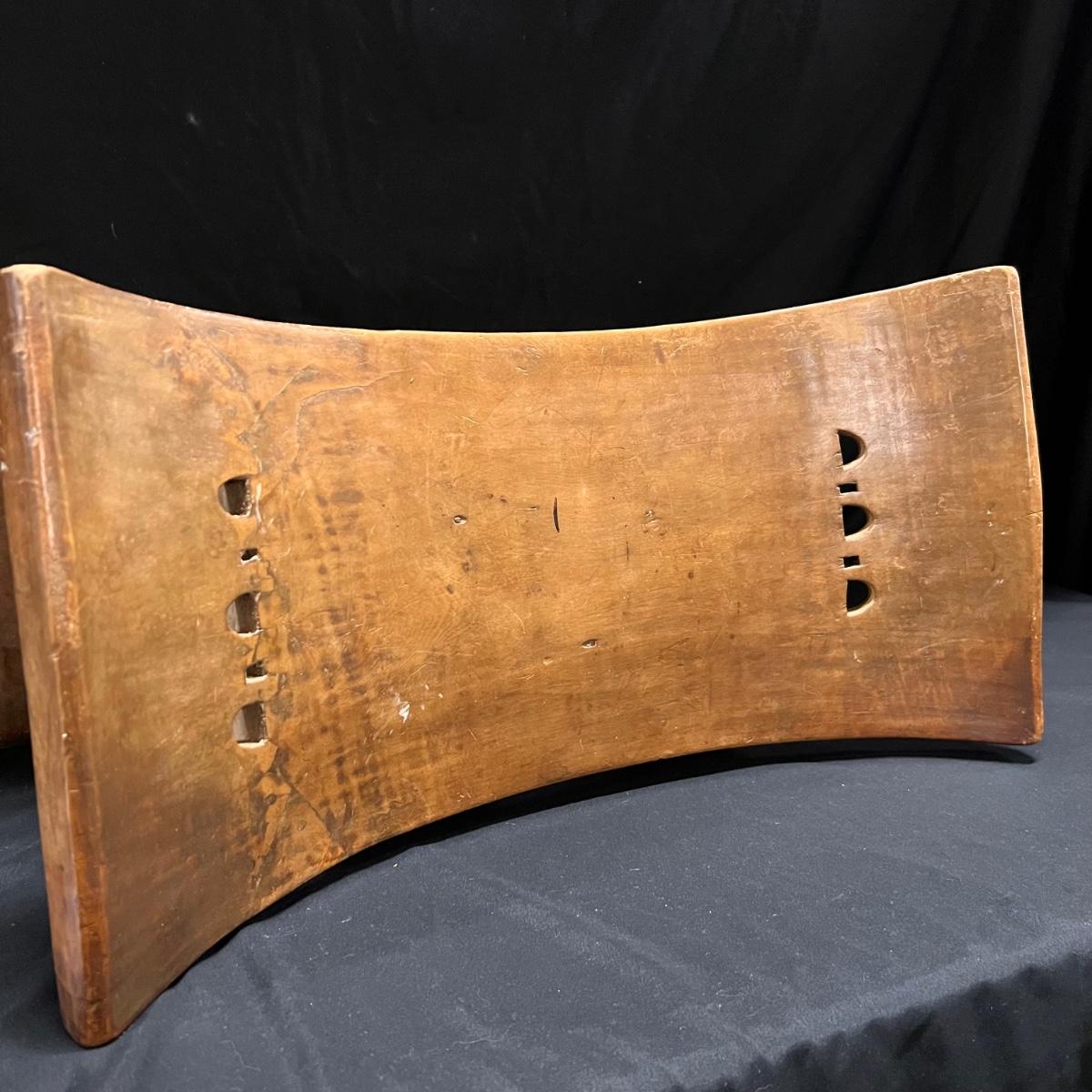 This beautiful piece appears to be an Asante style stool. It's a lightweight wood (one small blemish and a minor small crack shown in a pics). It has carved details, see images.