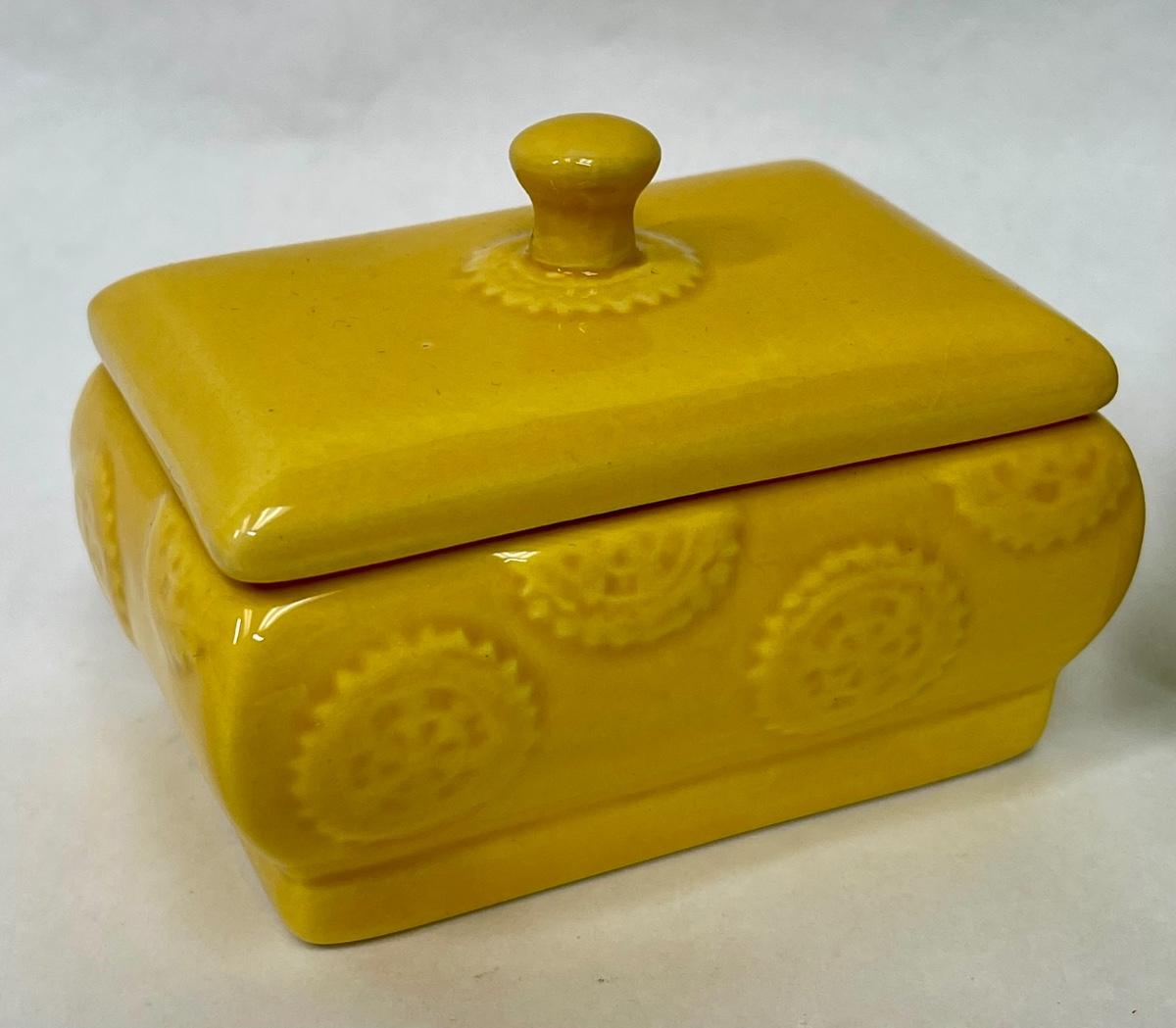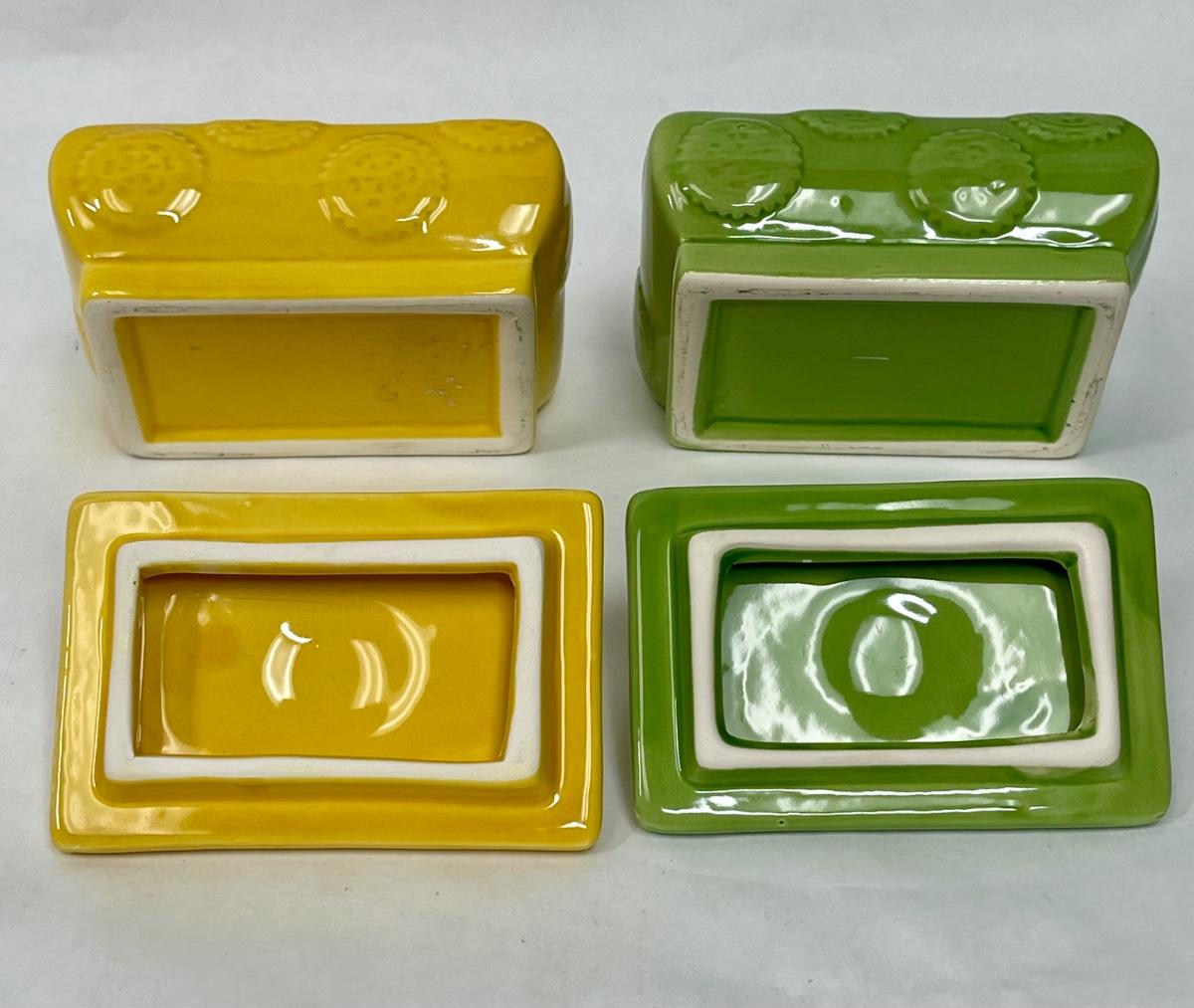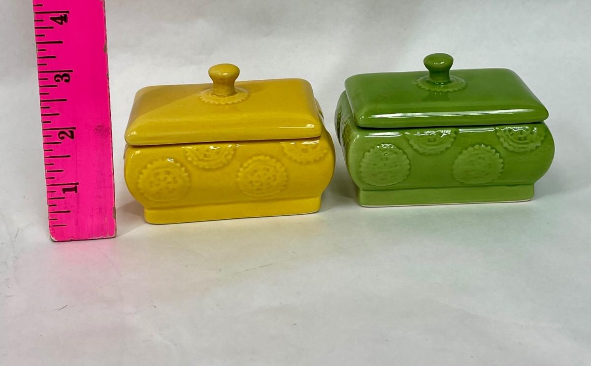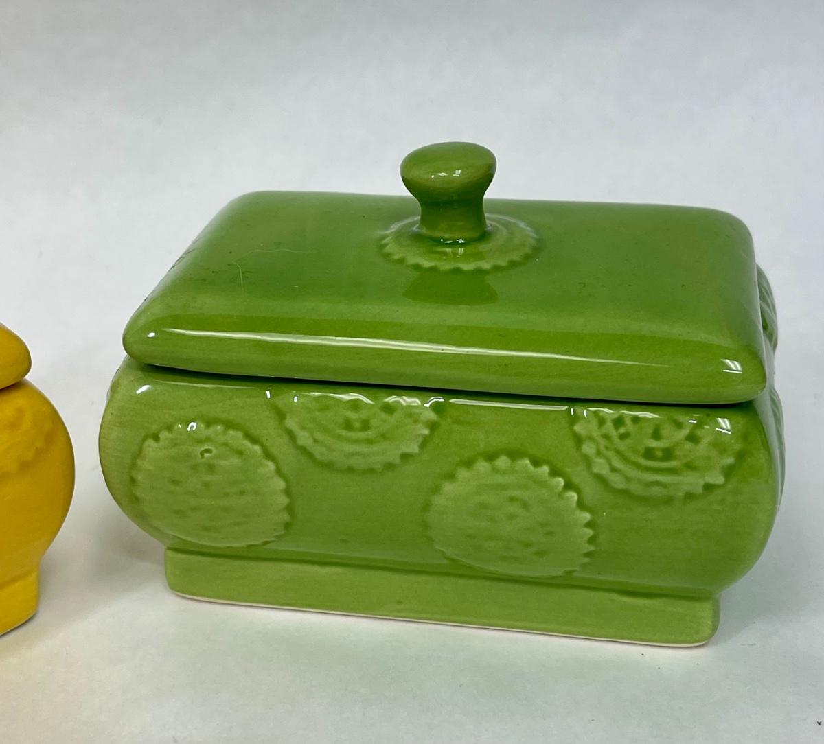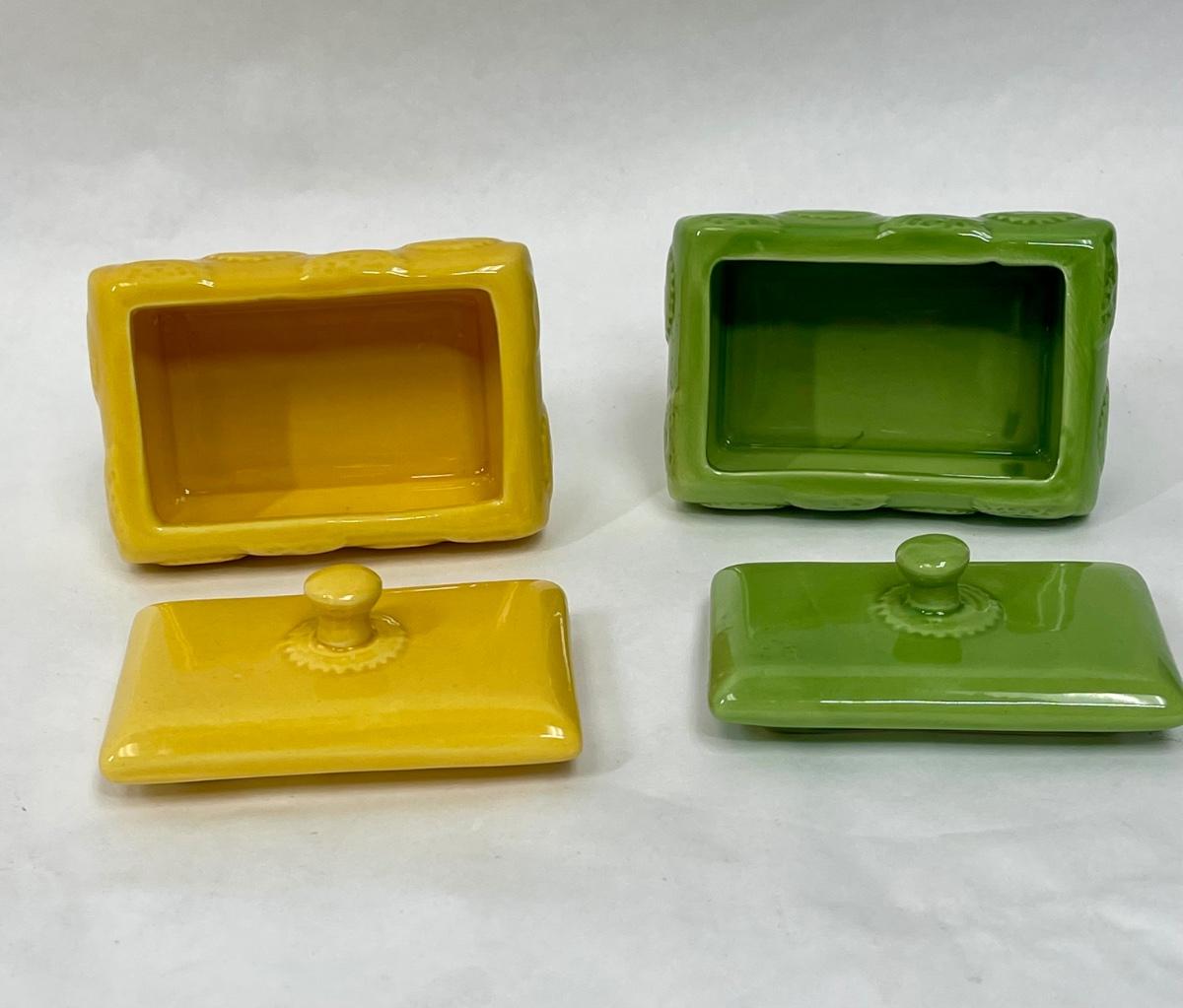 Pair of Ceramic Lidded Trinket Boxes Yellow Green