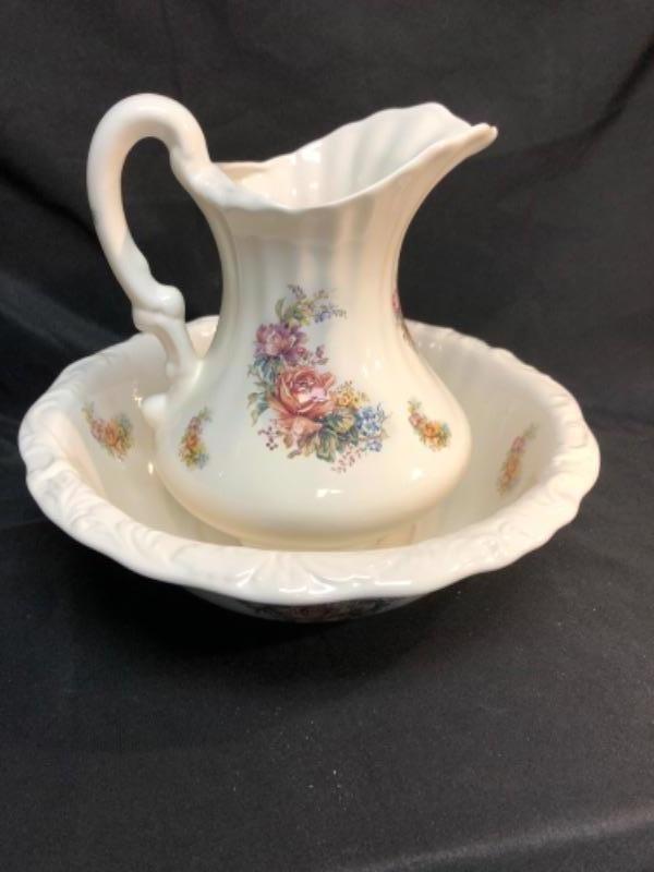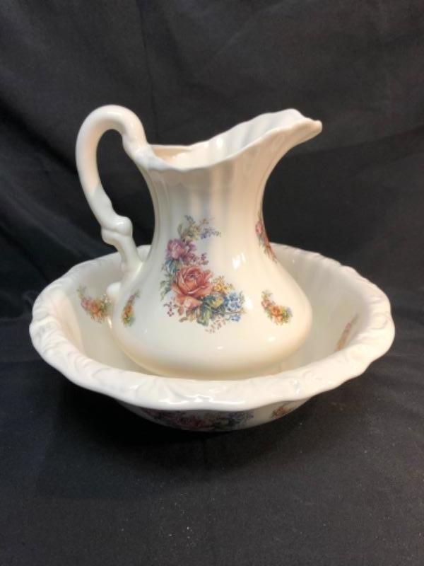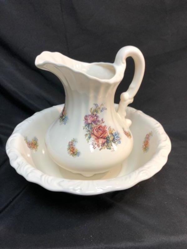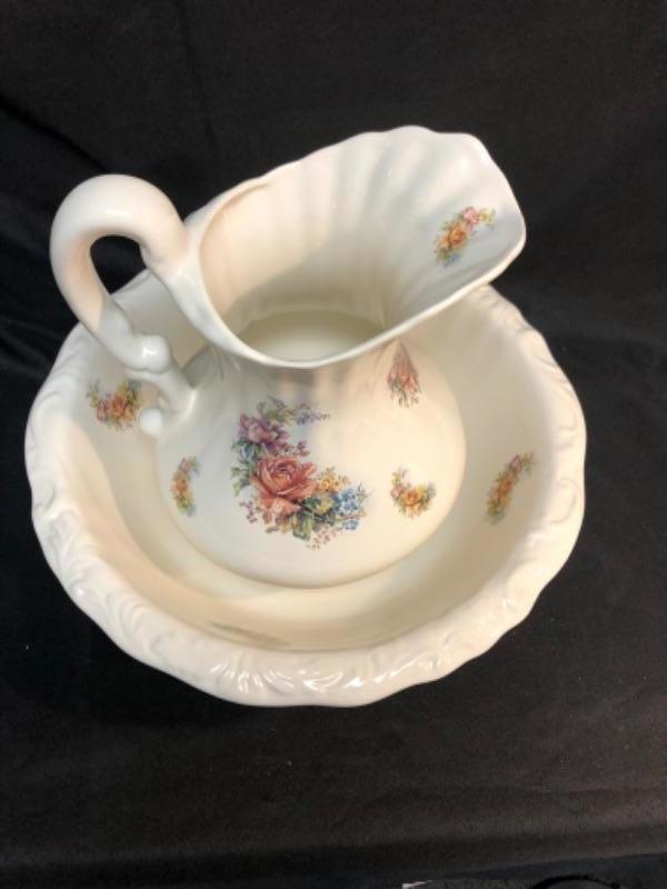 Wash basin and pitcher/ Vintage flower Pottery Water Wash Calif. USA