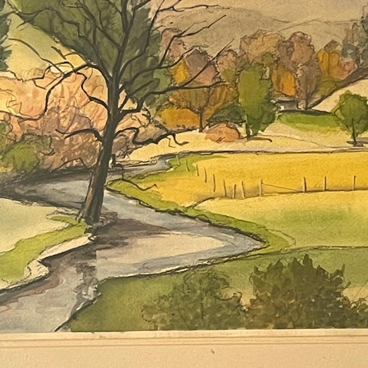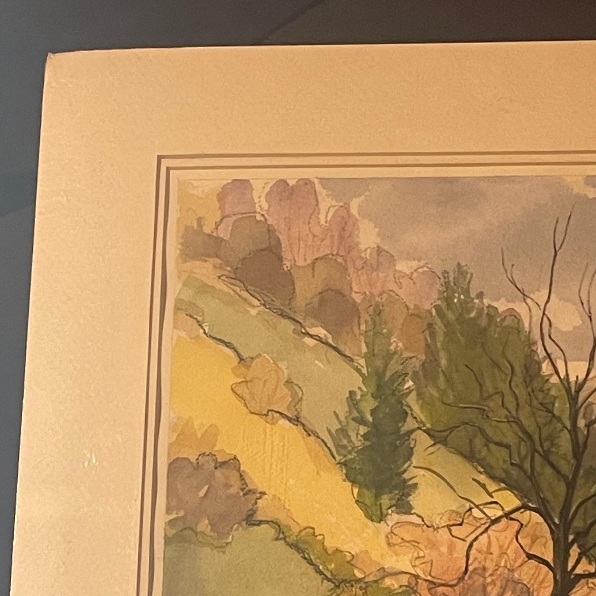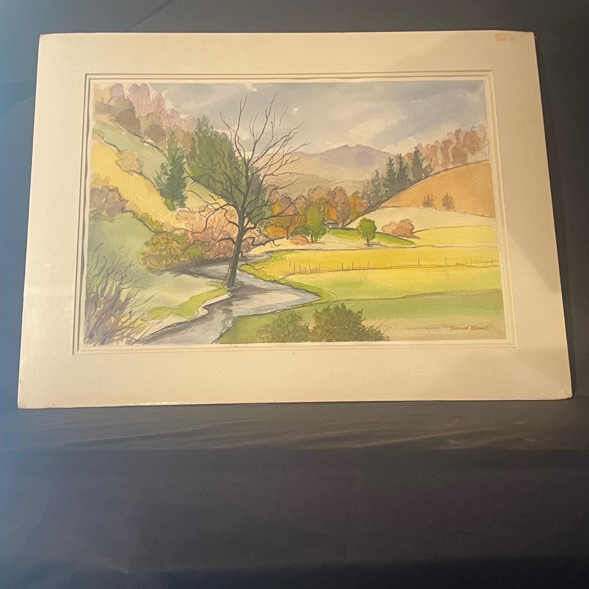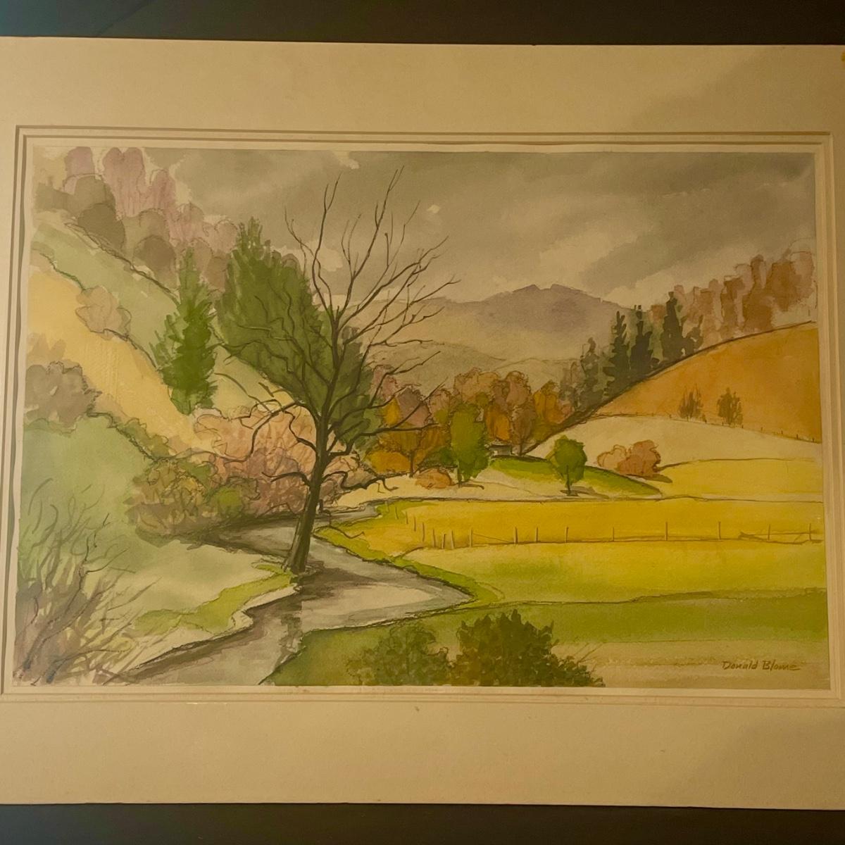 This delightful piece by local artist Donald Blome appears to be a watercolor print. Has a mat but no frame. Measures 18” x 24”.