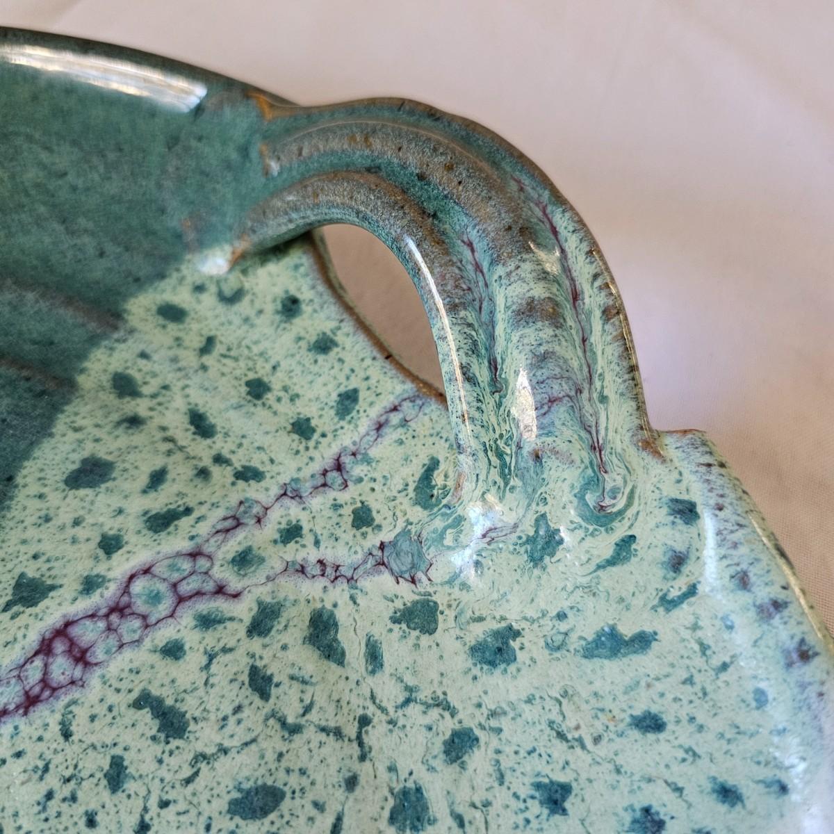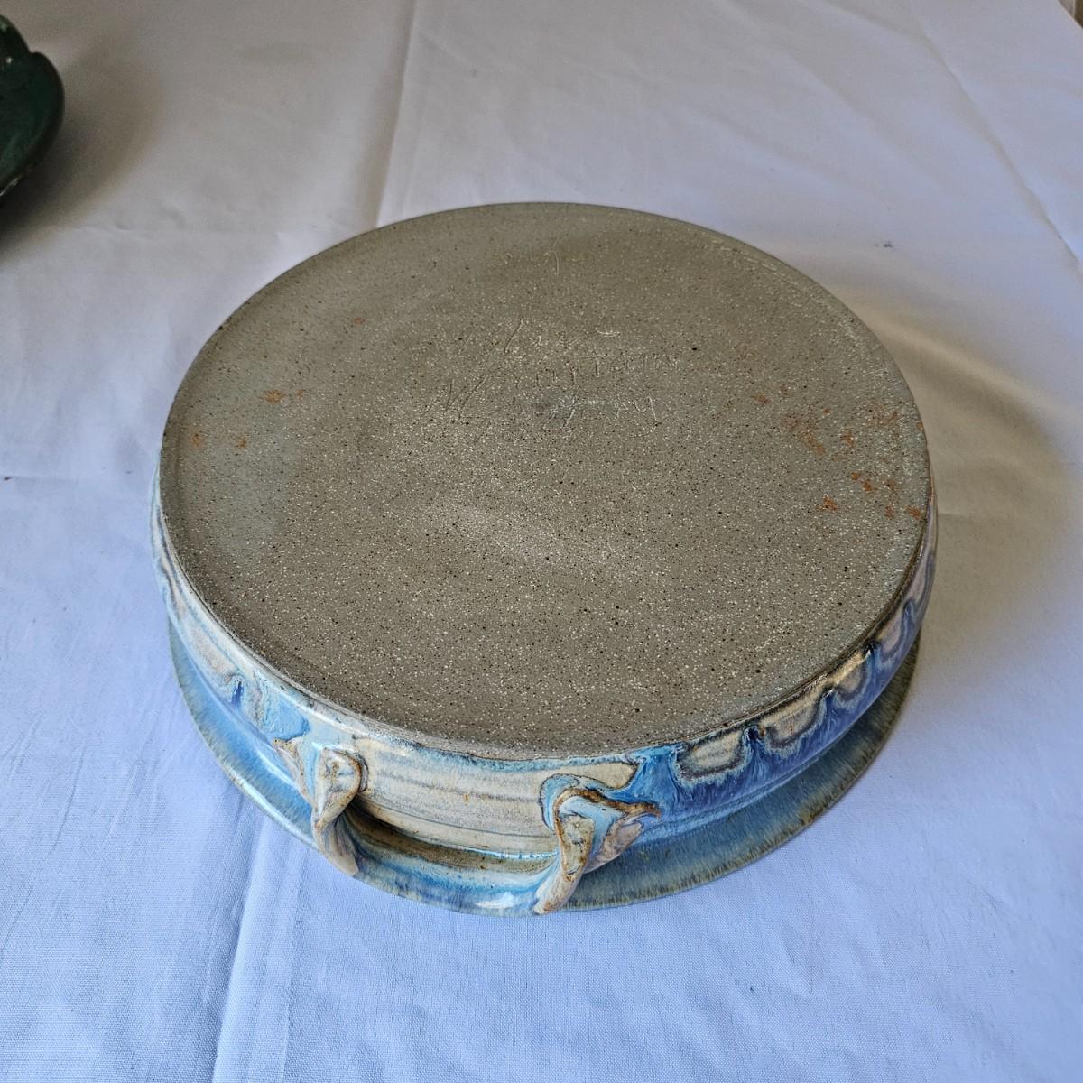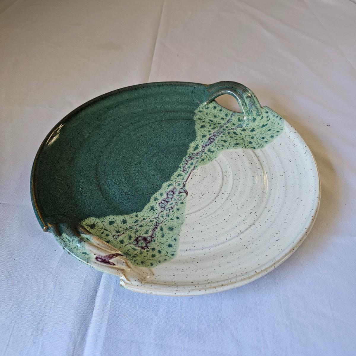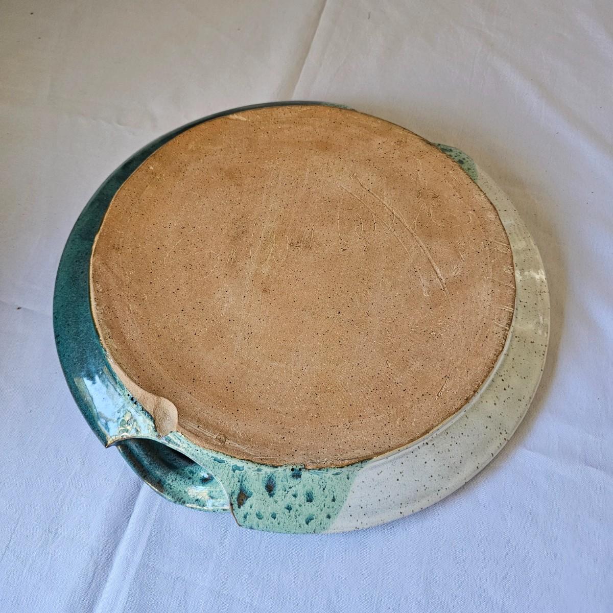 Some pottery items produced by local artists from Asheville and Black Mountain. The large plate piece measures 13.5"D, and the bowl is 12"D x 3"H. There are also three handmade cups in this lot. See photos for details. Shipping available.