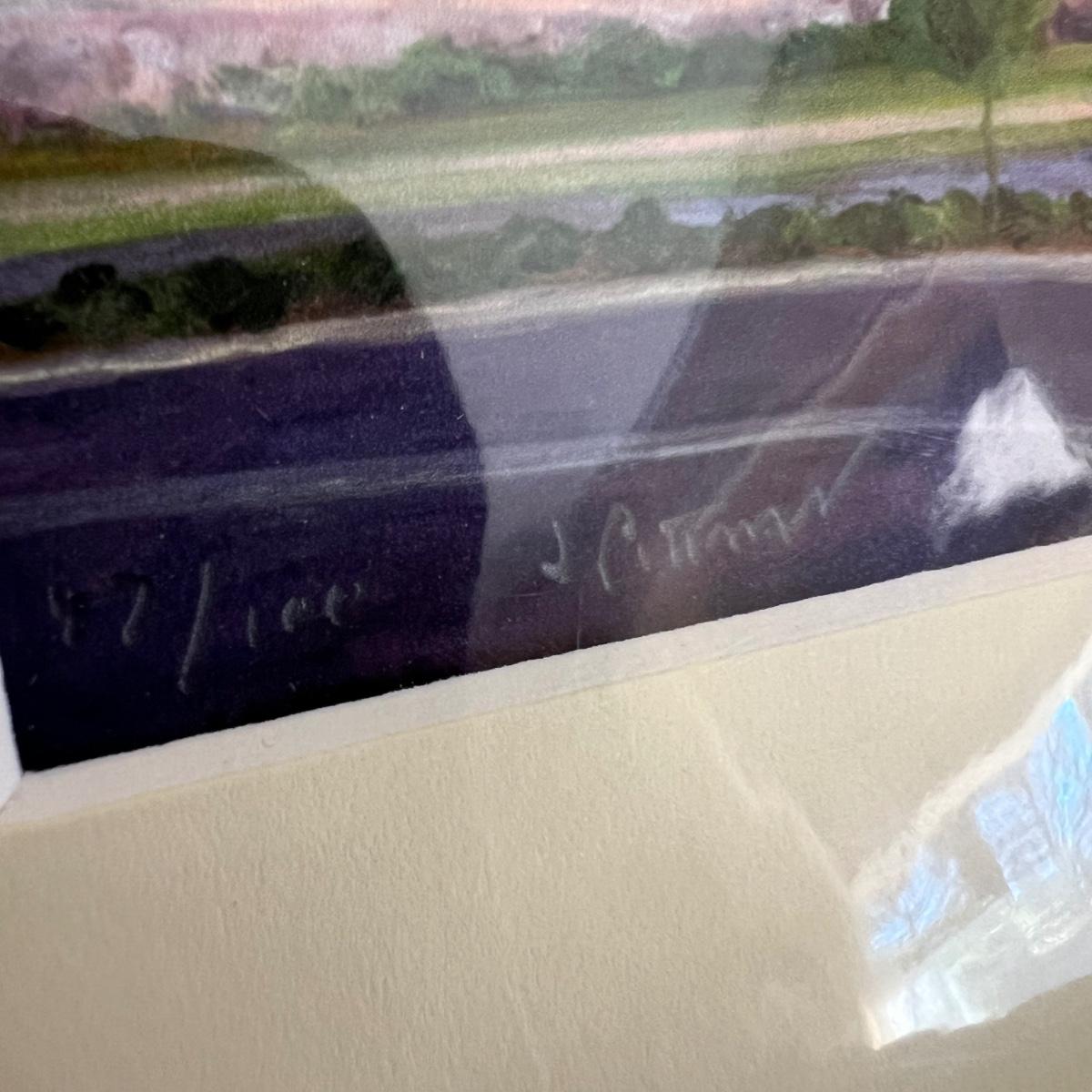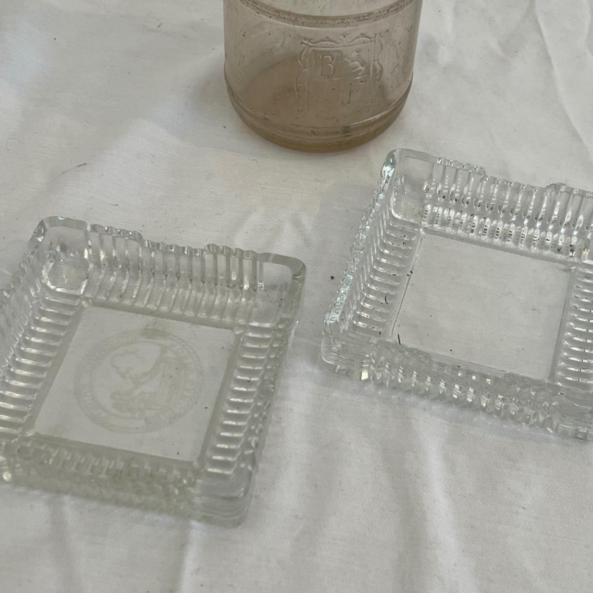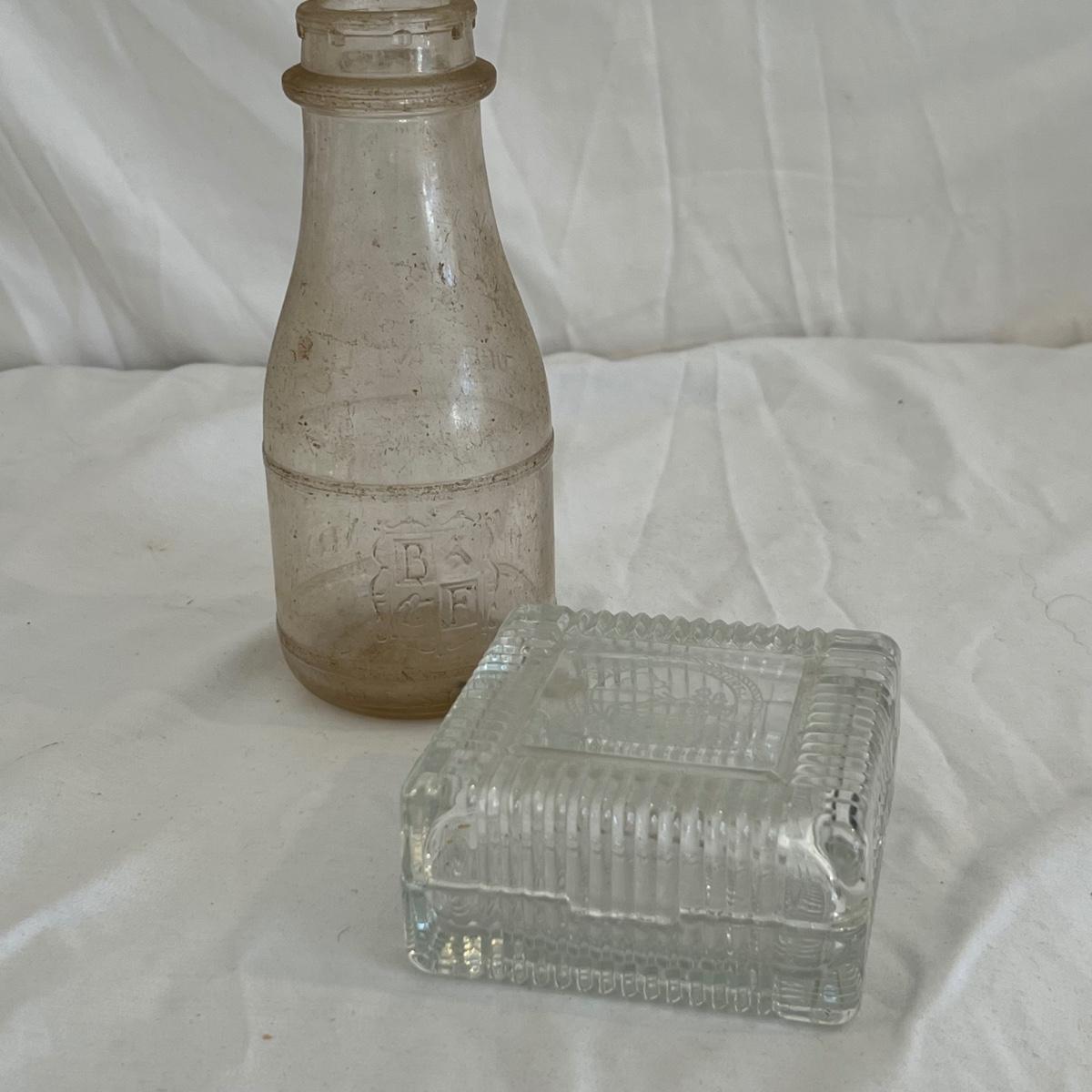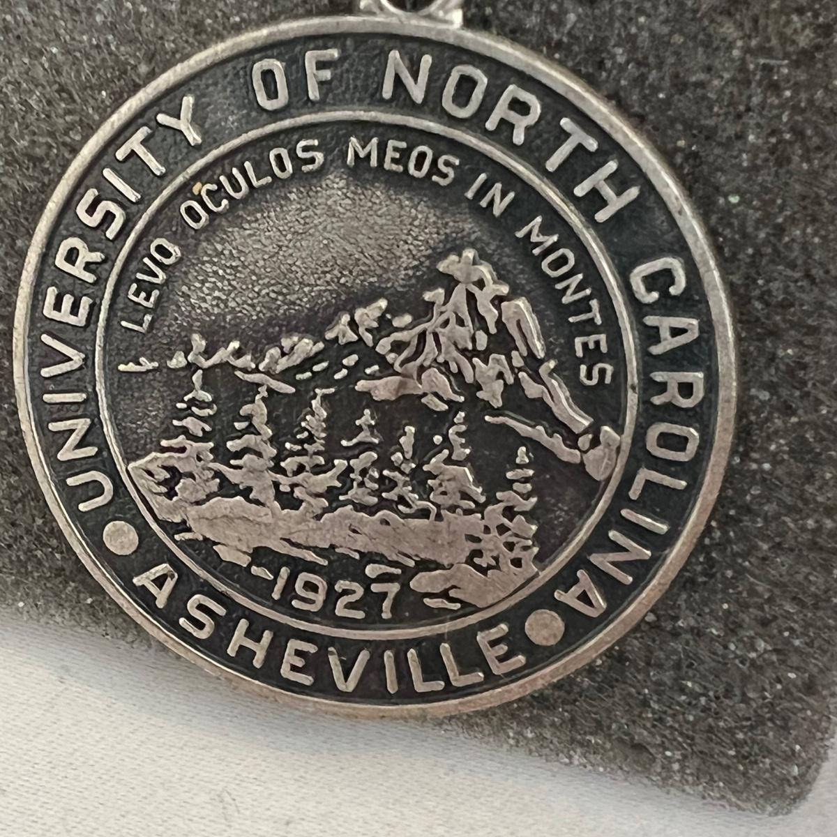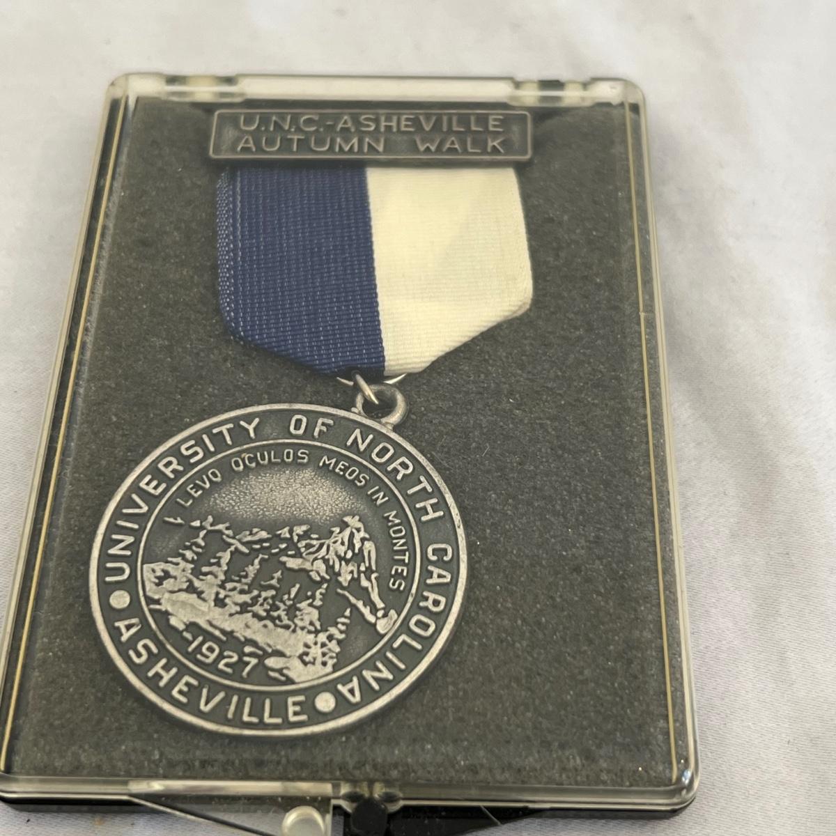 A large lot of Asheville memorabilia includes books, a lidded glass dish, sew-on Asheville Ski Club badge, medal, denim apron and more. The signed print of Mission Health is by local artist Jeff Pittman and is 47/100 and still in its sleeve; matte measures 11” x 14”. The Biltmore Forest Country Club tray is glass and dirty, but should wipe clean, it measures 6” x 9”. Biltmore Dairy one pint bottle is also dirty and may not come fully clean.