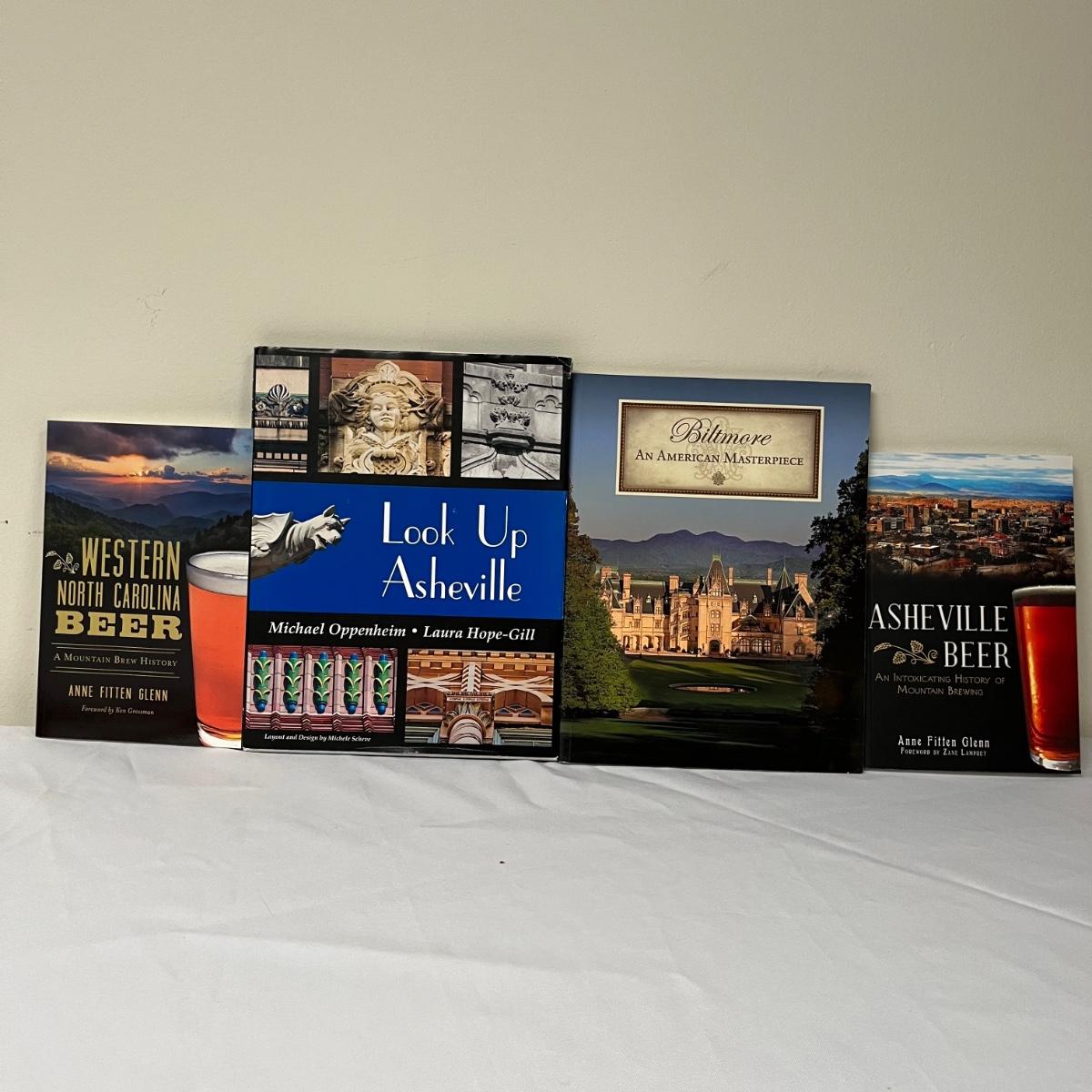 Lot includes four books featuring Asheville with these three titles that are signed by the authors Asheville Beer, Western North Carolina Beer and Look Up Asheville. Also includes Biltmore an American Masterpiece.