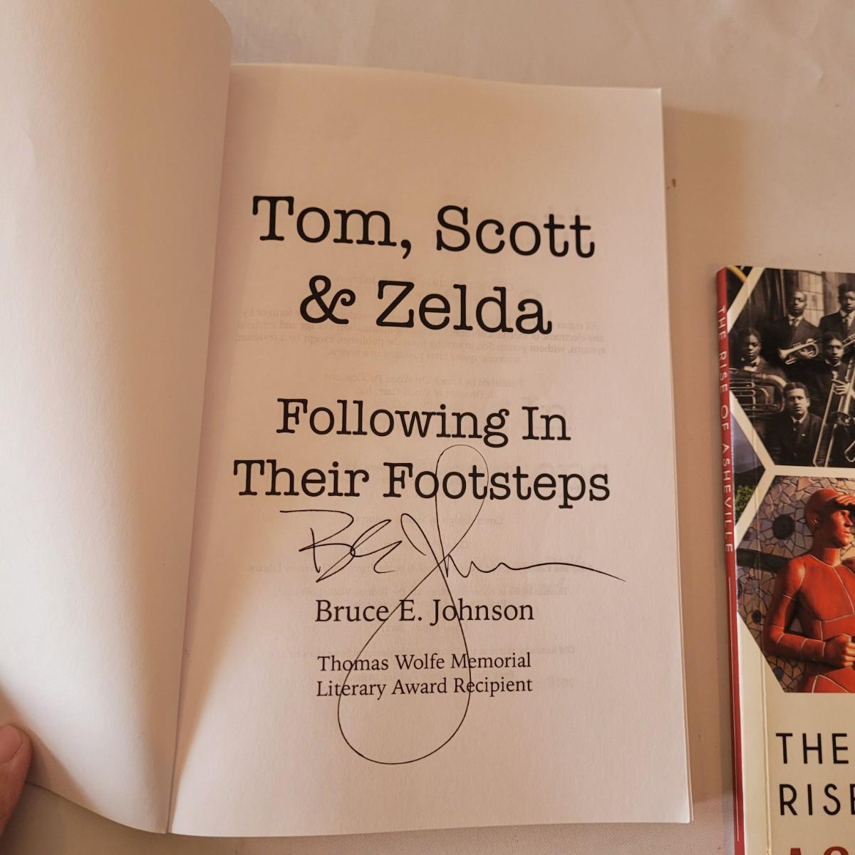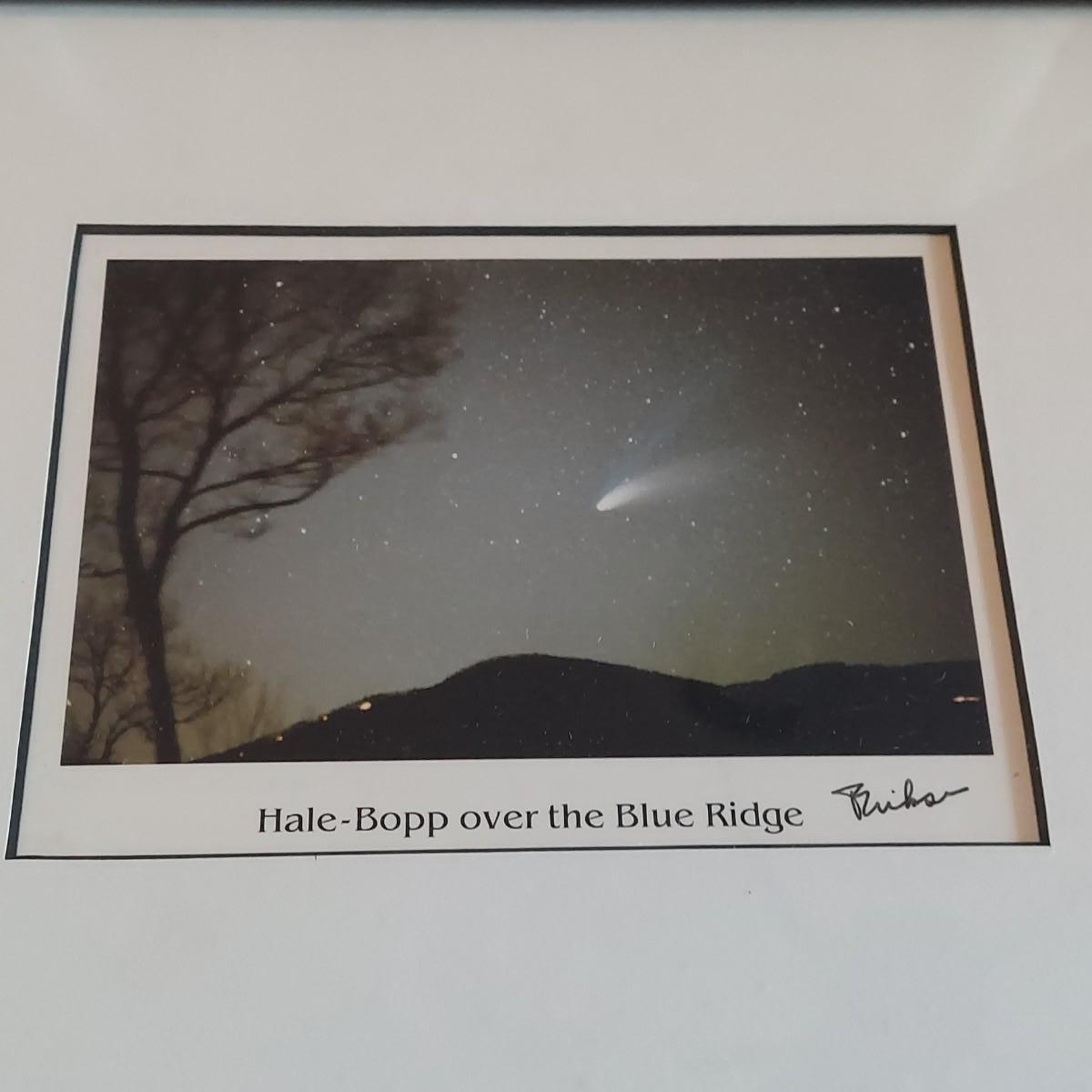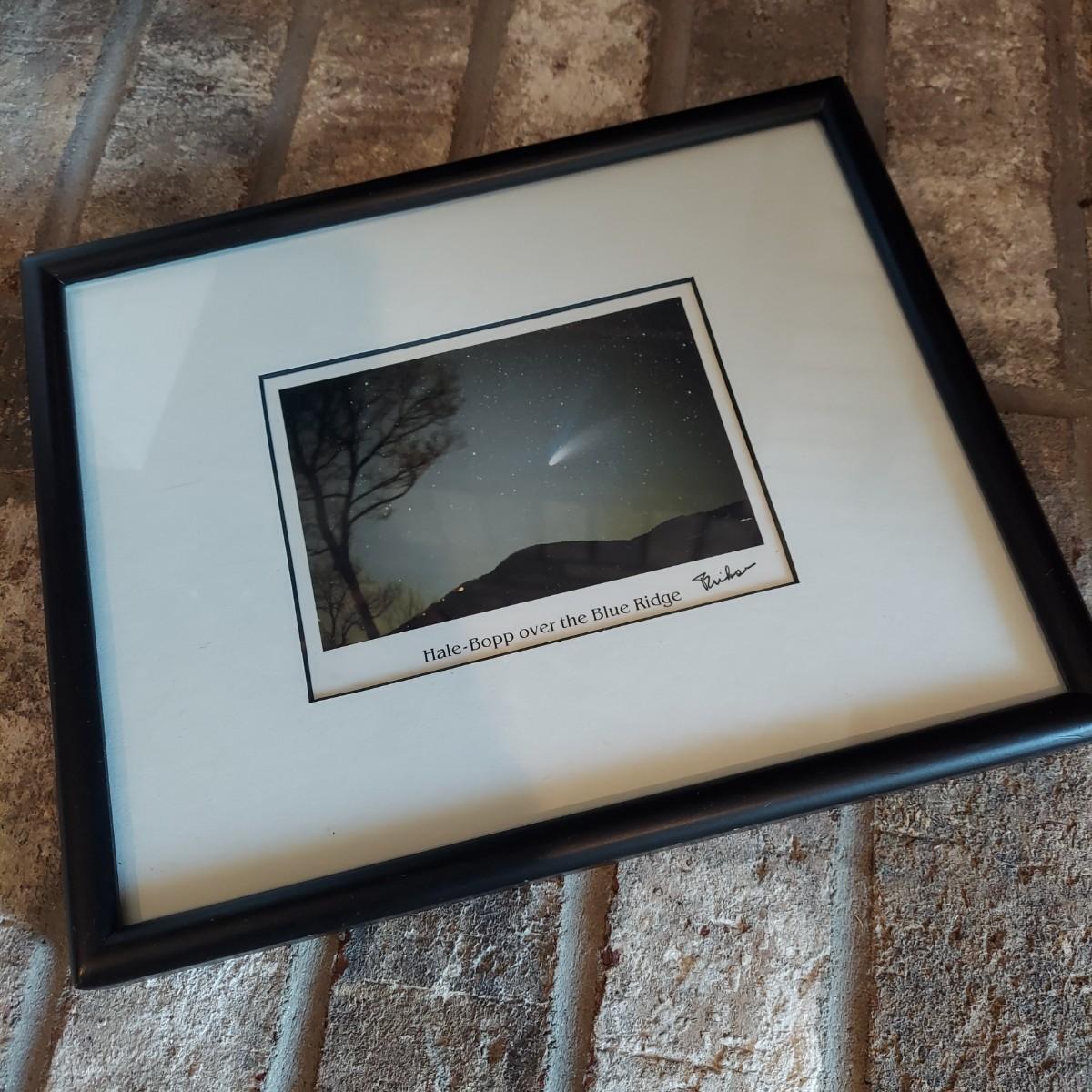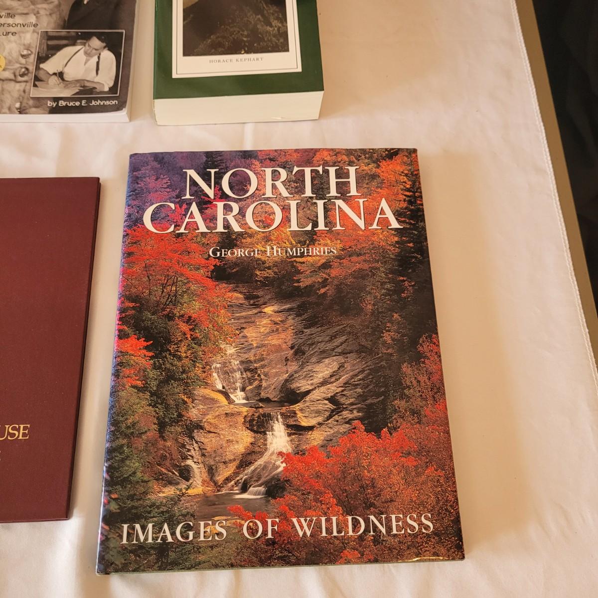A collection of Asheville themed books including Biltmore House books, as well as NC books and a framed photo of the Hale-Bopp comet over the Blue Ridge Parkway. Frame measures approximately 10.75” x 9”. Shipping available.