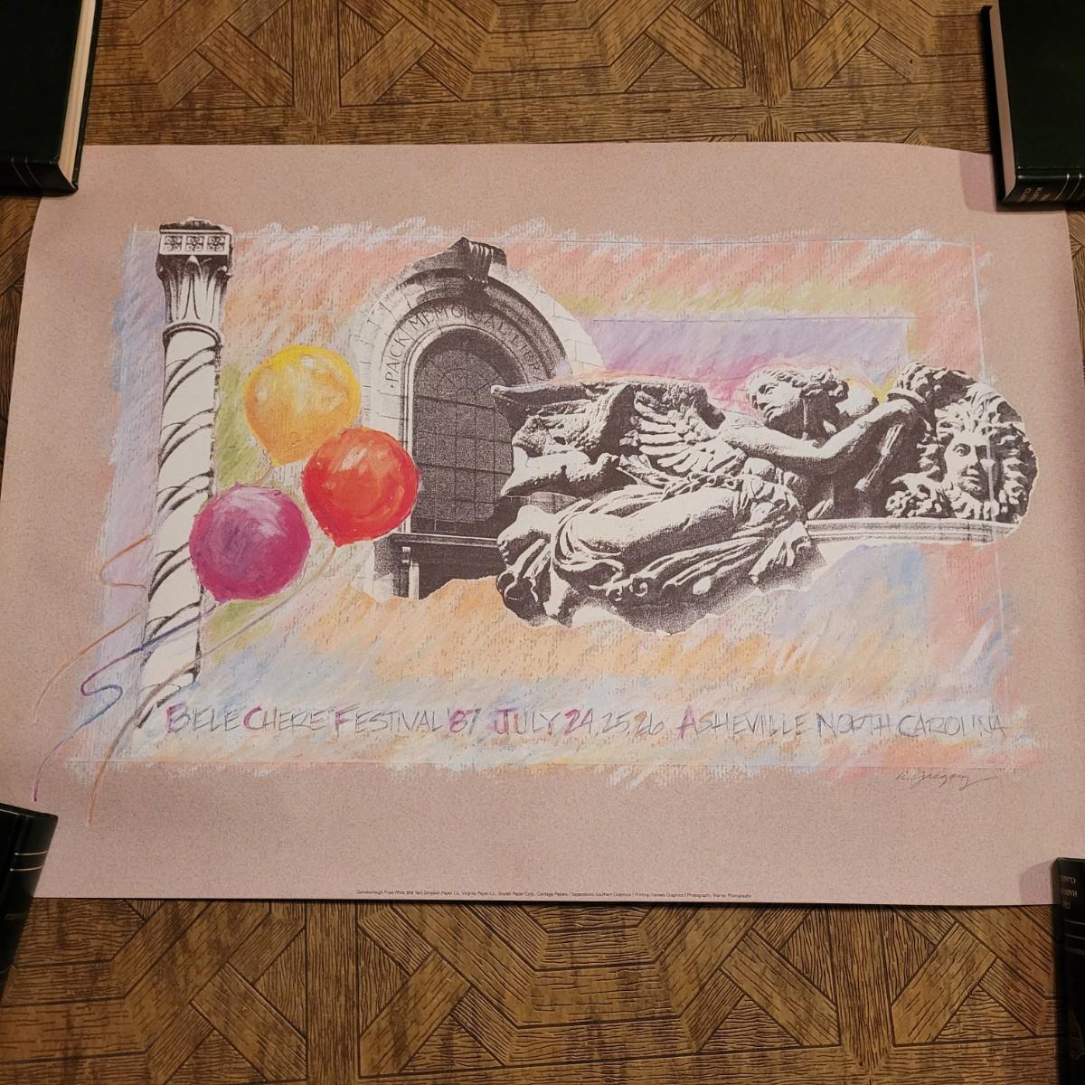 This collection focuses on historic places in Asheville and Buncombe County, and also includes three posters from past events in the area. Blue poster measures approximately 18" x 24." Shipping available. Shipping can be costly. We suggest contacting our preferred local shipping provider, Postage Express, with dimensions and getting an estimate before bidding: (828) 670-5501 or postageexpress@yahoo.com.