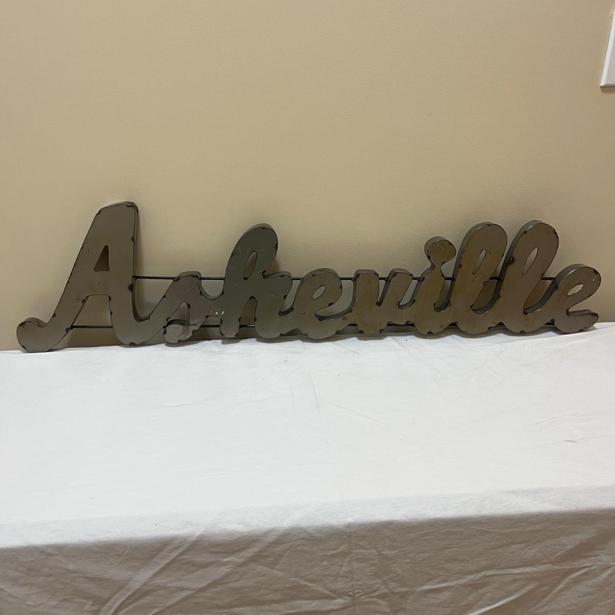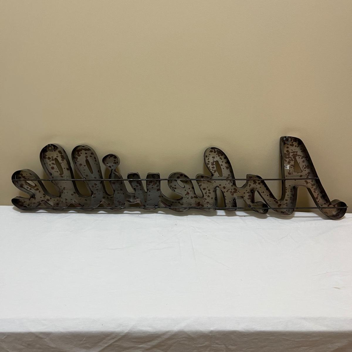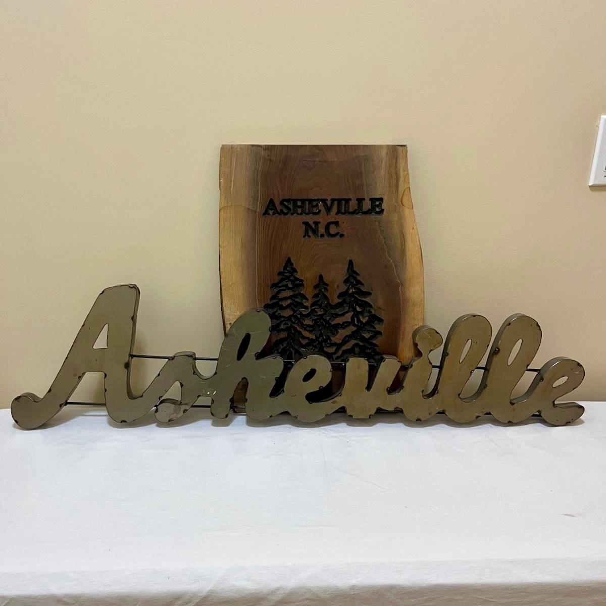 Lot includes a Wooden Asheville NC sign and a Metal Asheville sign that was made in Mexico. Metal sign measures 37.5” x 1.5” x 9”H.