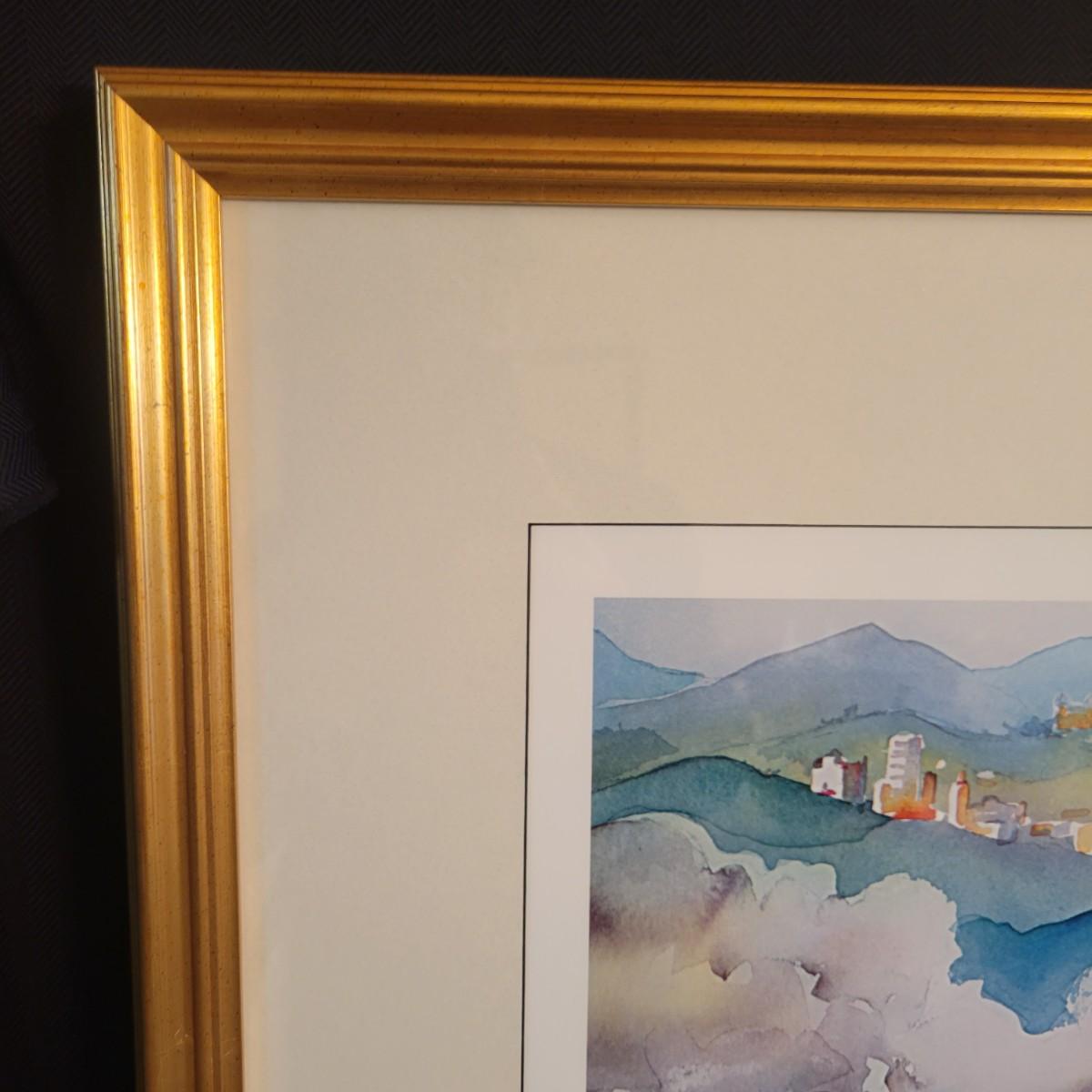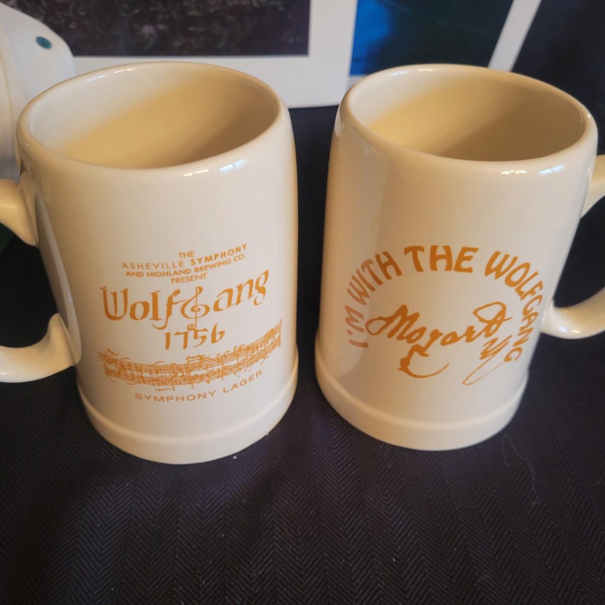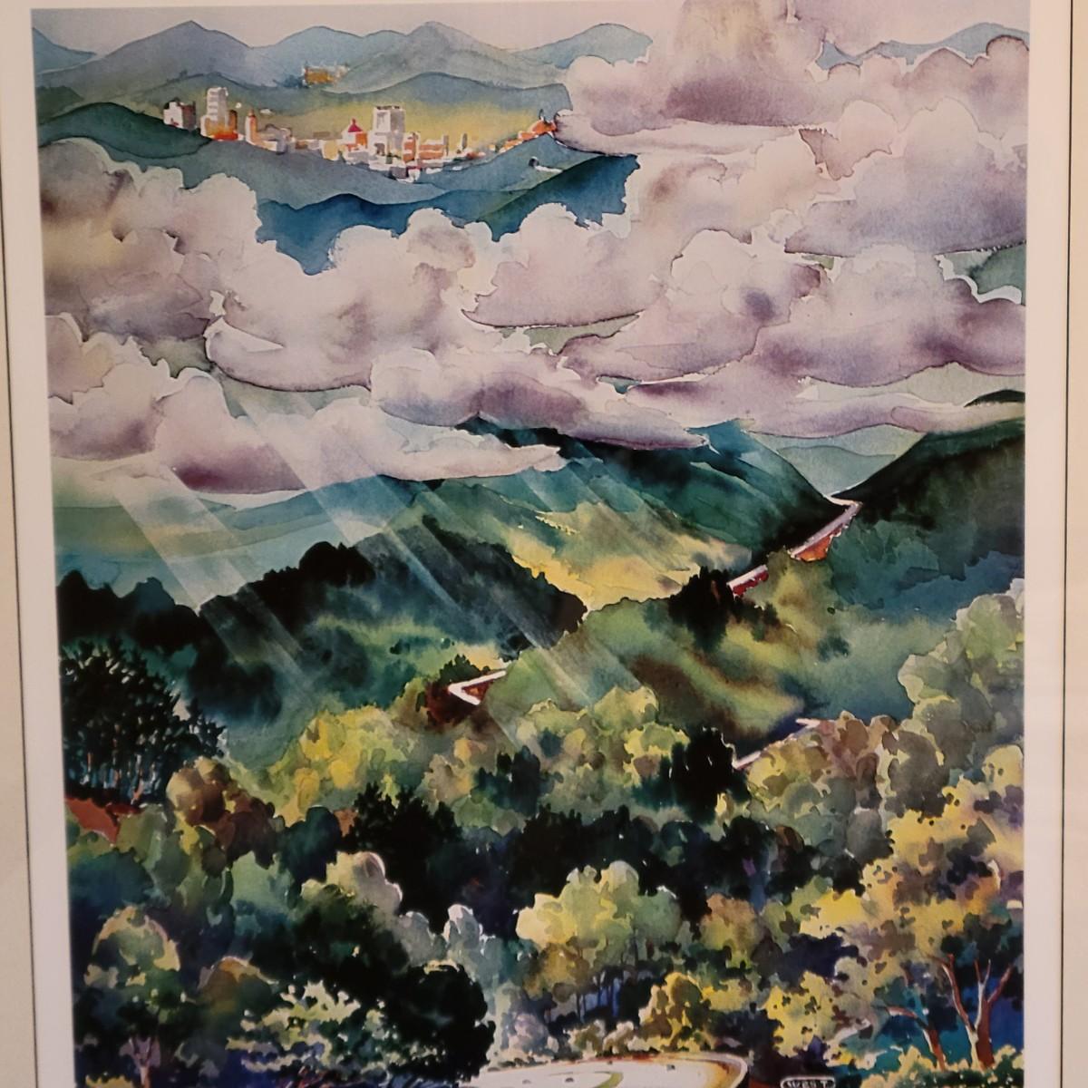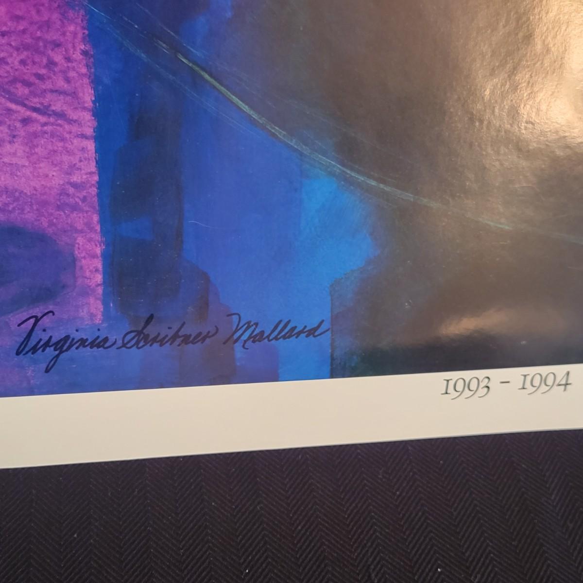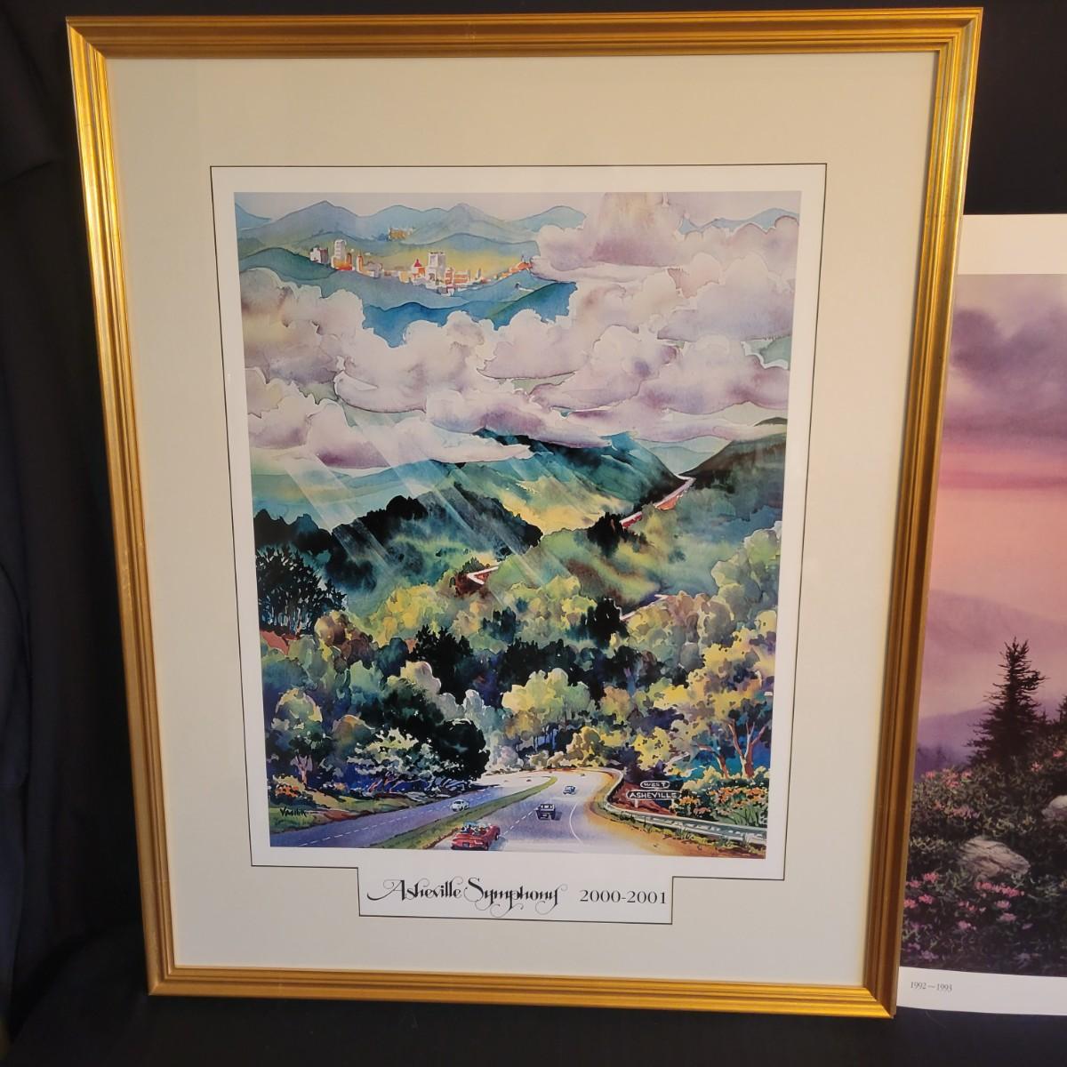 A collection of memorabilia items for the Asheville Symphony Orchestra. Included are coffee cups (one is signed), a hat, a pin, a booklet and multiple prints. There are two unframed prints, one of which is pen signed by Virginia Mallard. There is also a framed print that has a single mat with a wooden frame that has a gold finish. It measures approximately 26" x 31”. Shipping available. Shipping can be costly. We suggest contacting our preferred local shipping provider, Postage Express, with dimensions and getting an estimate before bidding: (828) 670-5501 or postageexpress@yahoo.com.