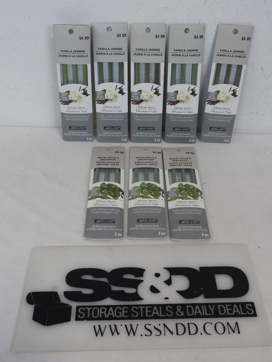 Ashland Diffuser Stems, 8 packages: 5 Vanilla Jasmine, 3 Eucalyptus/Spearmint. 3 in each package - New