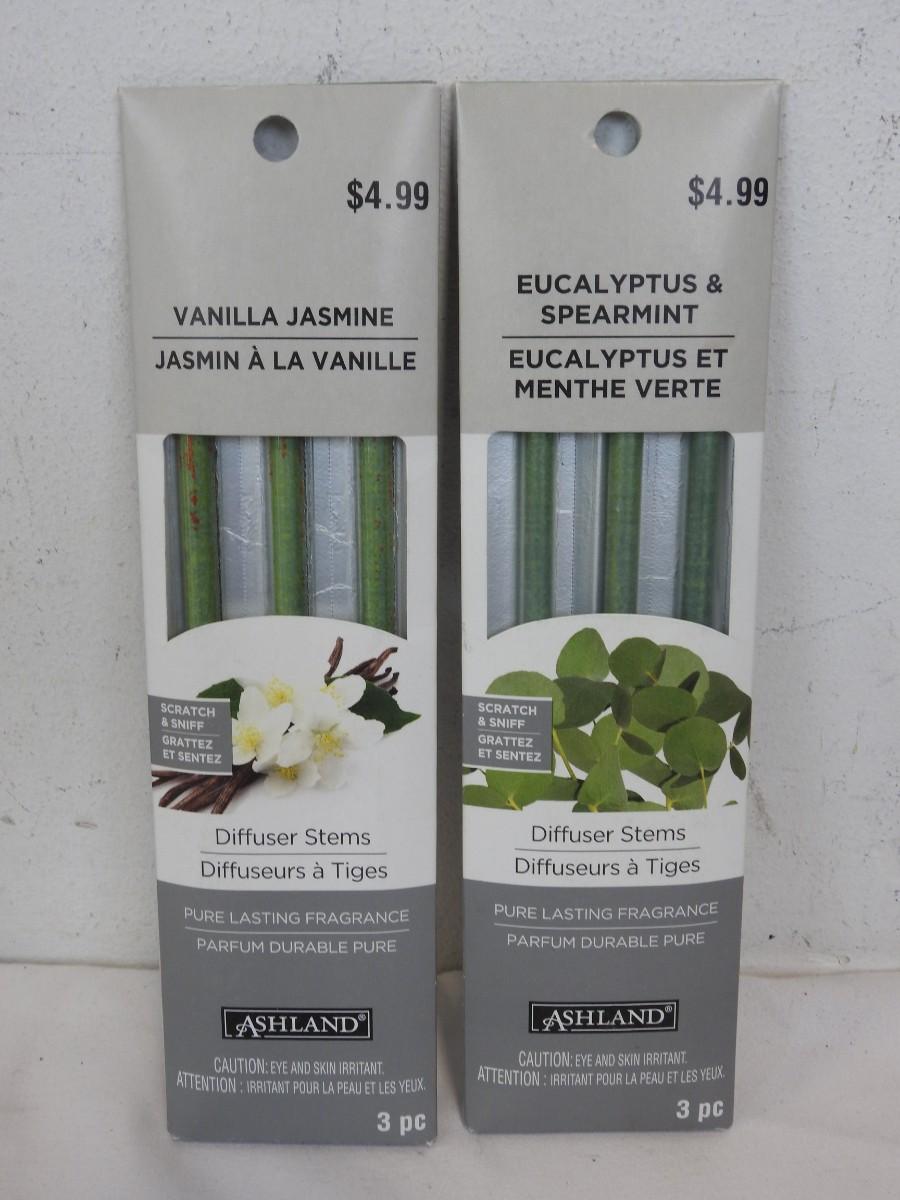 Ashland Diffuser Stems, 5 Vanilla Jasmine, 3 Eucalyptus/Spearmint - New
