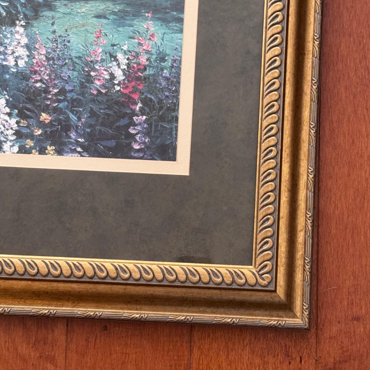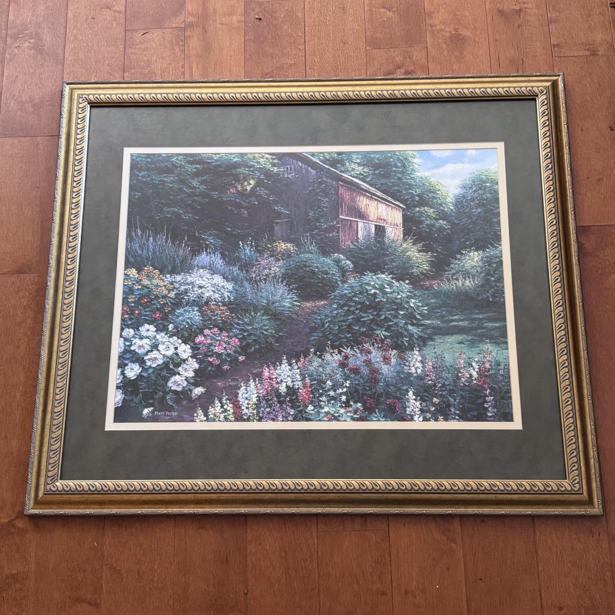 This lot includes one large print by Henry Peeters. It appears to be titled “Ashland Grand.” The art is protected with glass, matted, and framed with a wooden frame. The frame has been painted gold and measures 40.5” x 34.5”H. Shipping available. Shipping can be costly. We suggest contacting our preferred local shipping provider, Postage Express, with dimensions and getting an estimate before bidding: (828) 255-9250 or shipping@postageexpressnc.com.