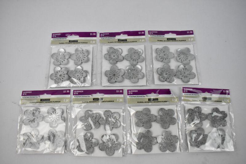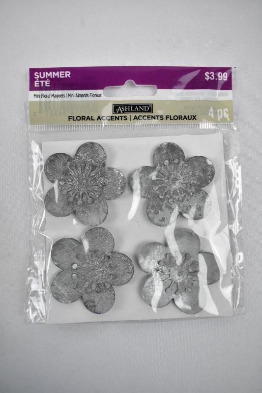 Ashland Summer Mini Floral Accent Magnets New 7 Packs of 4: Silver Metal & White - New