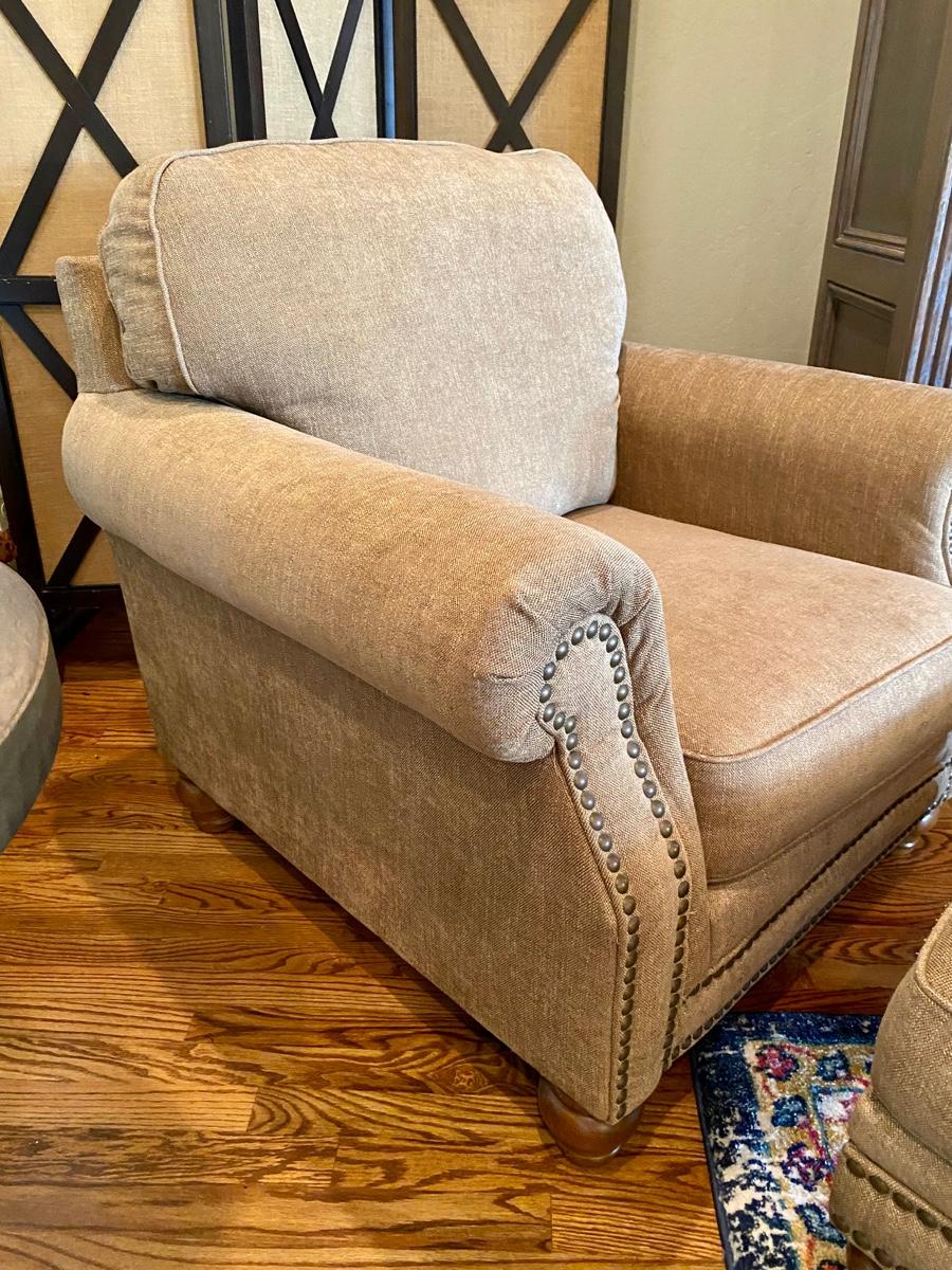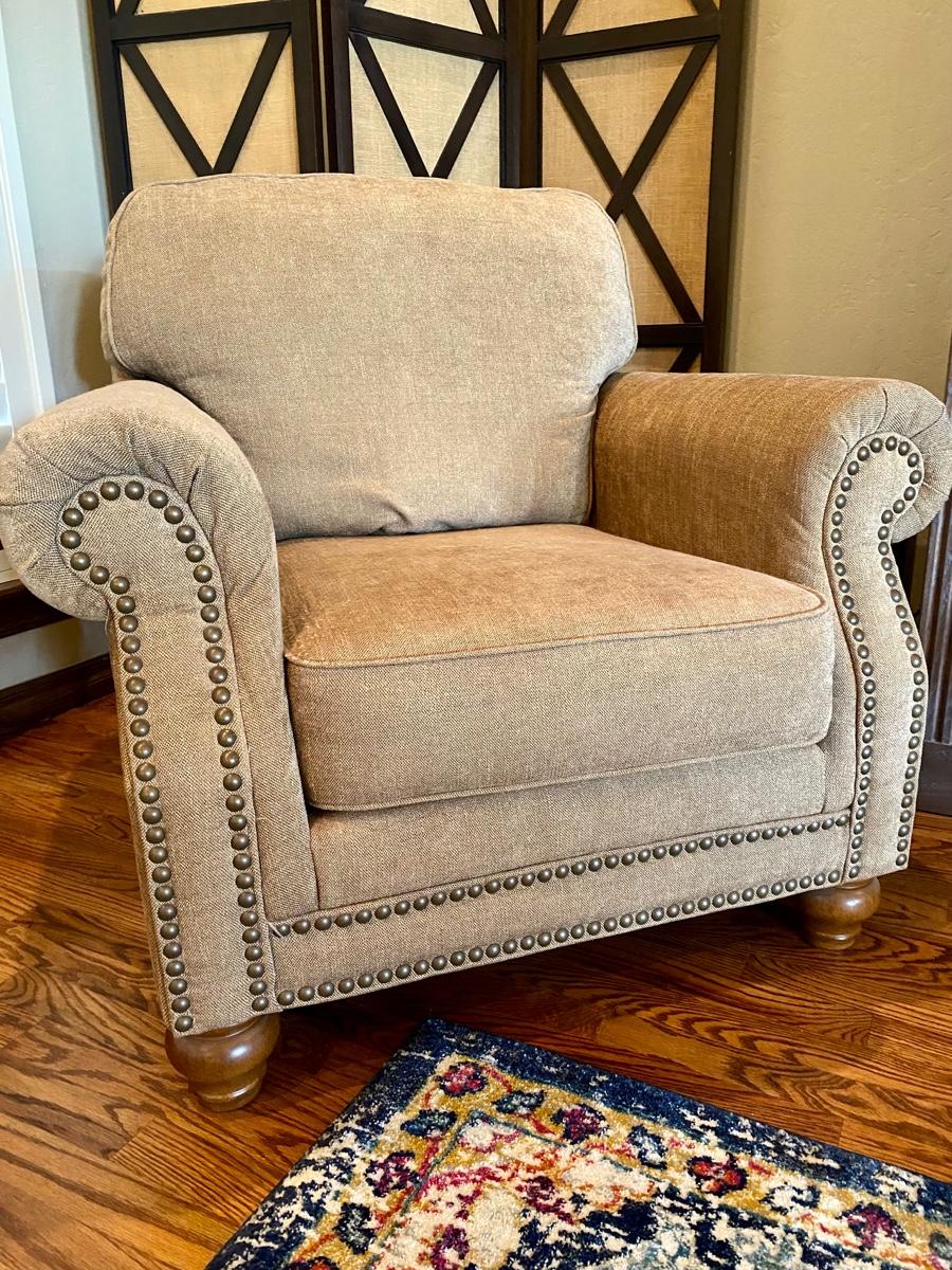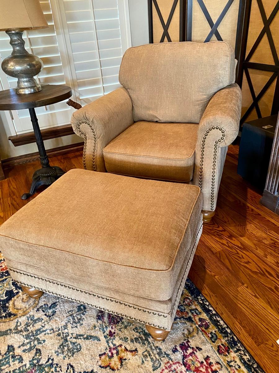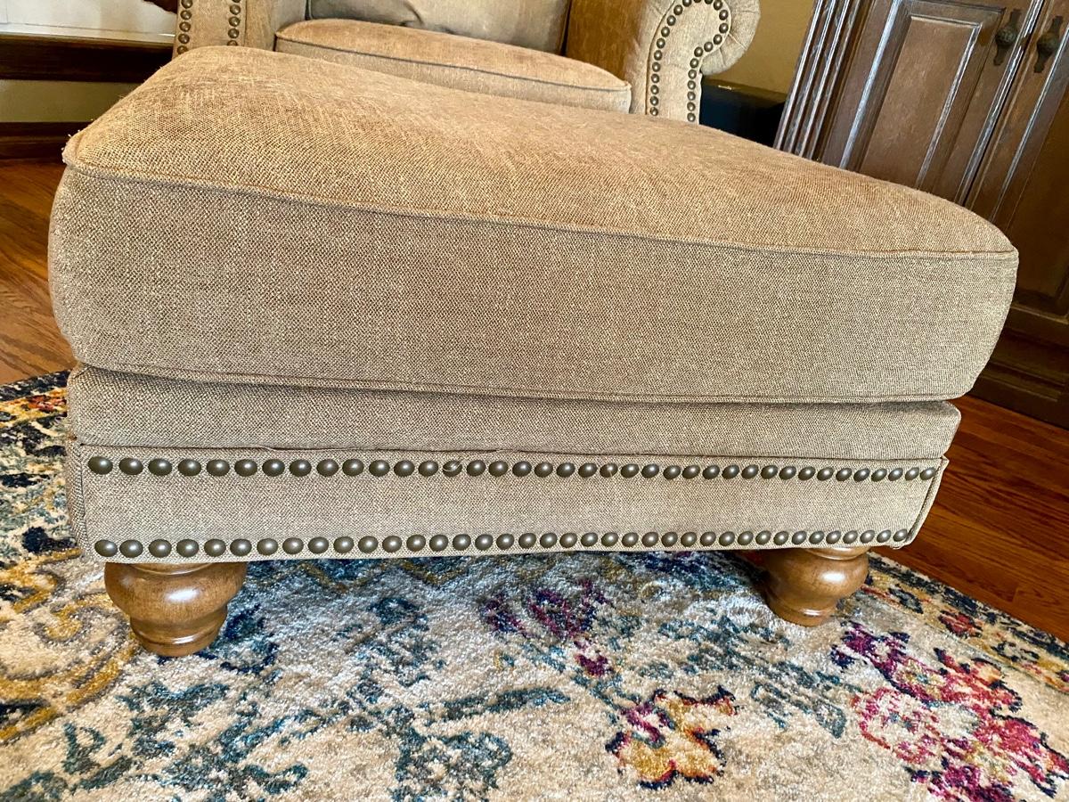 Ashley Furniture Accent Chair and Ottoman with Nailhead Trim