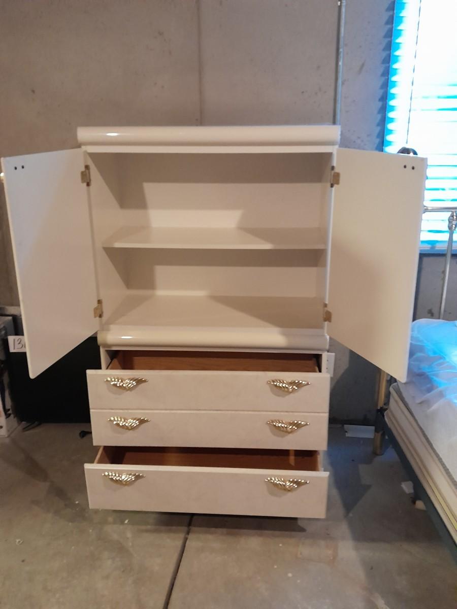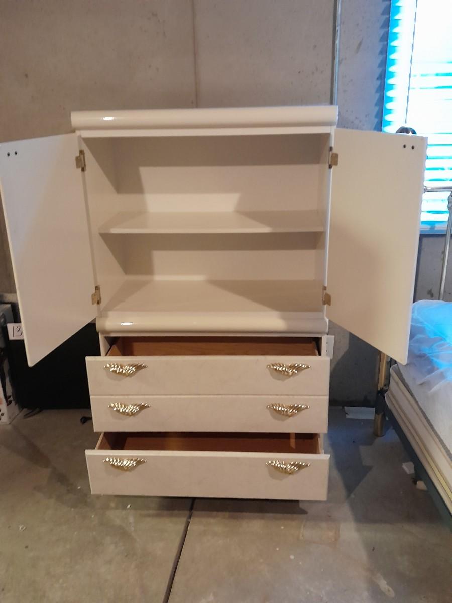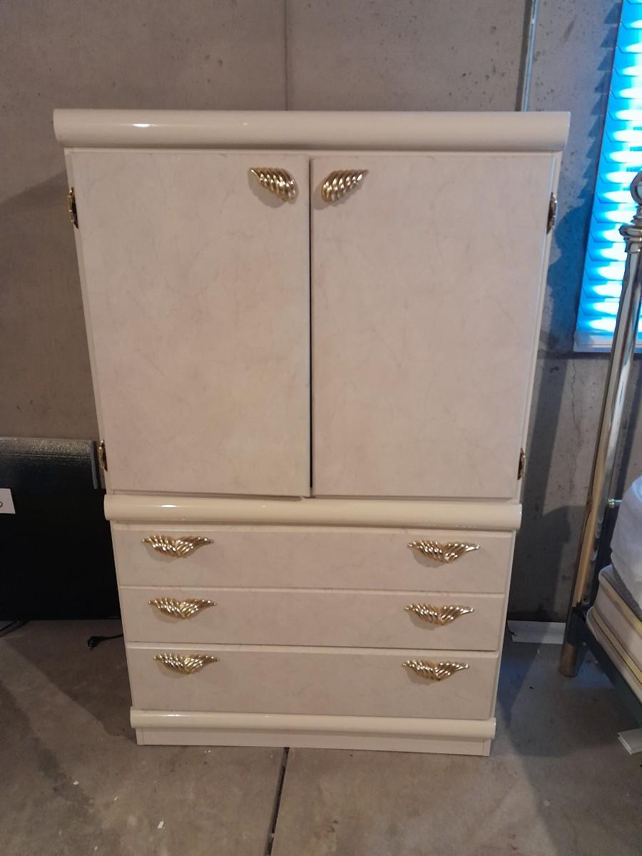 GLOSSY OFF- WHITE WITH GOLD HANDLES ASHLEY FURNITURE BEDROOM COLLECTION DOOR CHEST CAMEO