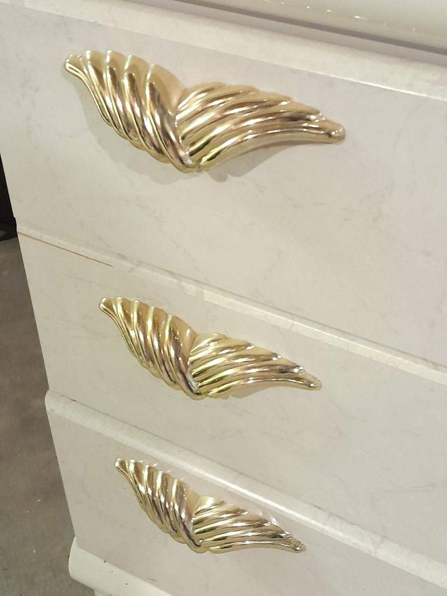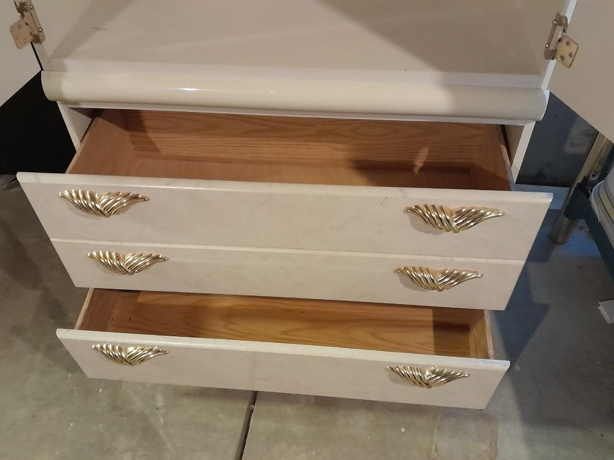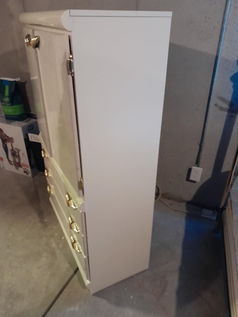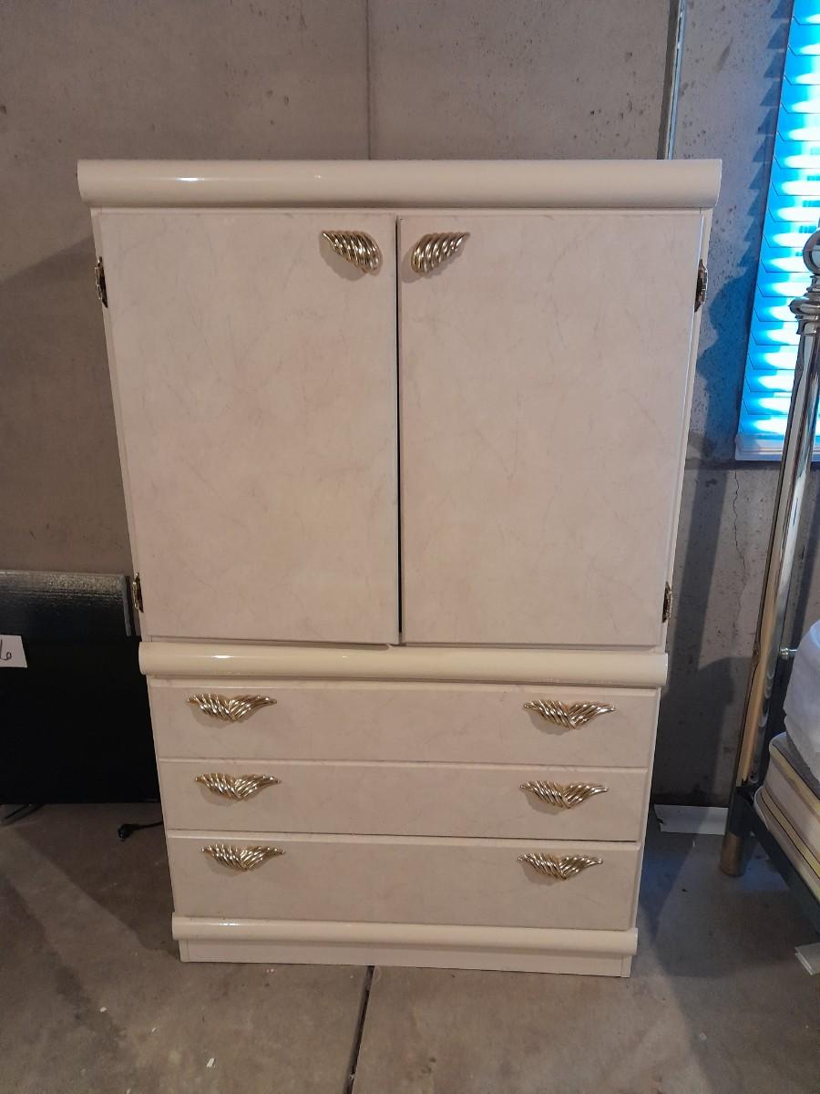 GLOSSY OFF- WHITE WITH GOLD HANDLES ASHLEY FURNITURE BEDROOM COLLECTION DOOR CHEST CAMEO