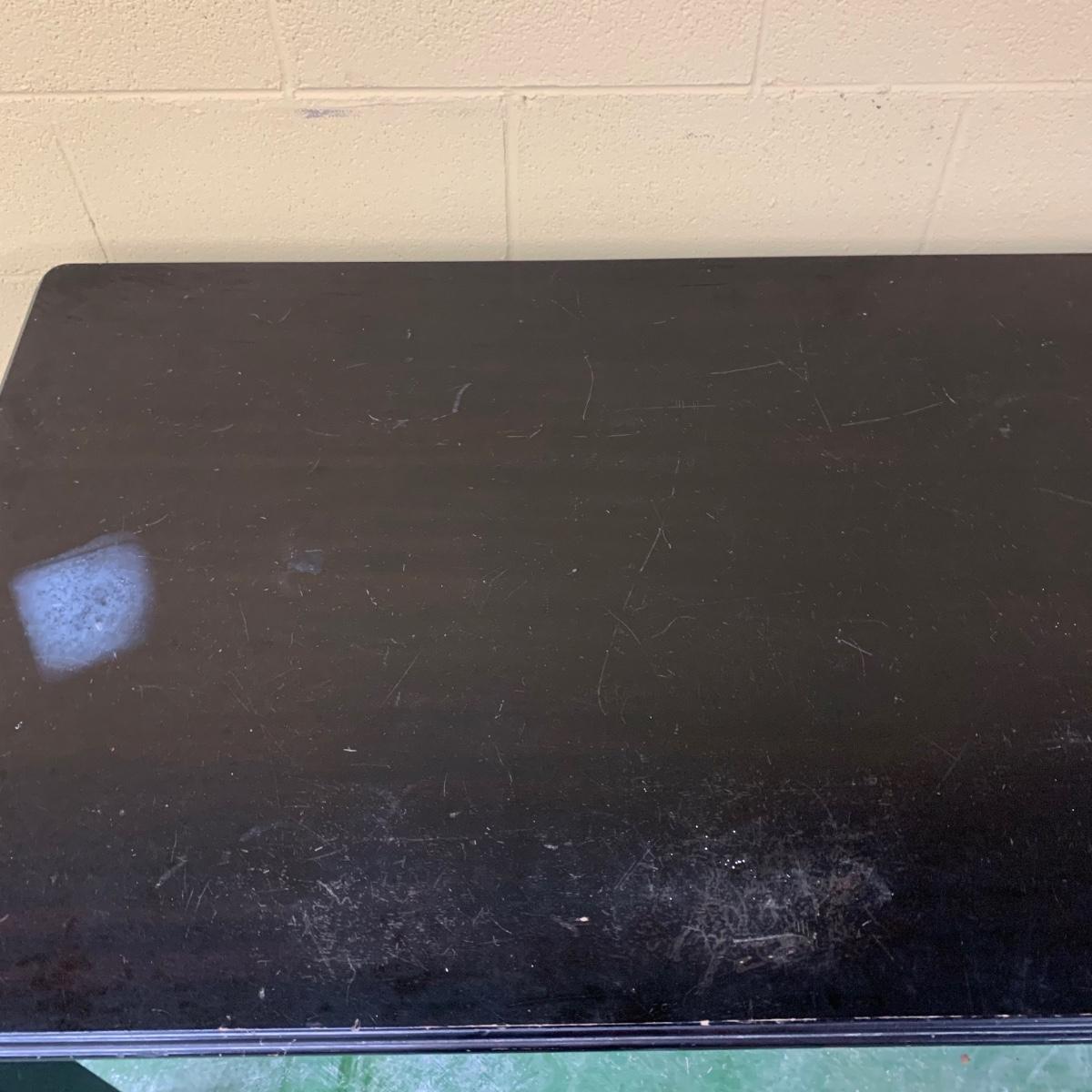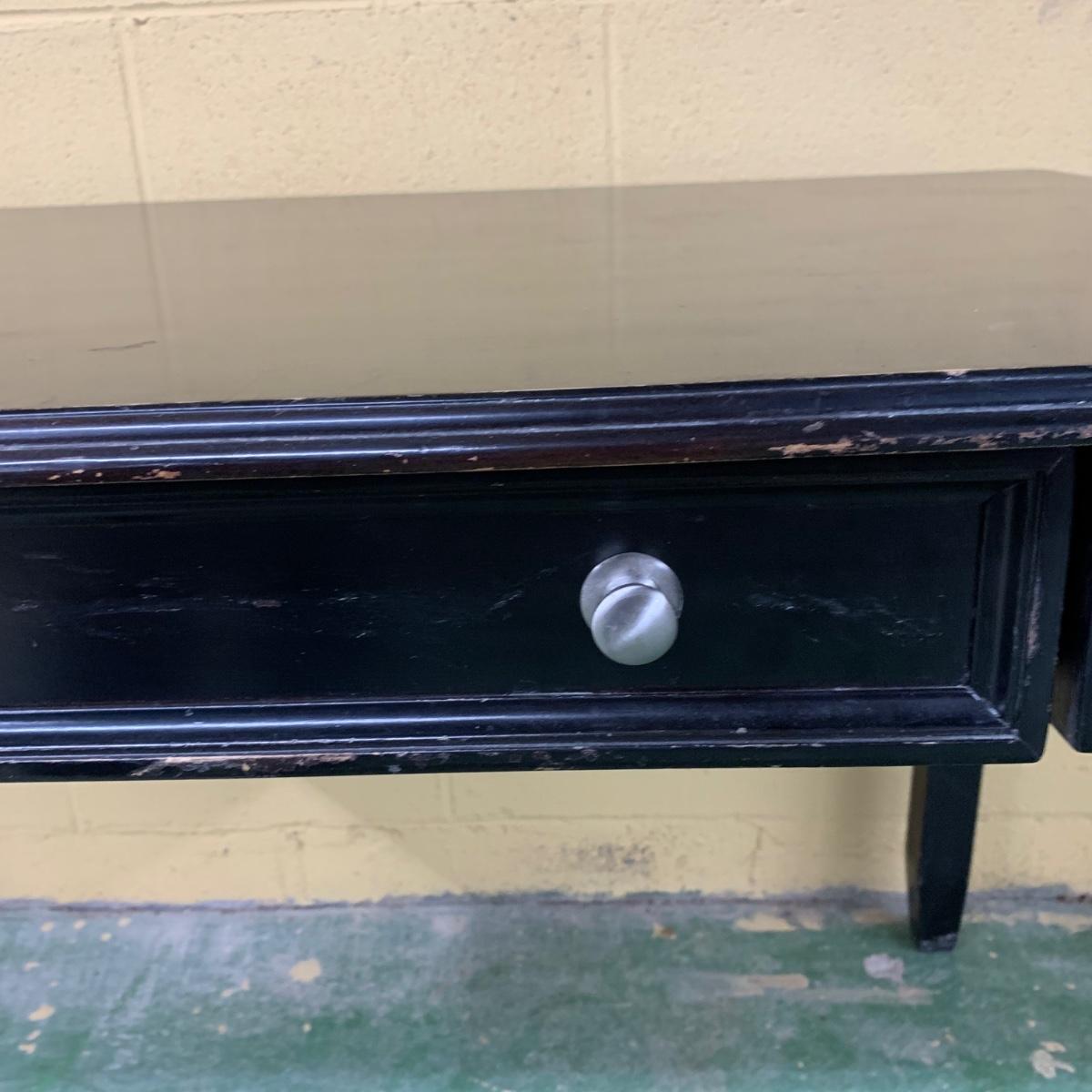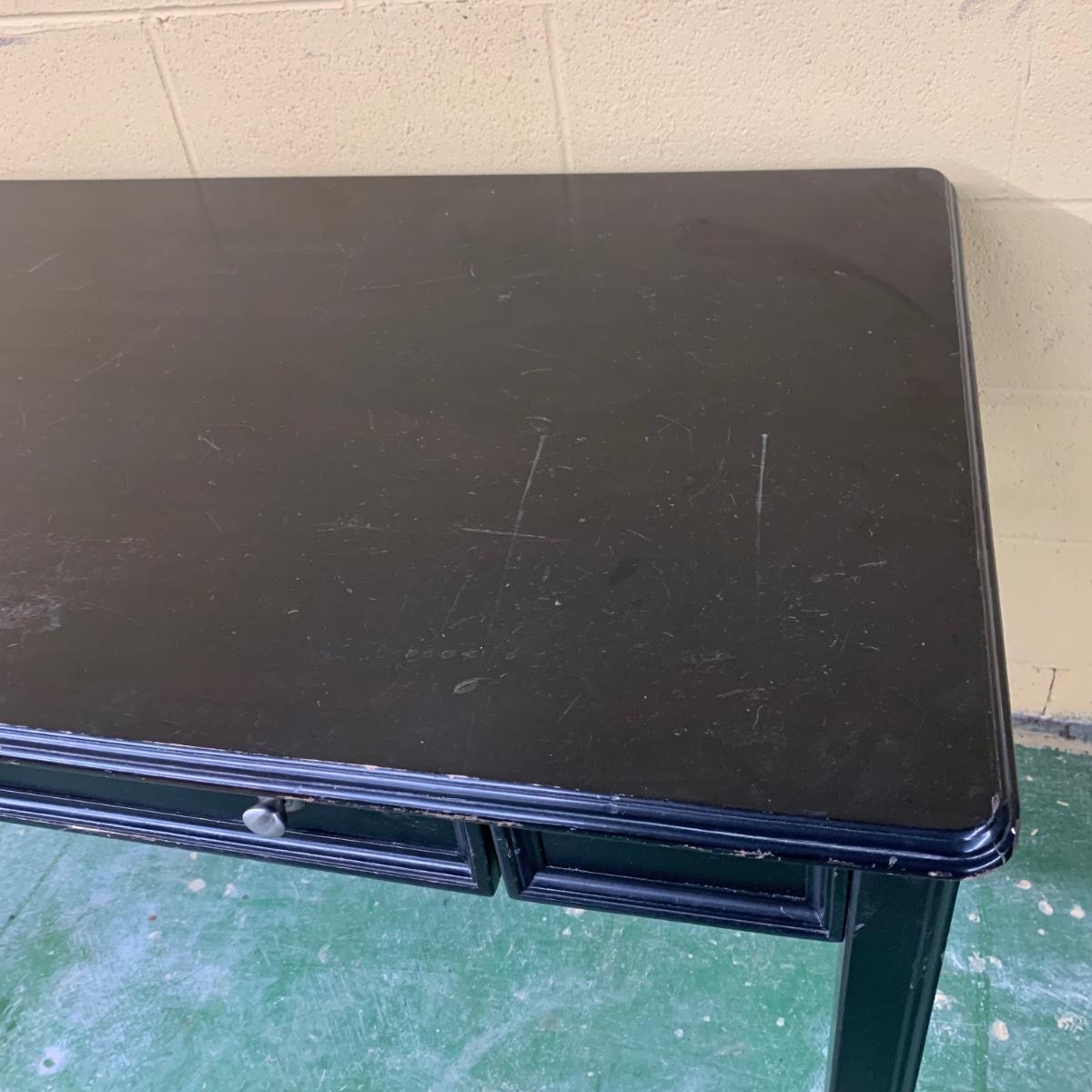 Ashley Furniture brand black-painted wood desk. Measures 48” x 28” x 30”. Desk is in good condition structurally, but does have quite a few blemishes with stains and scratches. The drawer slides smoothly on a metal track. Local pickup only.