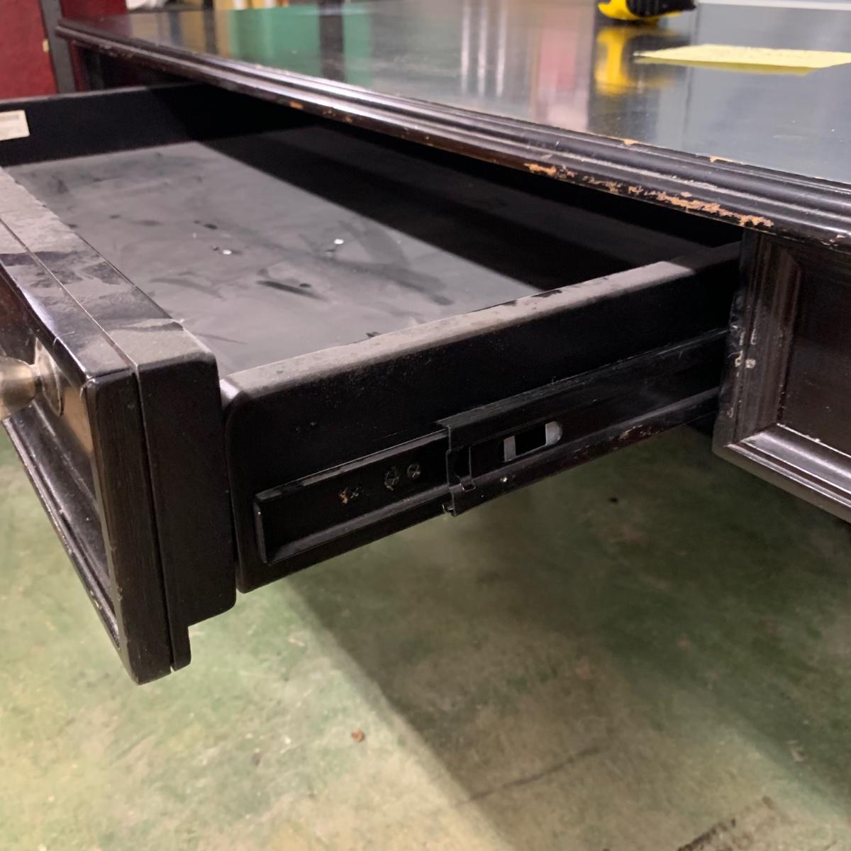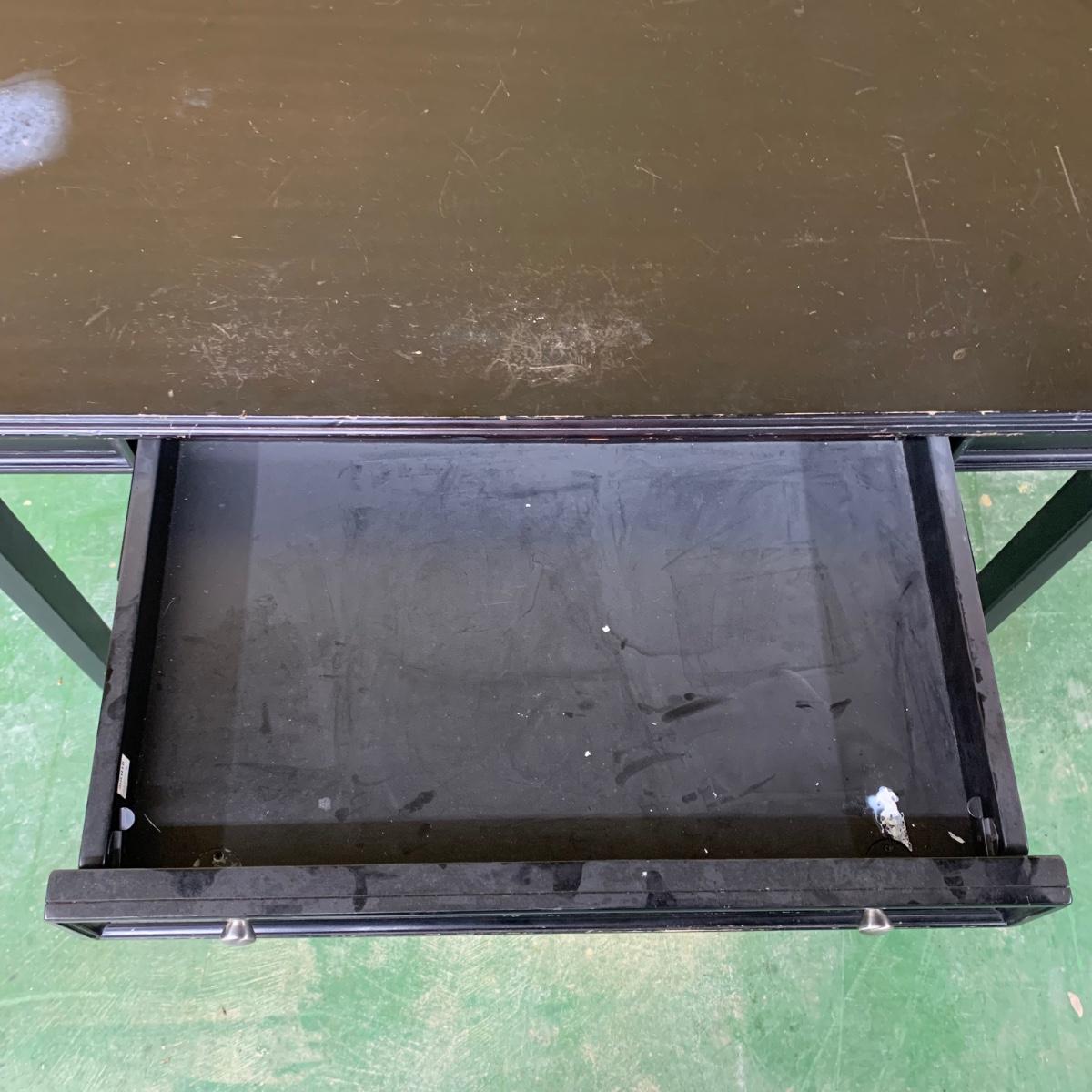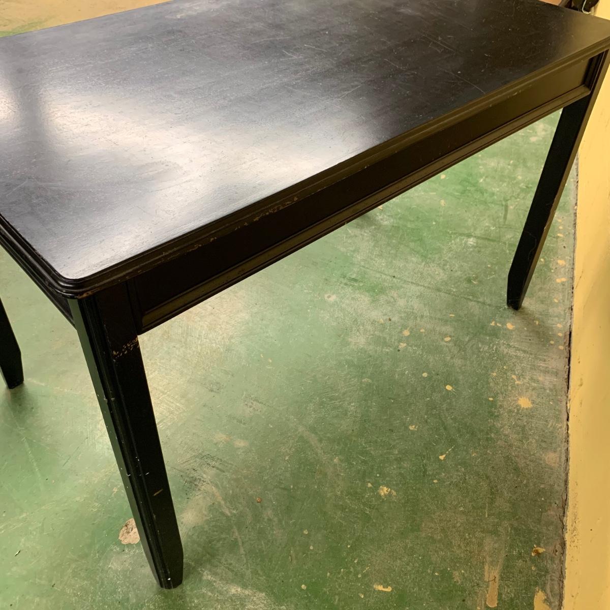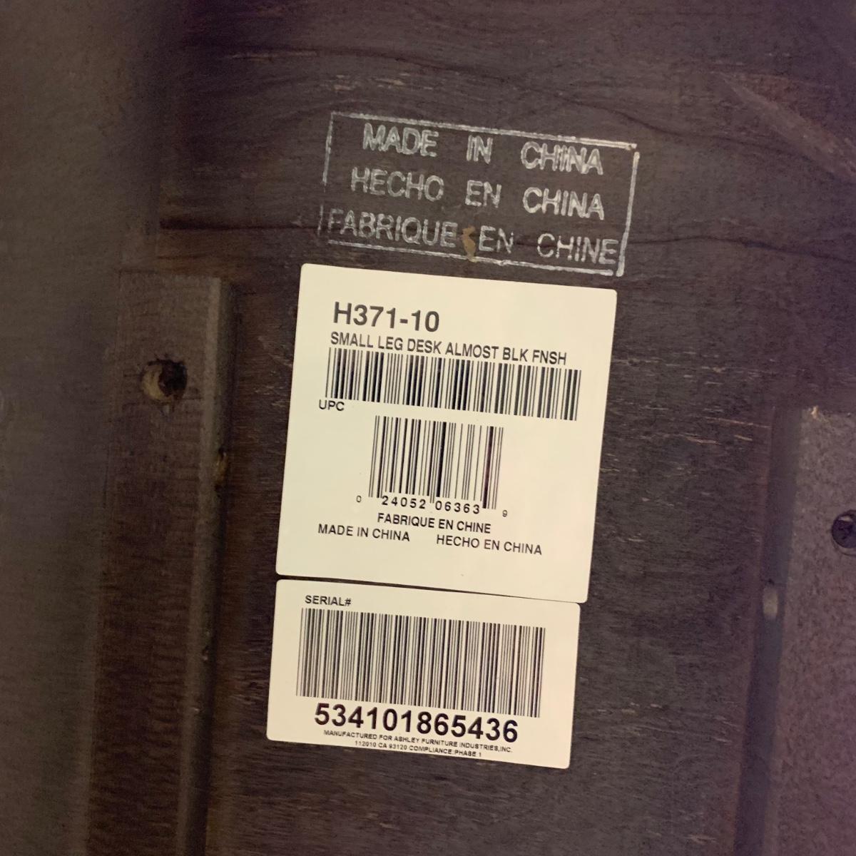 Ashley Furniture brand black-painted wood desk. Measures 48” x 28” x 30”. Desk is in good condition structurally, but does have quite a few blemishes with stains and scratches. The drawer slides smoothly on a metal track. Local pickup only.